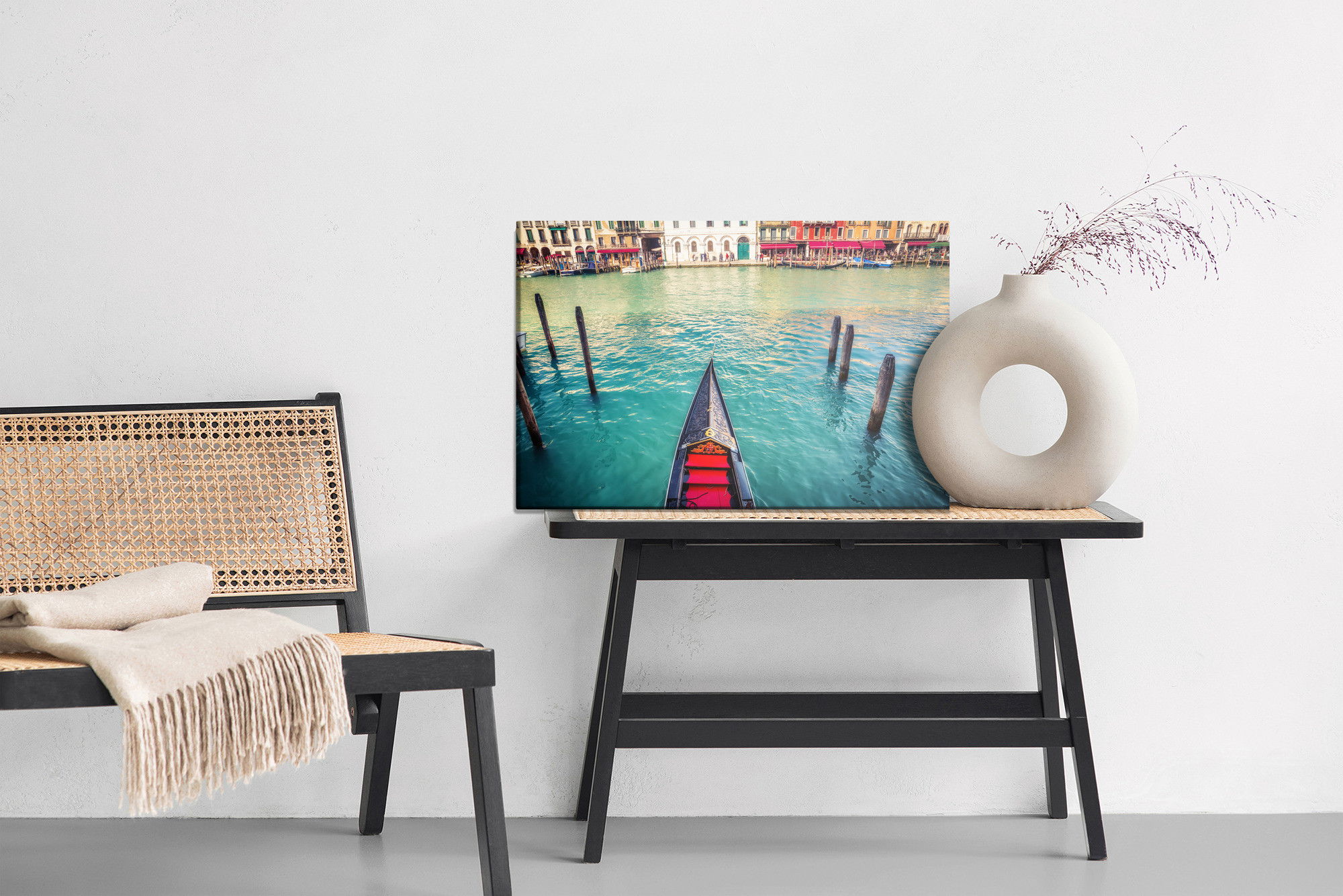 Varje tavla monteras på en massiv fururam. Format upp till 70×50 cm har en ram på 15 mm, medan format från 90×60 cm och uppåt har en ram på 20 mm. Den exakta dukspänningen gör att tavlan håller sin form över tid. Motivet Beautiful scenery of venice trycks runt hela ramen vilket ger ett stilrent galleriuttryck där tavlan är lika vacker från sidan som framifrån. Kombinationen av rak dukspänning, rena linjer och korrekt tryck ger en professionell finish.