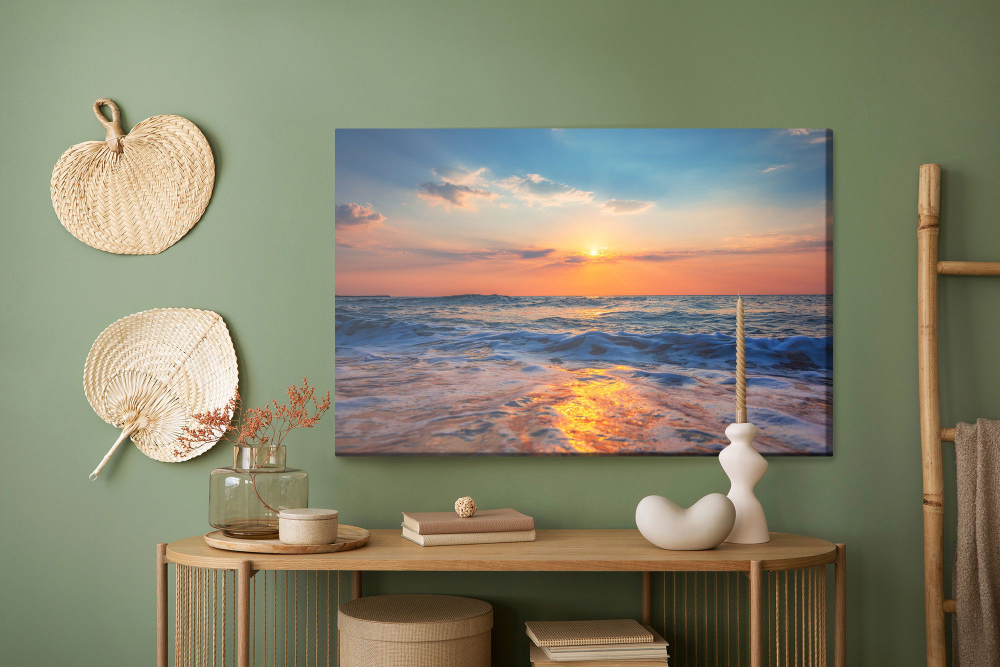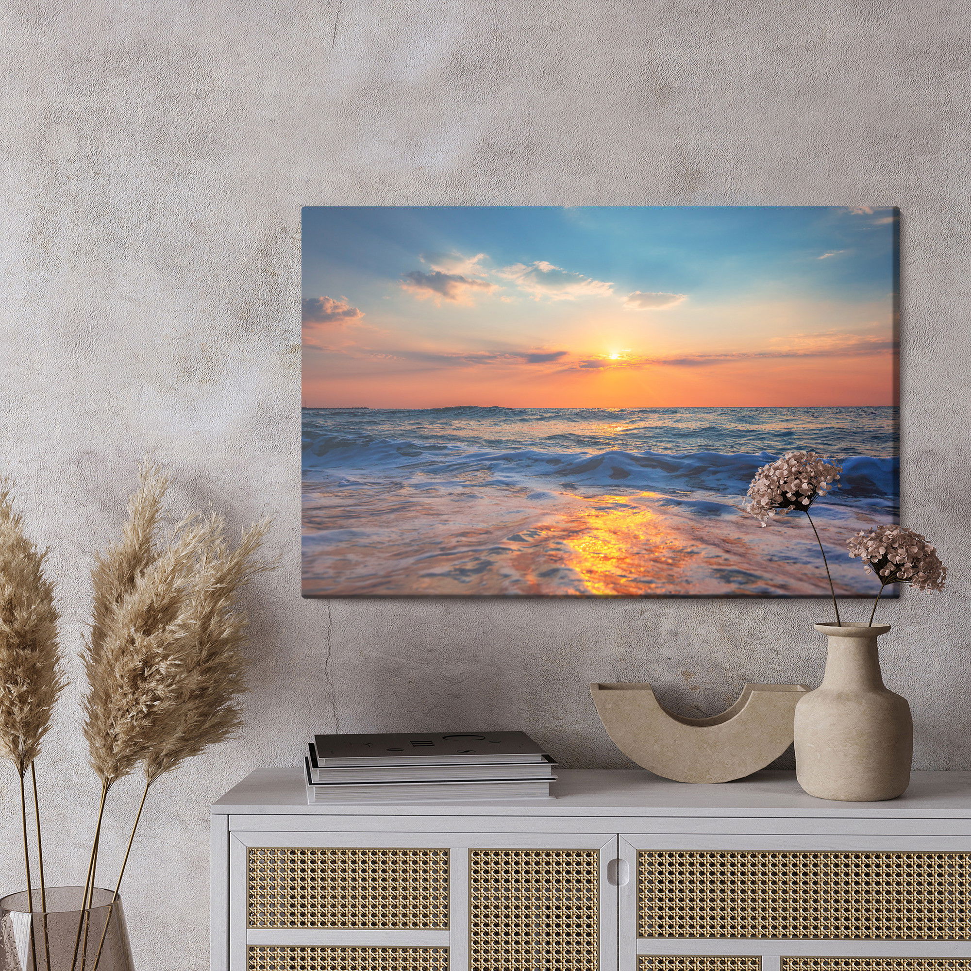 Placera tavlan där du upplever mycket eko eller hög ljudnivå, till exempel i öppna planlösningar, hemmakontor eller sociala ytor. Motiv i denna kategori gör sig särskilt bra i rum där du vill skapa en genomtänkt och sammanhängande känsla. Motiv med hav, vatten och horisonter ger rummet en lugn, djup känsla där mjuka färgskiftningar och ljusreflektioner förstärker atmosfären.