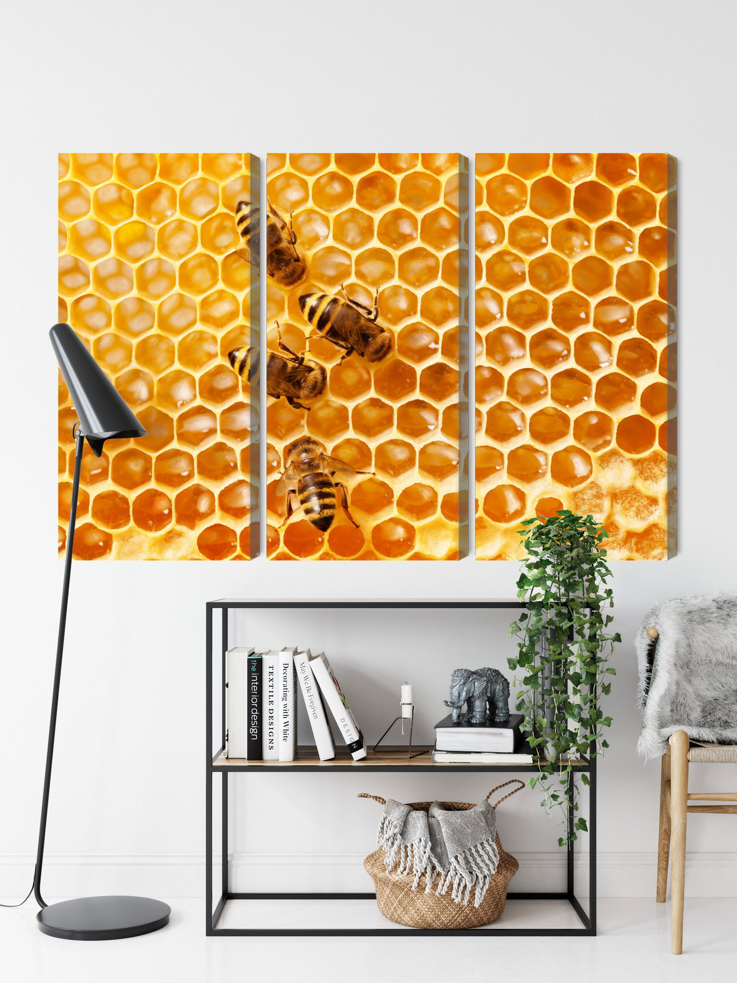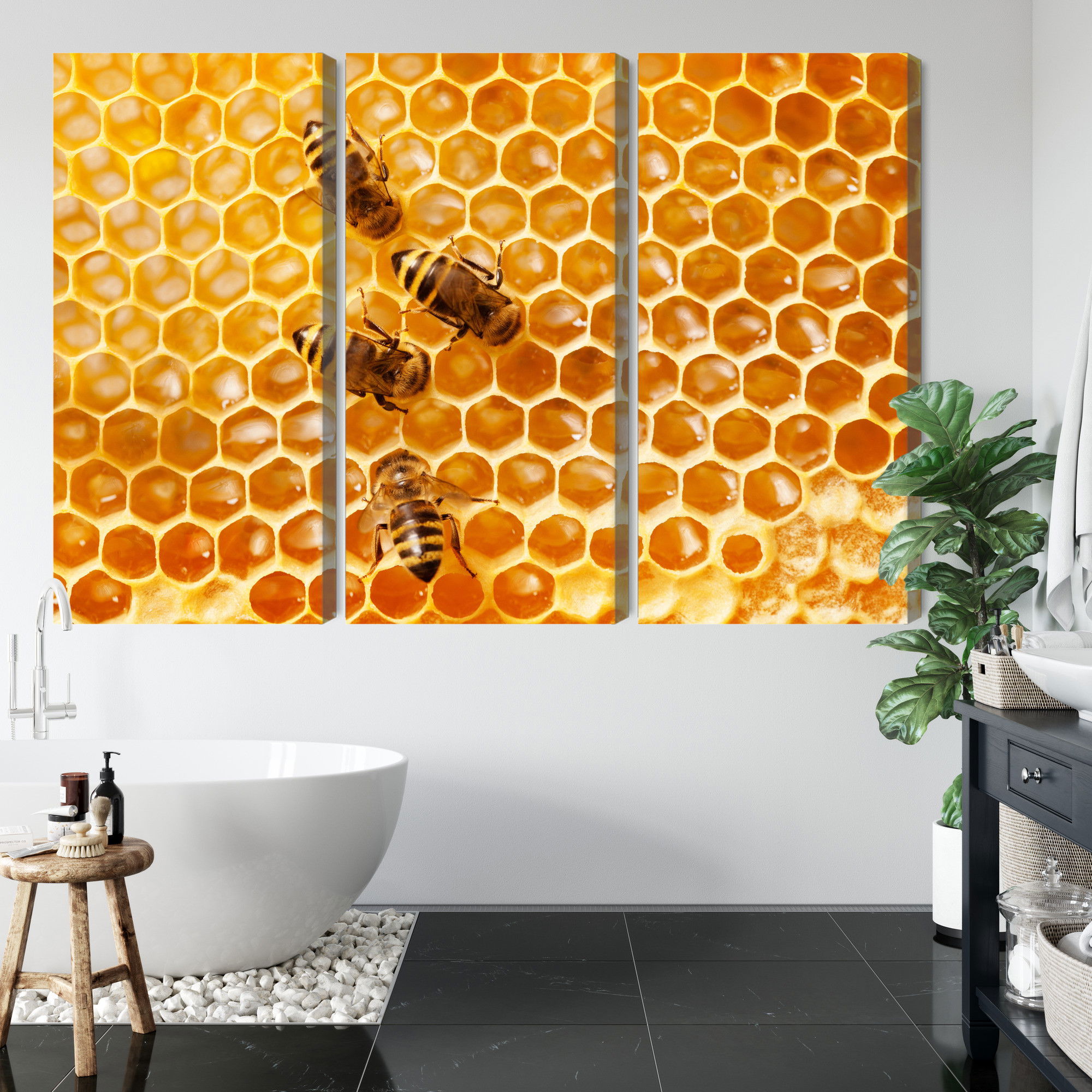 Ljuddämpande tavla – Bees on the honeycomb för lugnare rum och mjukare akustik