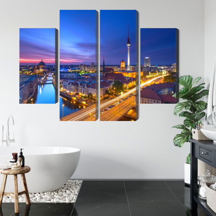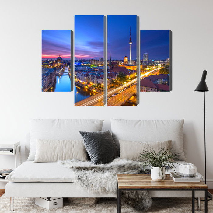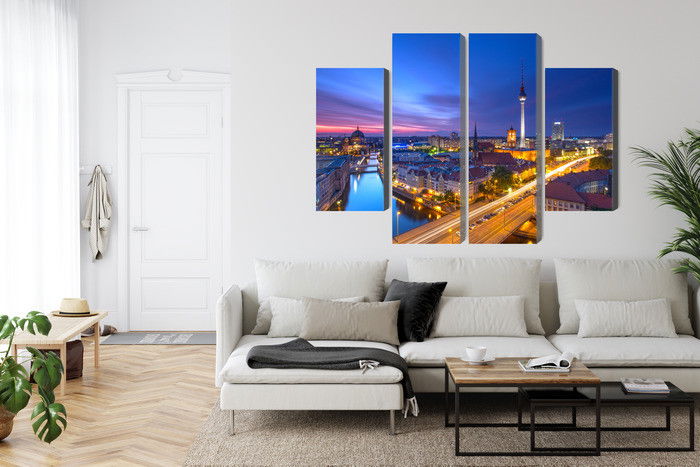 Ljuddämpande tavla – Berlin panorama at sunset för lugnare rum och mjukare akustik