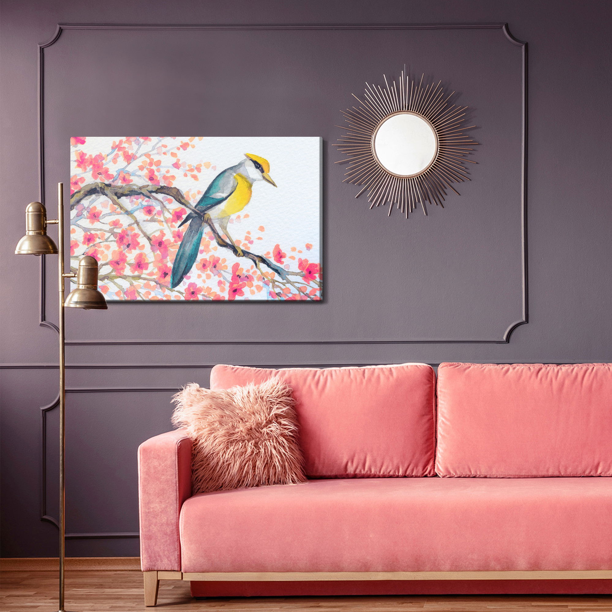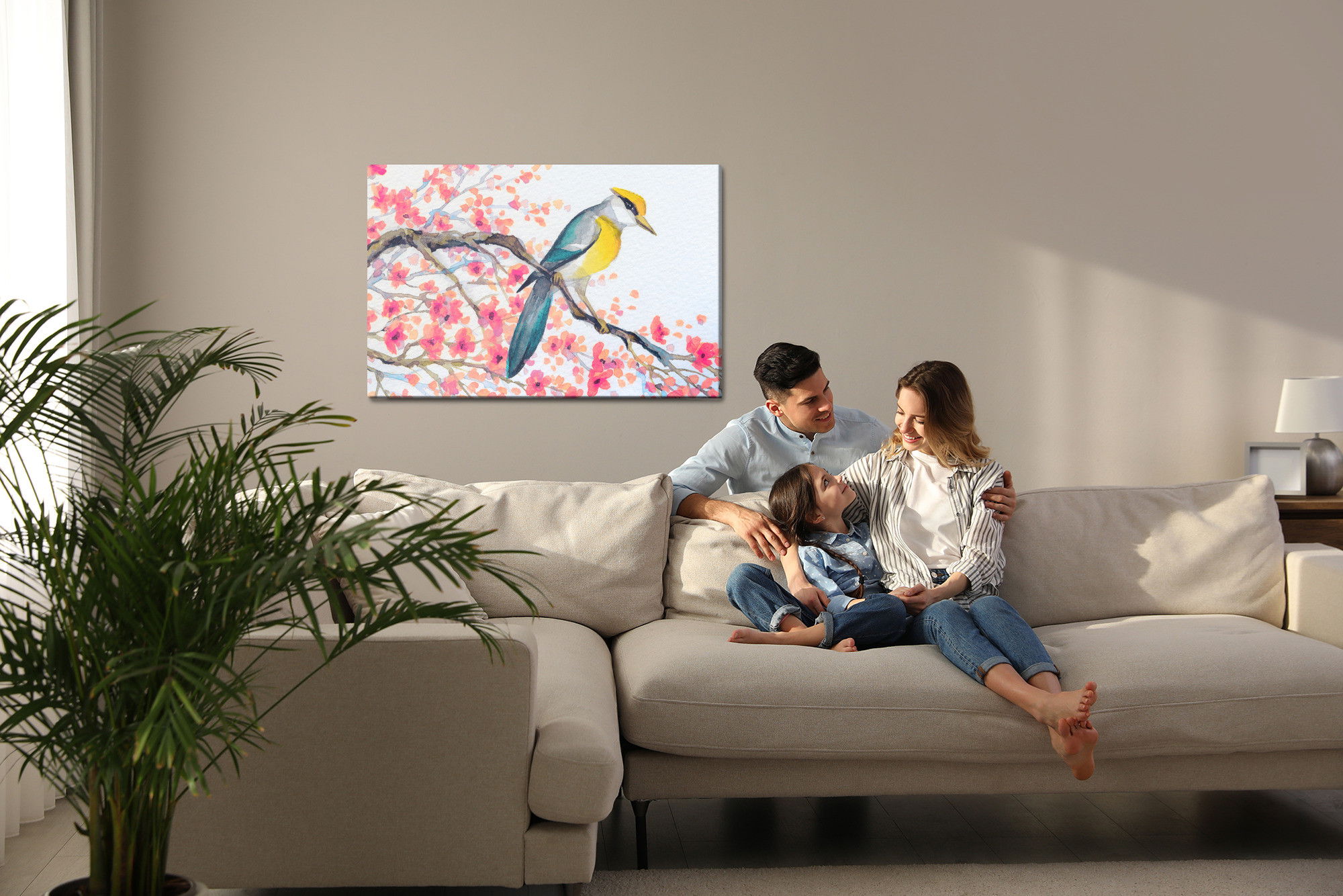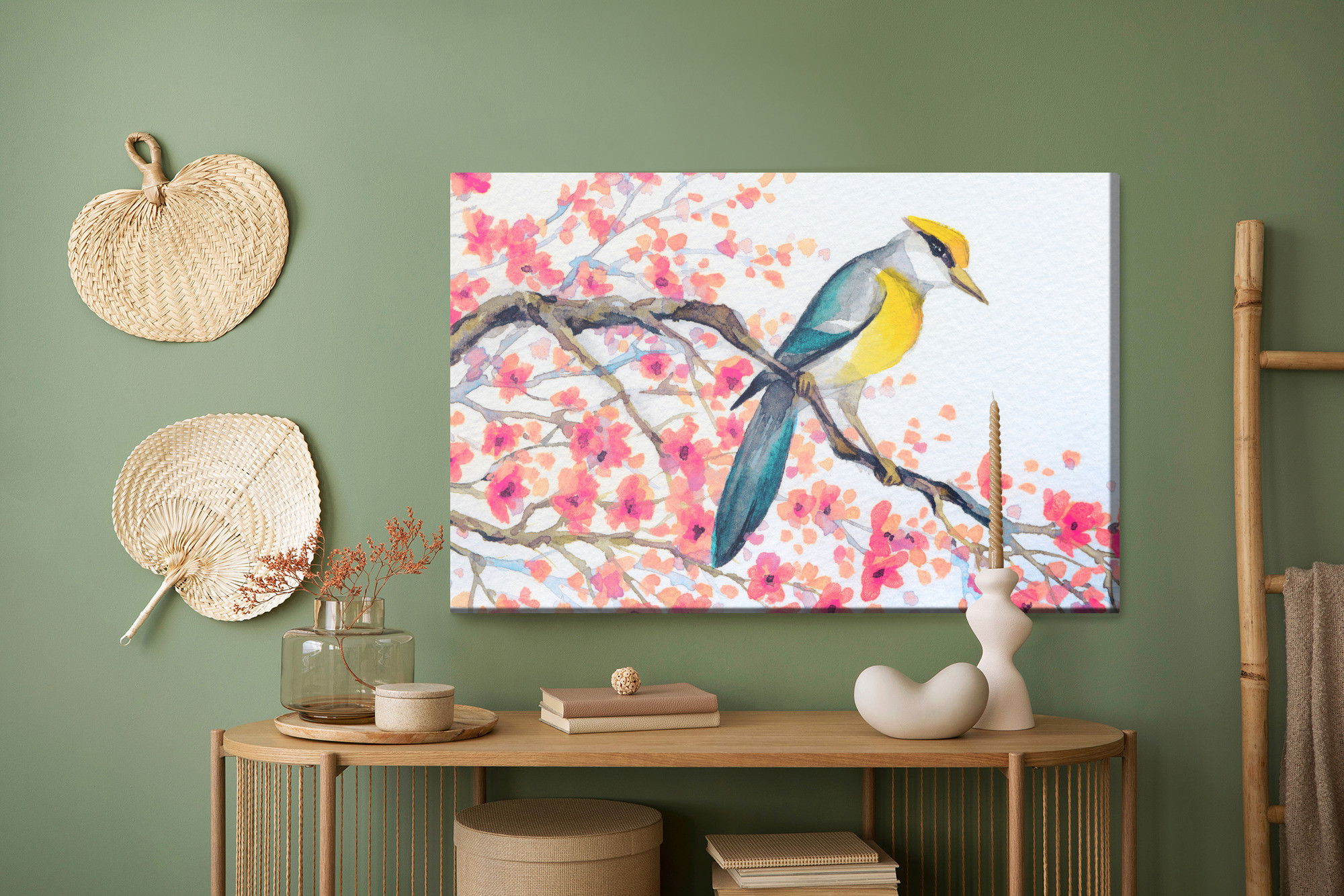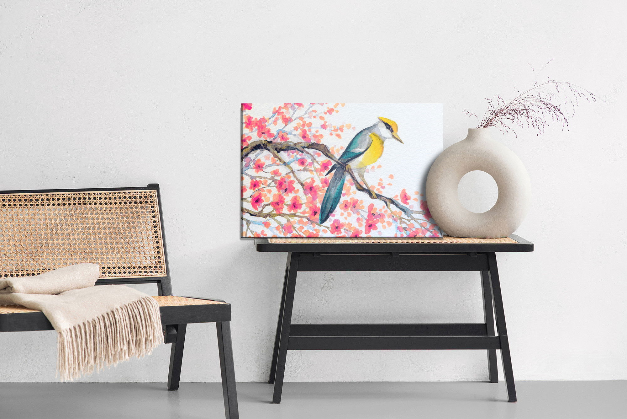 Ljuddämpande tavla – Bird and flowers on the tree för lugnare rum och mjukare akustik