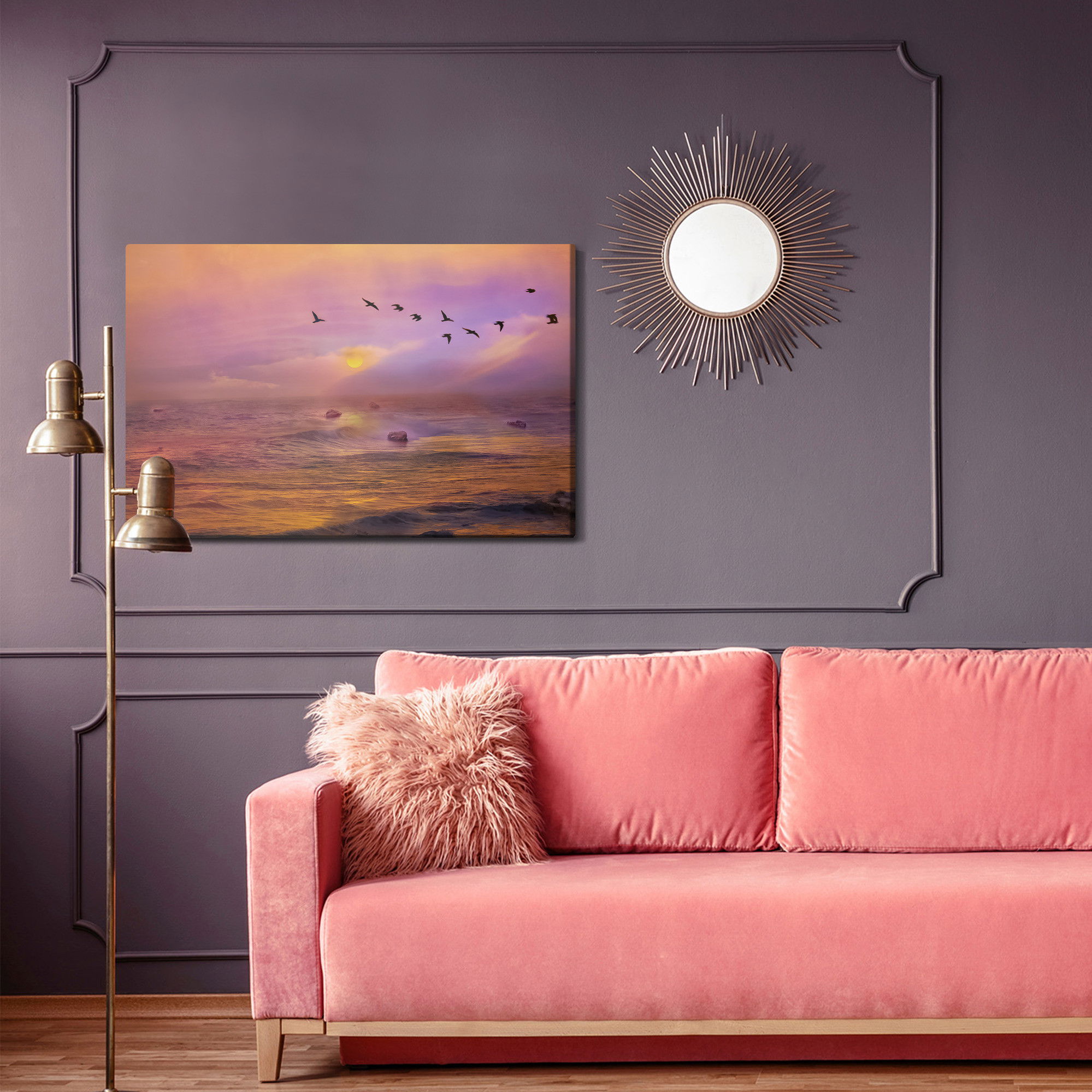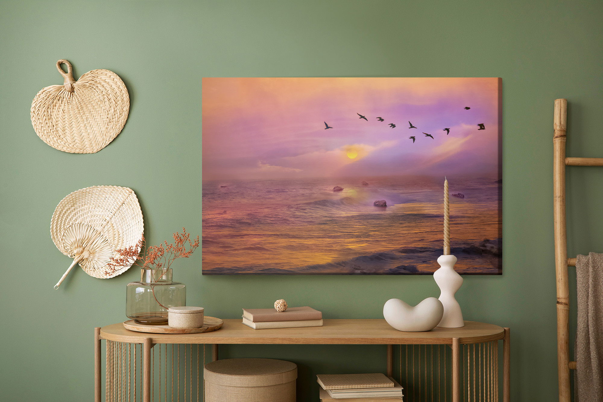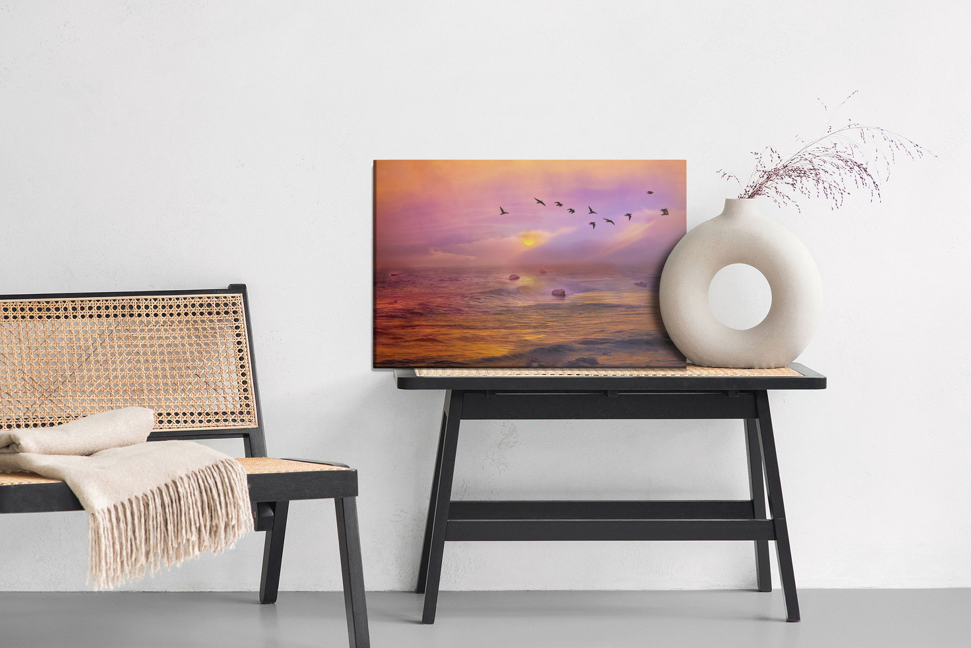 Ljuddämpande tavla – Birds over the ocean för lugnare rum och mjukare akustik