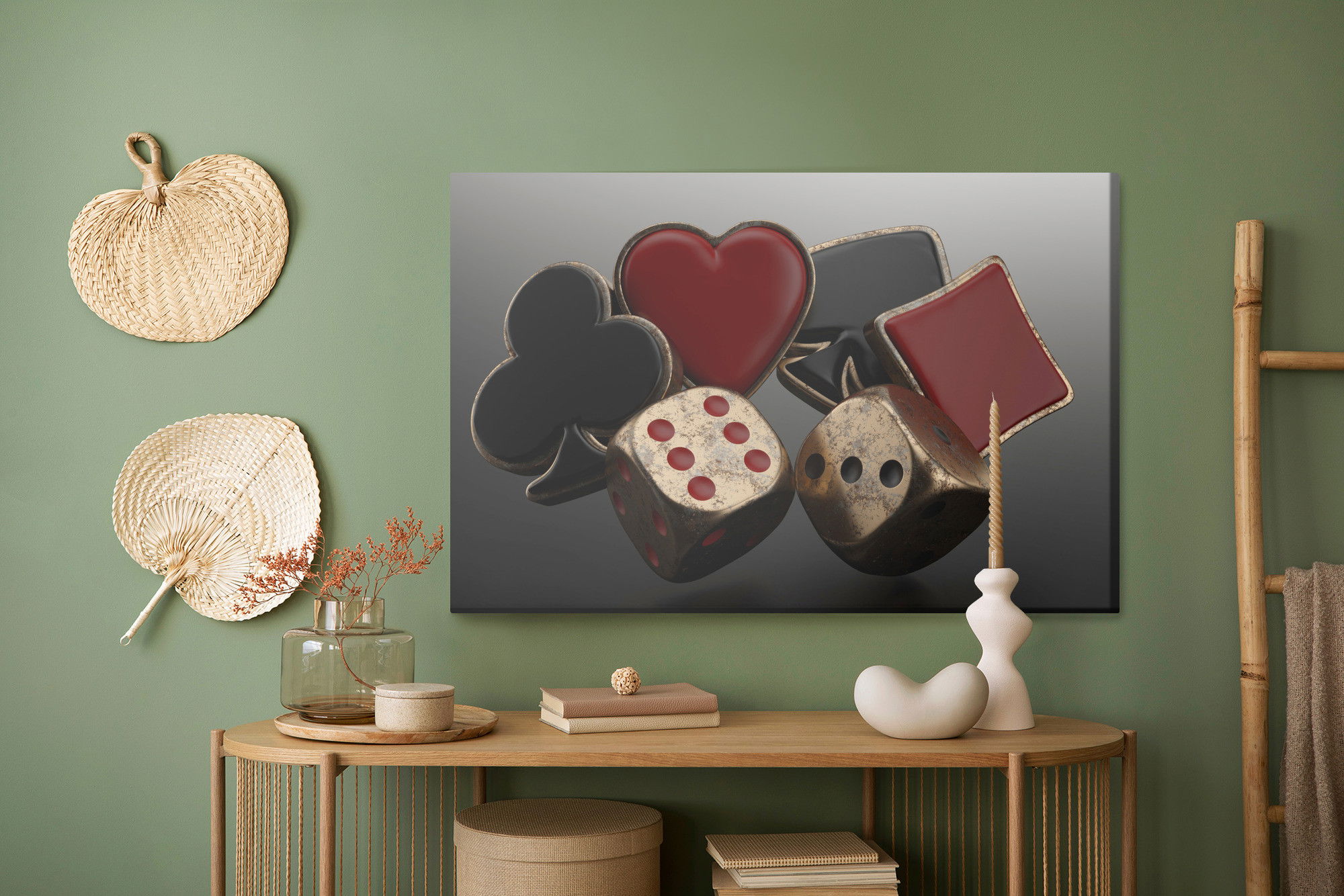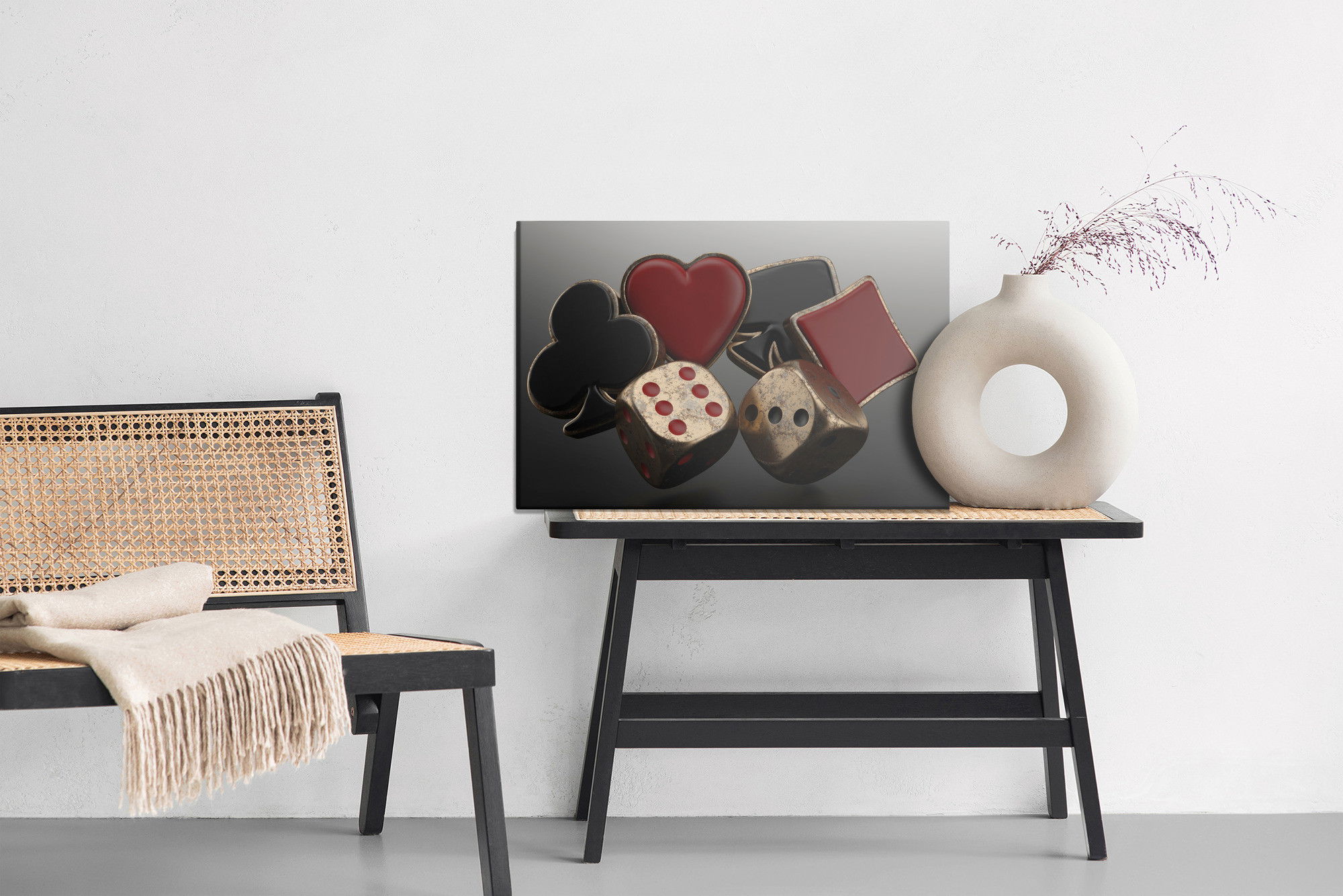 Motivet Black and red card symbols återges med hög färgprecision och detaljrikedom tack vare HP Latex-teknologi. Trycket sker med vattenbaserade, luktfria och GREENGUARD Gold-certifierade bläck som ger en upplösning på upp till 300 DPI. Färgerna är UV-beständiga och behåller sin styrka även i ljusa rum, vilket gör tavlan lämplig för både hem- och offentliga miljöer.