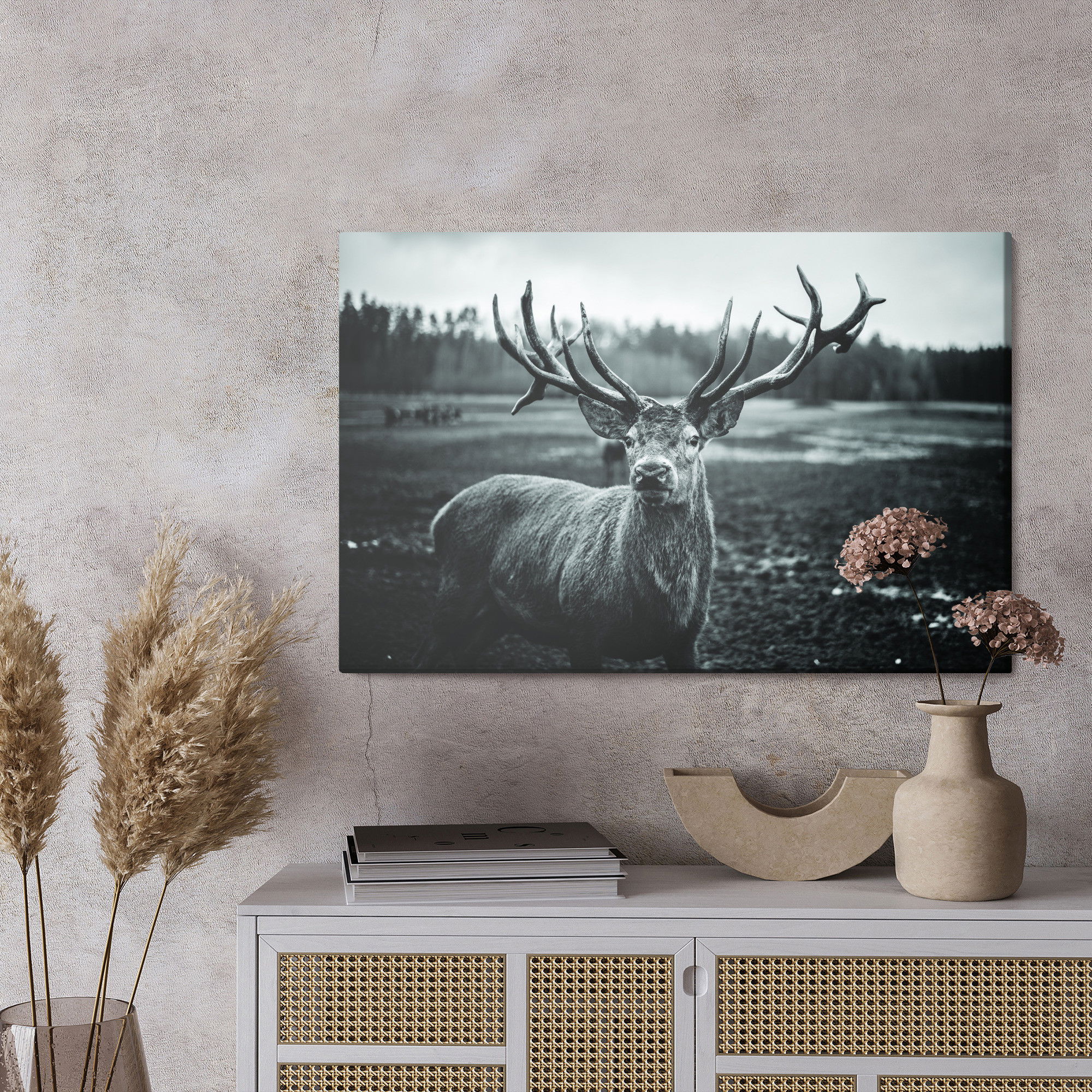 Ljuddämpande tavla – Black and white deer för lugnare rum och mjukare akustik