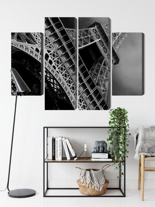 Ljuddämpande tavla – Black and white eiffel tower för lugnare rum och mjukare akustik