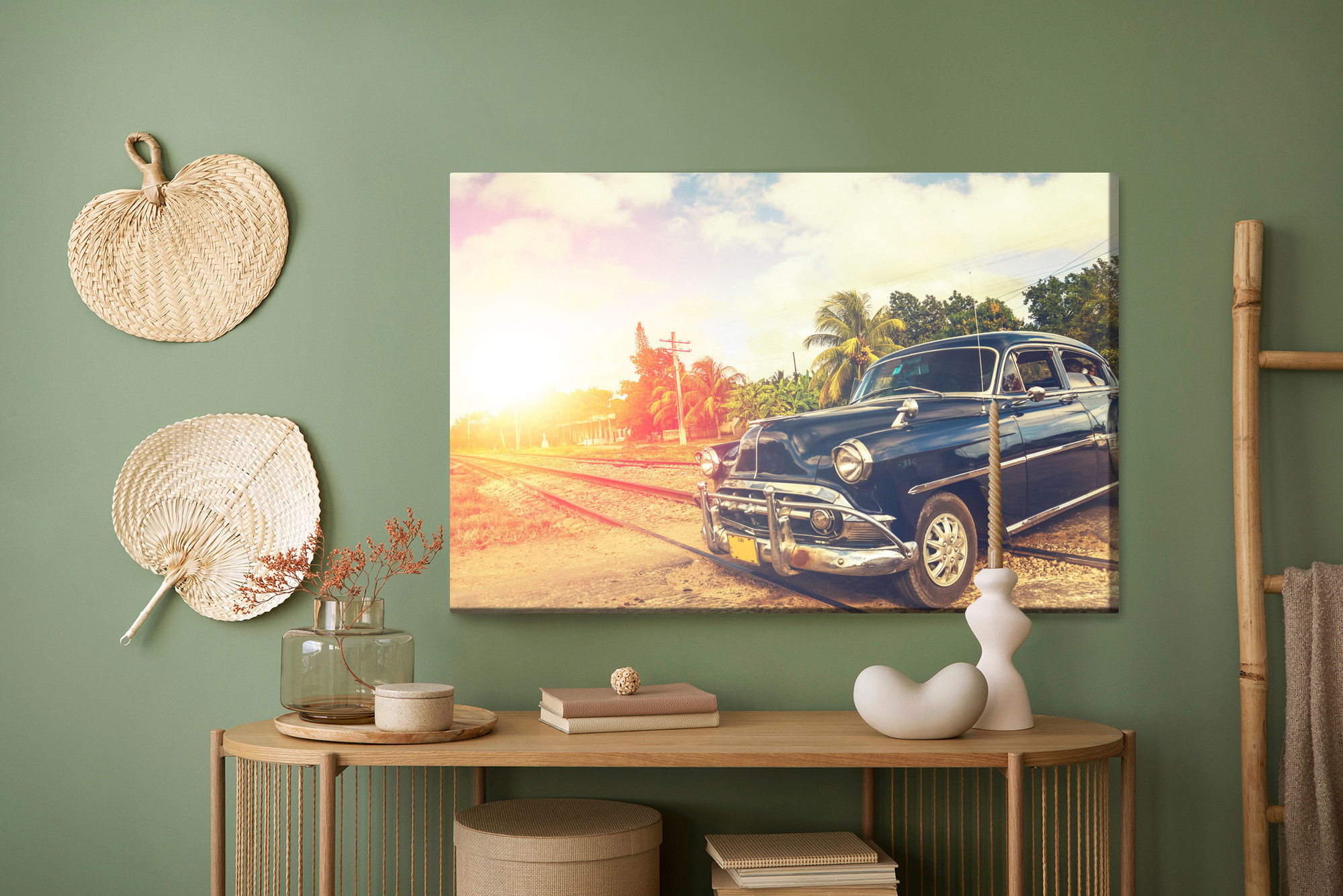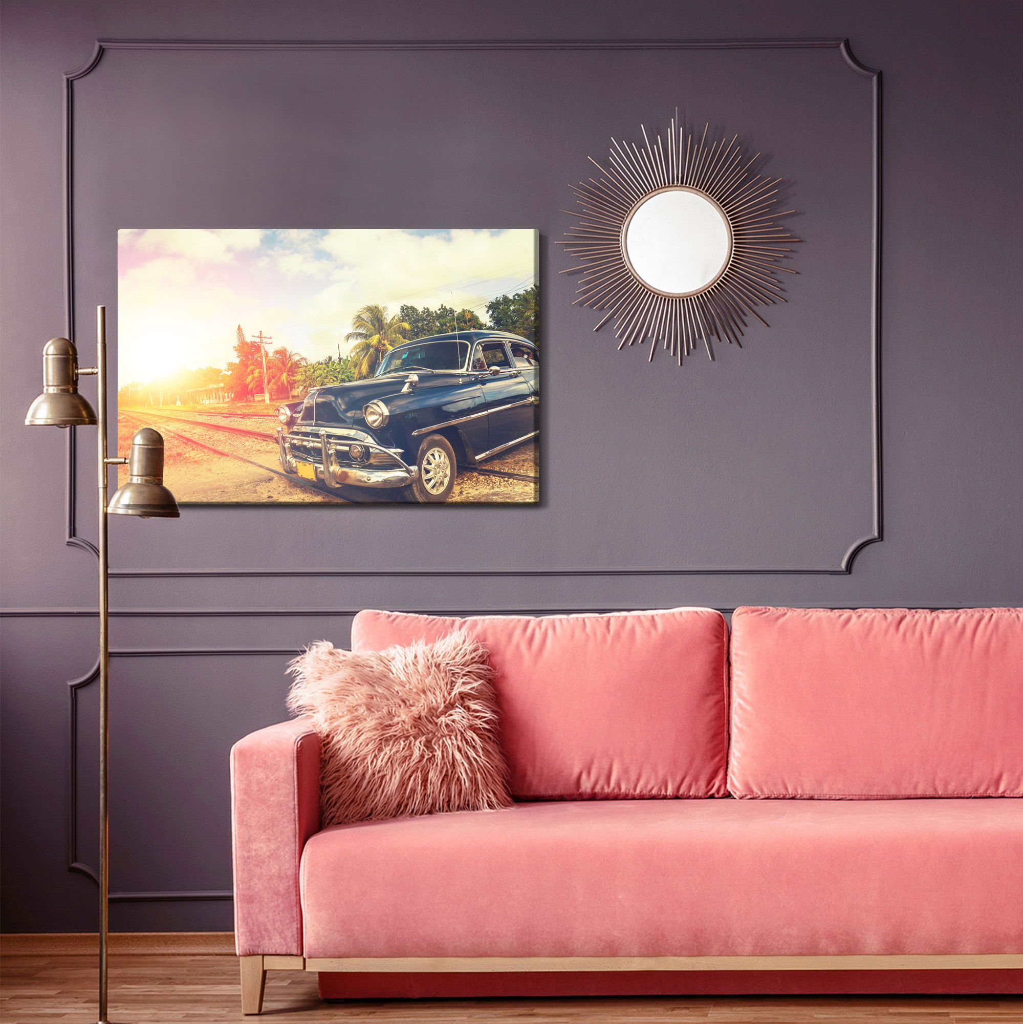 Ljuddämpande tavla – Black car in retro style för lugnare rum och mjukare akustik