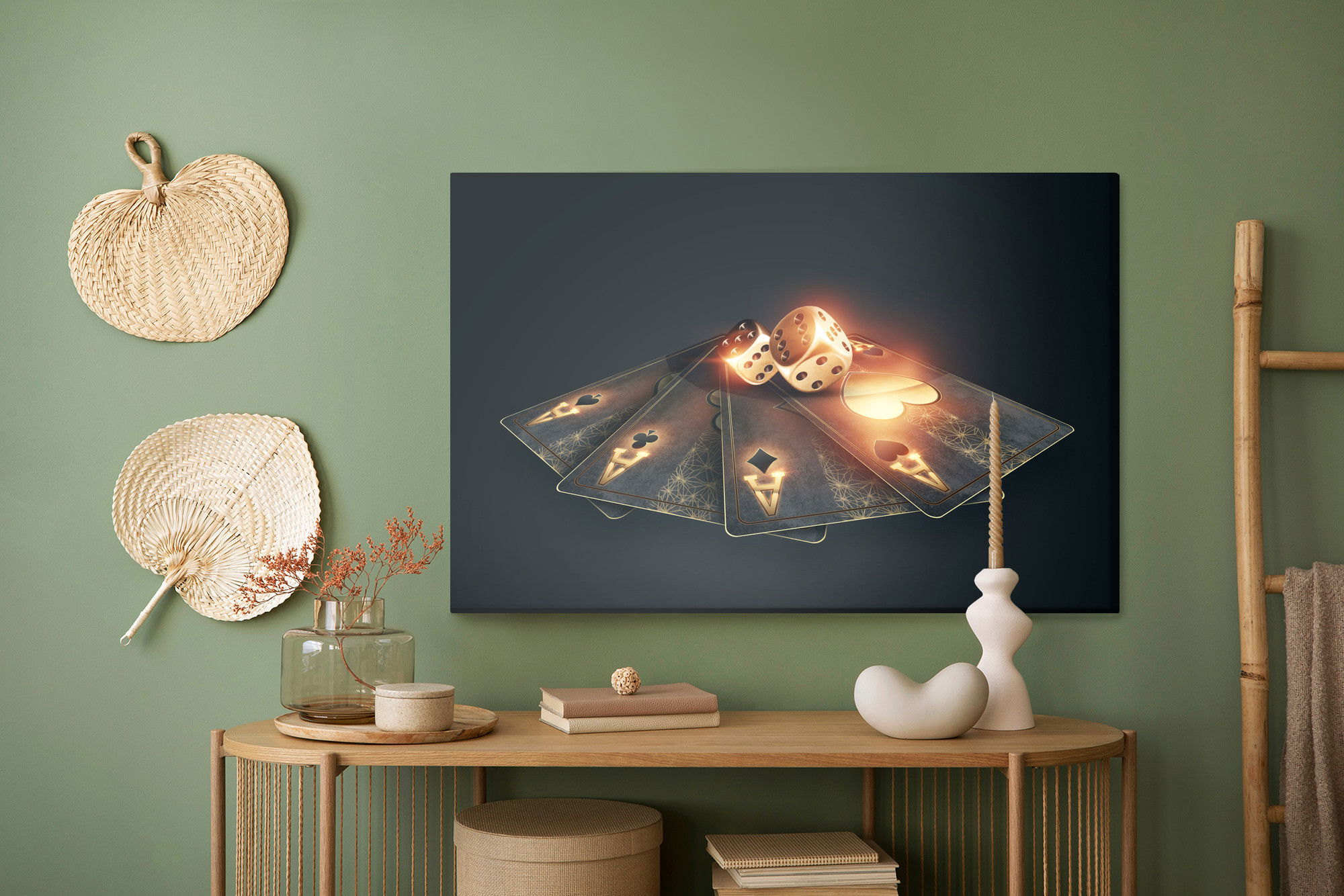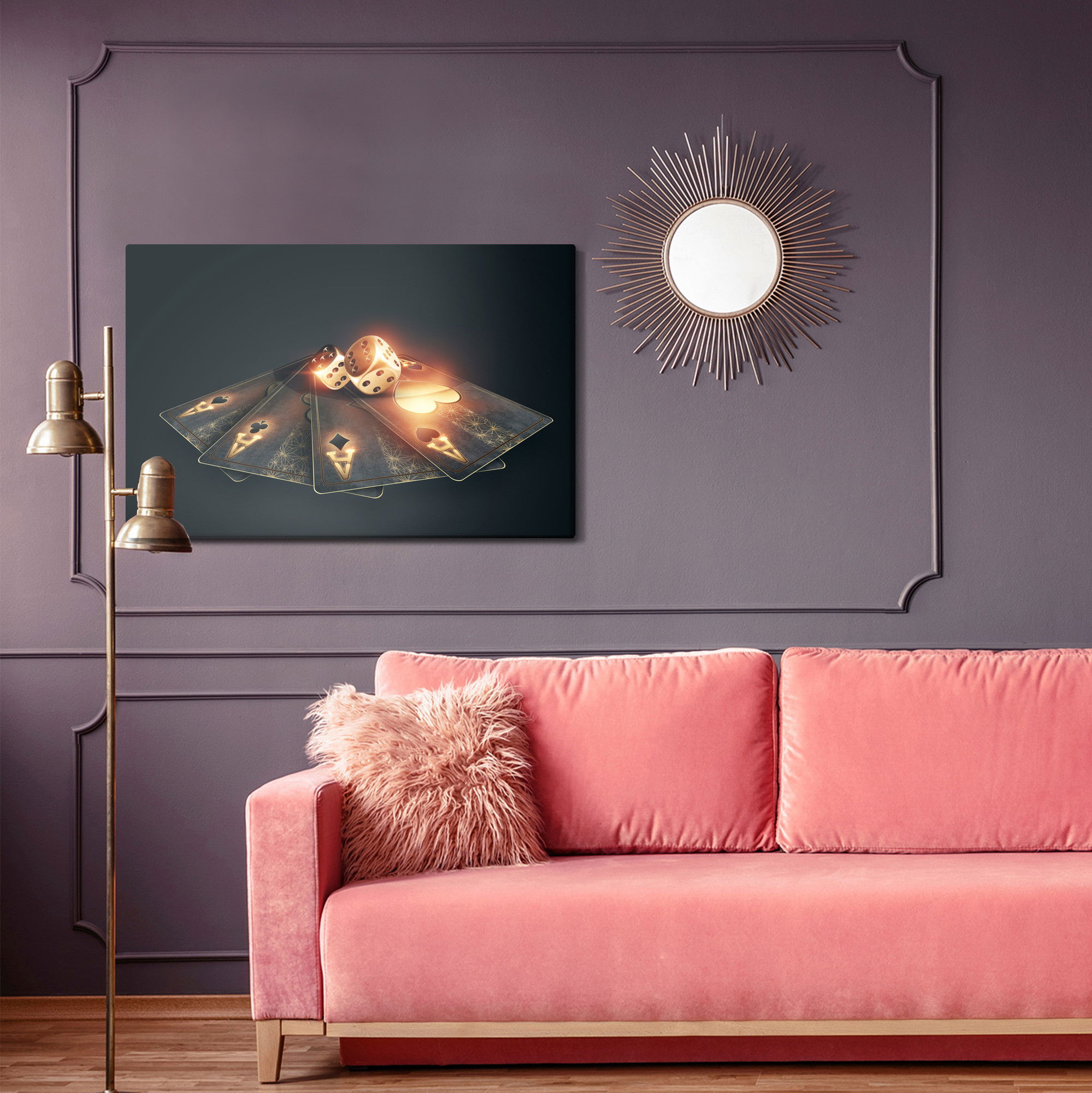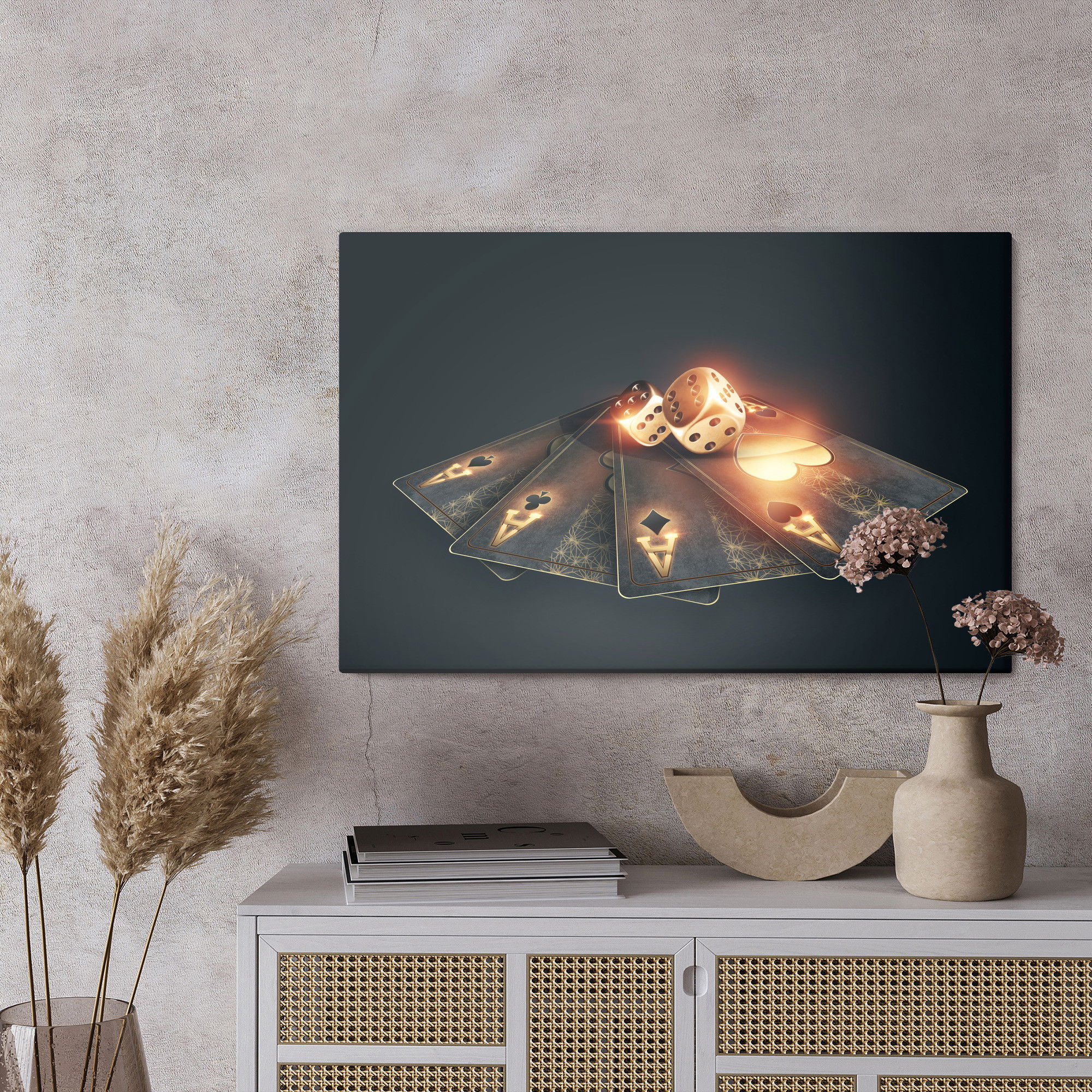 Varje tavla monteras på en massiv fururam. Format upp till 70×50 cm har en ram på 15 mm, medan format från 90×60 cm och uppåt har en ram på 20 mm. Den exakta dukspänningen gör att tavlan håller sin form över tid. Motivet Black poker cards trycks runt hela ramen vilket ger ett stilrent galleriuttryck där tavlan är lika vacker från sidan som framifrån. Kombinationen av rak dukspänning, rena linjer och korrekt tryck ger en professionell finish.