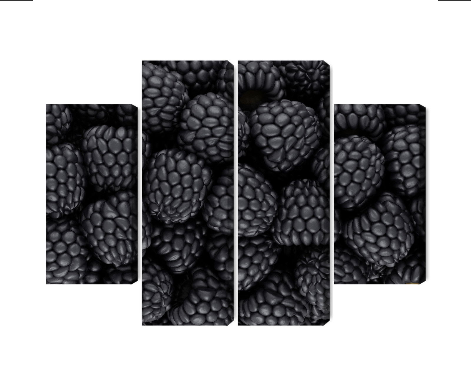 Varje tavla monteras på en massiv fururam. Format upp till 70×50 cm har en ram på 15 mm, medan format från 90×60 cm och uppåt har en ram på 20 mm. Den exakta dukspänningen gör att tavlan håller sin form över tid. Motivet Blackberries on a macro scale trycks runt hela ramen vilket ger ett stilrent galleriuttryck där tavlan är lika vacker från sidan som framifrån. Kombinationen av rak dukspänning, rena linjer och korrekt tryck ger en professionell finish.