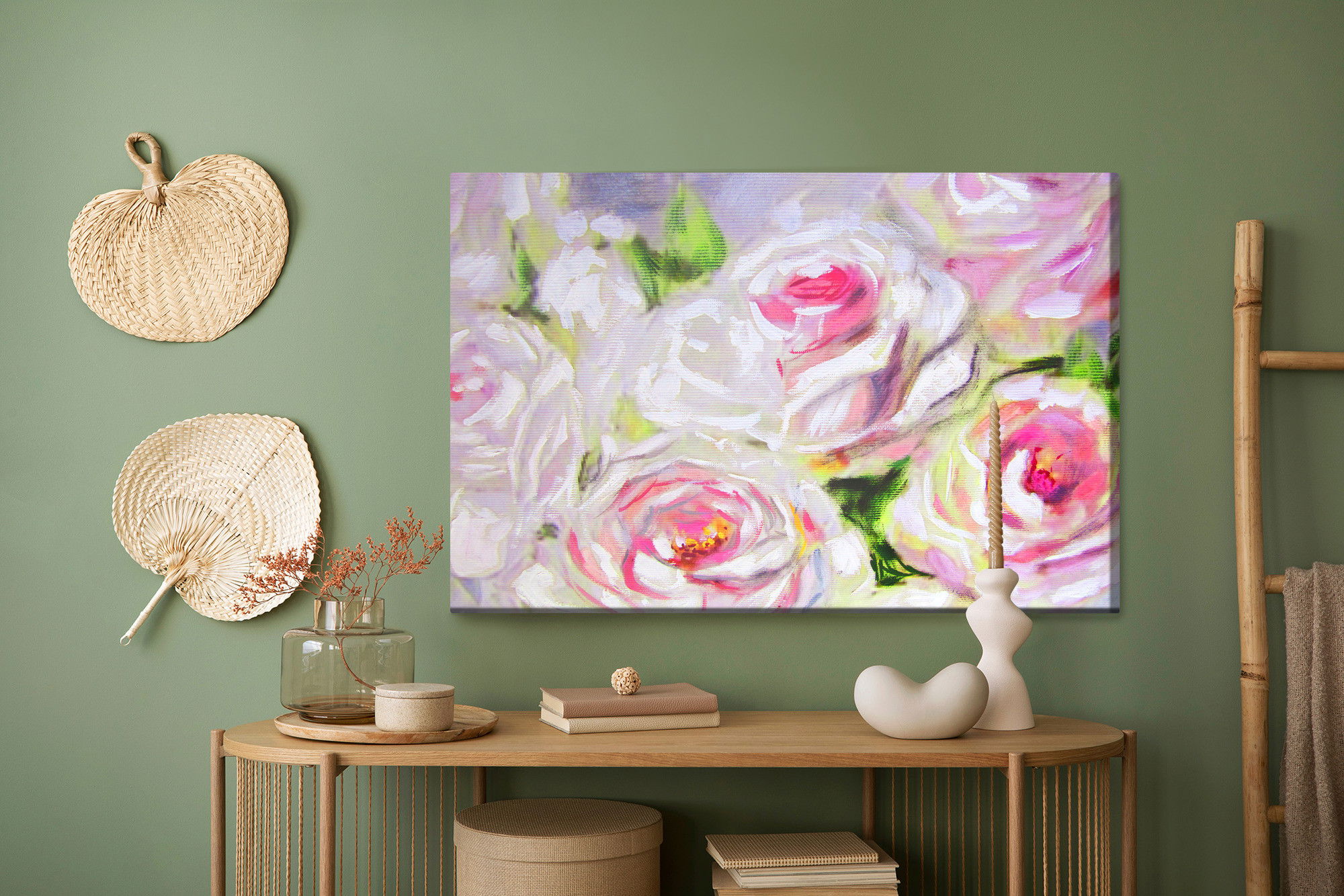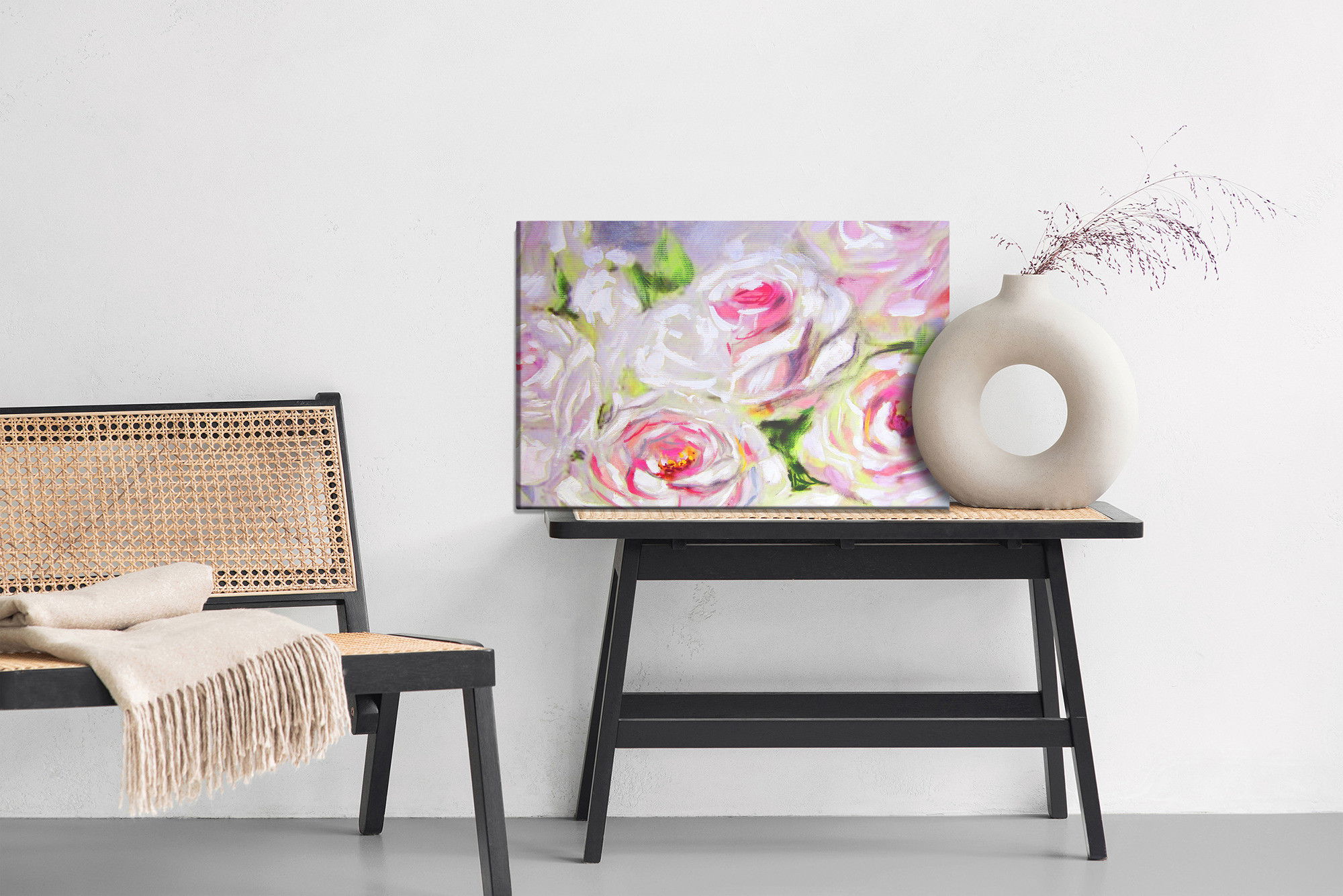 Ljuddämpande tavla – Blooming roses as painted för lugnare rum och mjukare akustik