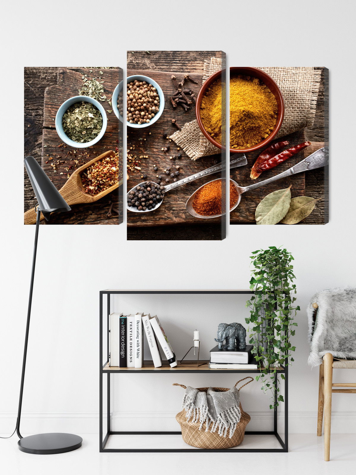 Motivet Board with various spices återges med hög färgprecision och detaljrikedom tack vare HP Latex-teknologi. Trycket sker med vattenbaserade, luktfria och GREENGUARD Gold-certifierade bläck som ger en upplösning på upp till 300 DPI. Färgerna är UV-beständiga och behåller sin styrka även i ljusa rum, vilket gör tavlan lämplig för både hem- och offentliga miljöer.