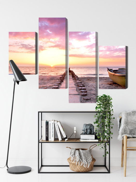 Varje tavla monteras på en massiv fururam. Format upp till 70×50 cm har en ram på 15 mm, medan format från 90×60 cm och uppåt har en ram på 20 mm. Den exakta dukspänningen gör att tavlan håller sin form över tid. Motivet Boat on the beach 3d trycks runt hela ramen vilket ger ett stilrent galleriuttryck där tavlan är lika vacker från sidan som framifrån. Kombinationen av rak dukspänning, rena linjer och korrekt tryck ger en professionell finish.