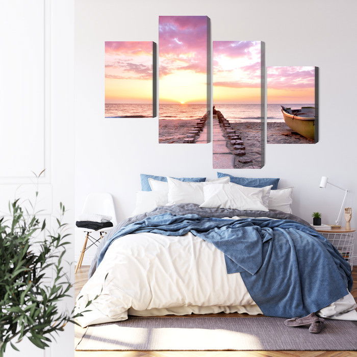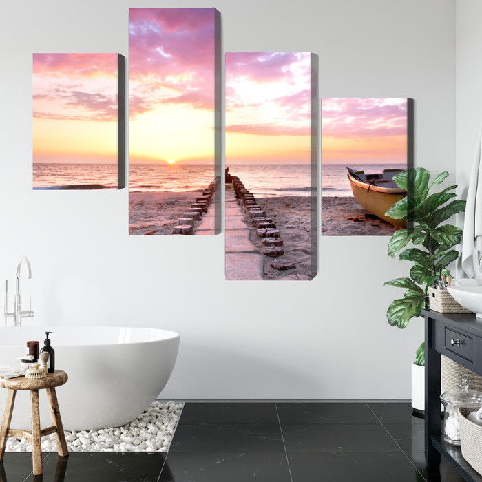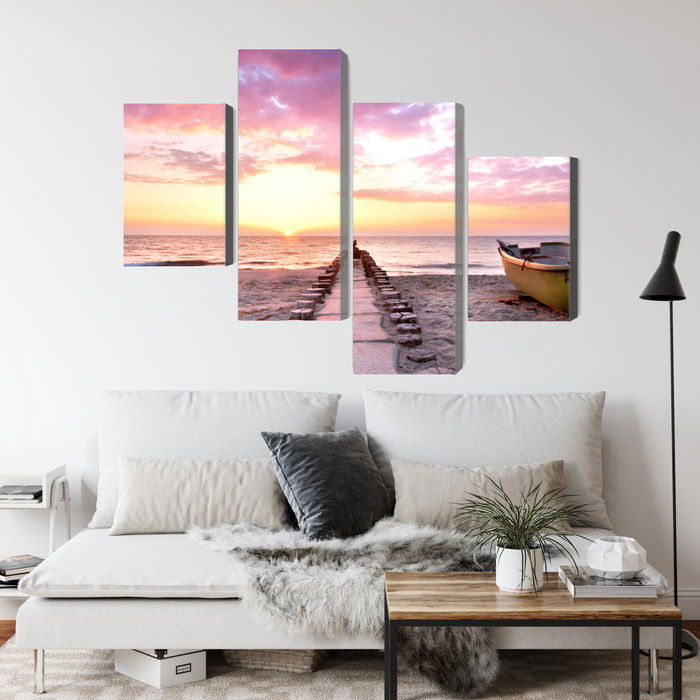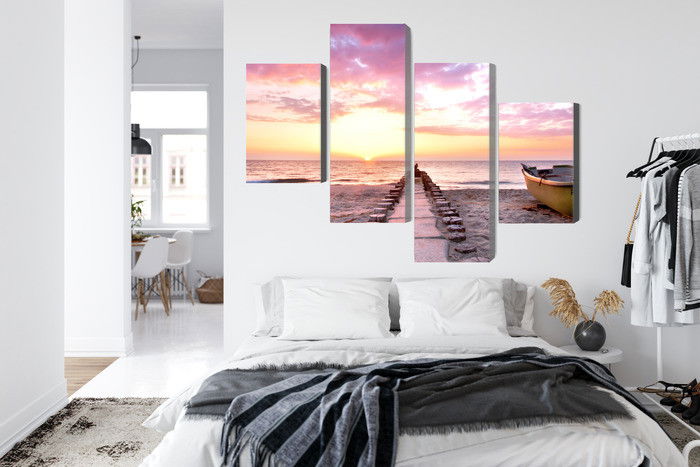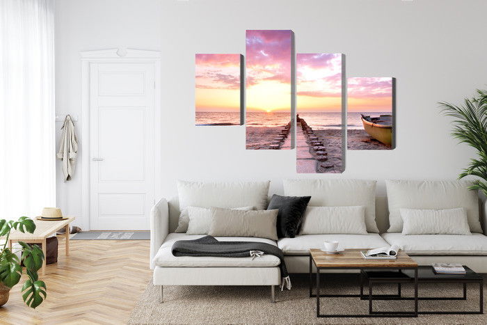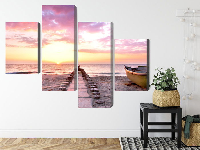 Ljuddämpande tavla – Boat on the beach 3d för lugnare rum och mjukare akustik