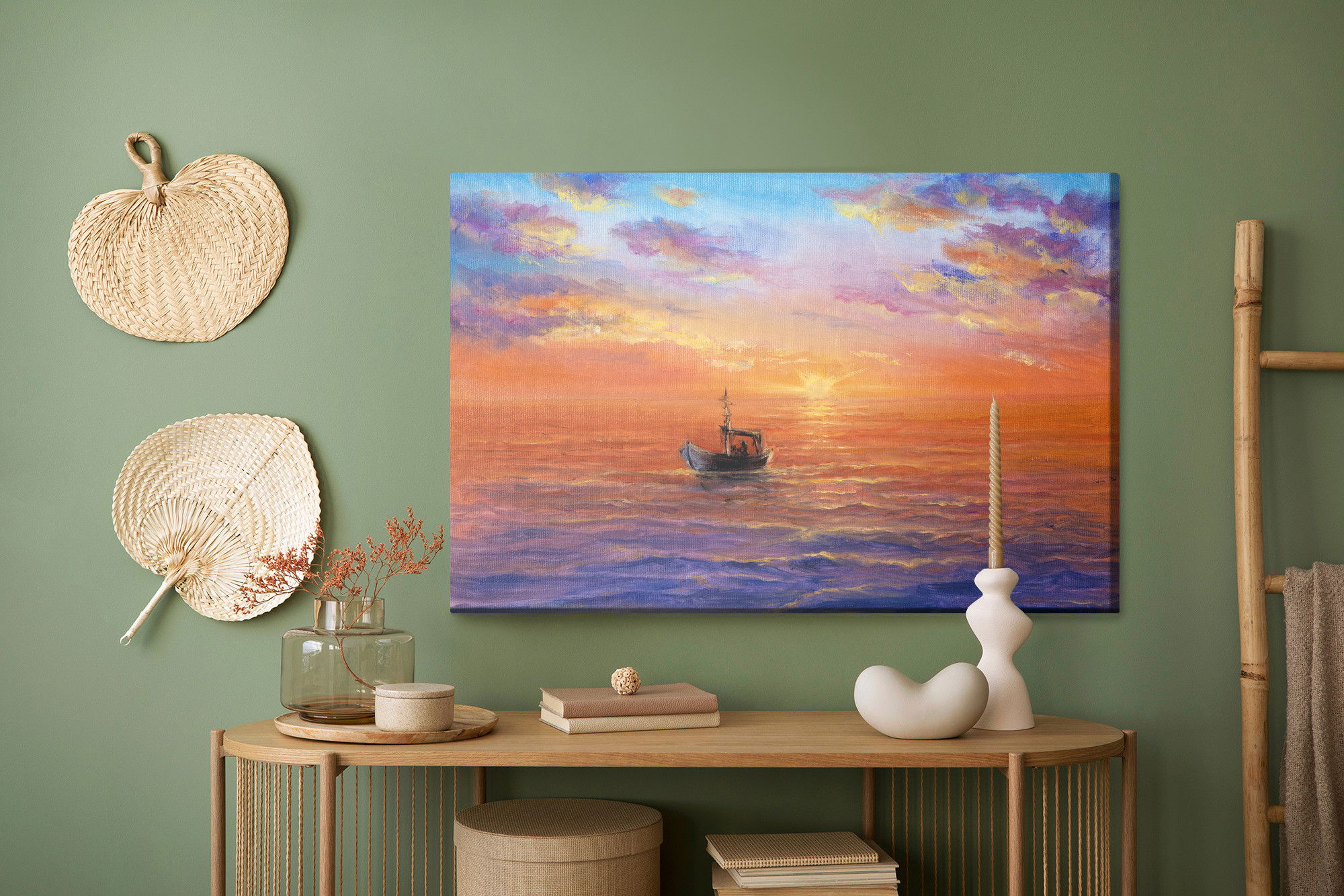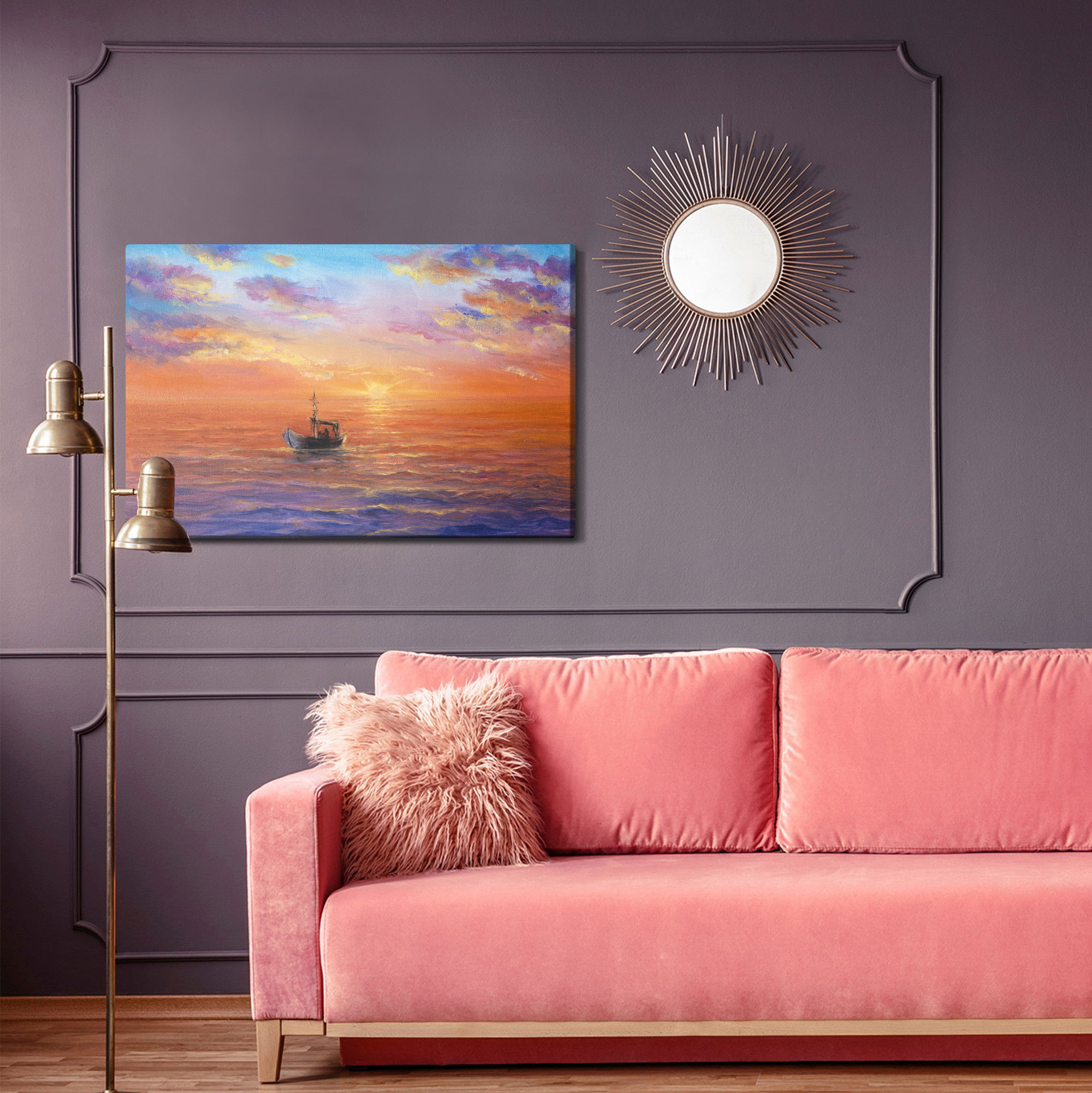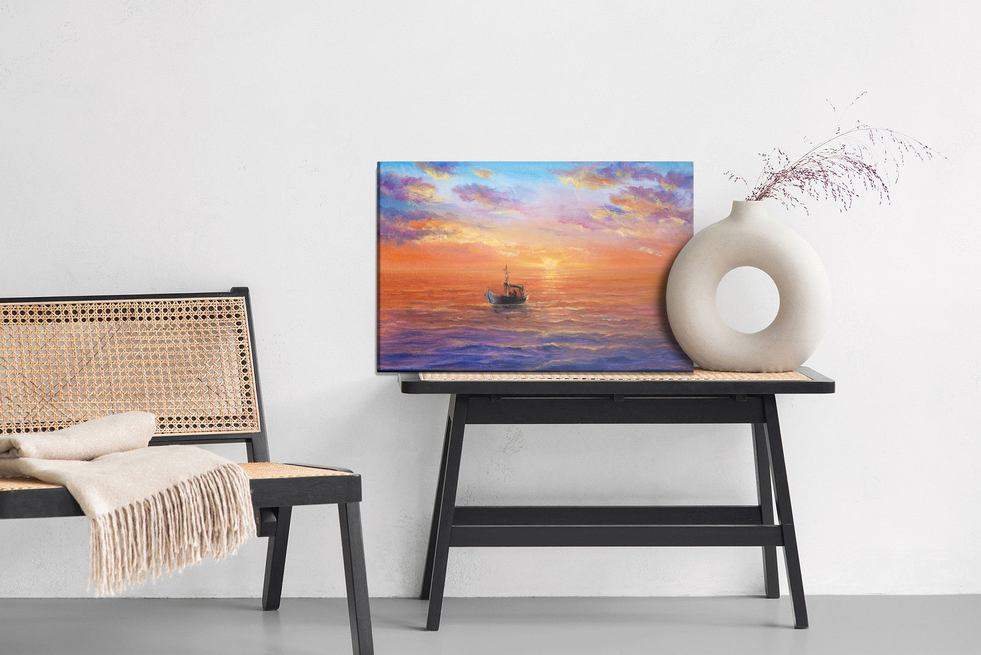 Ljuddämpande tavla – Boat on the sea för lugnare rum och mjukare akustik