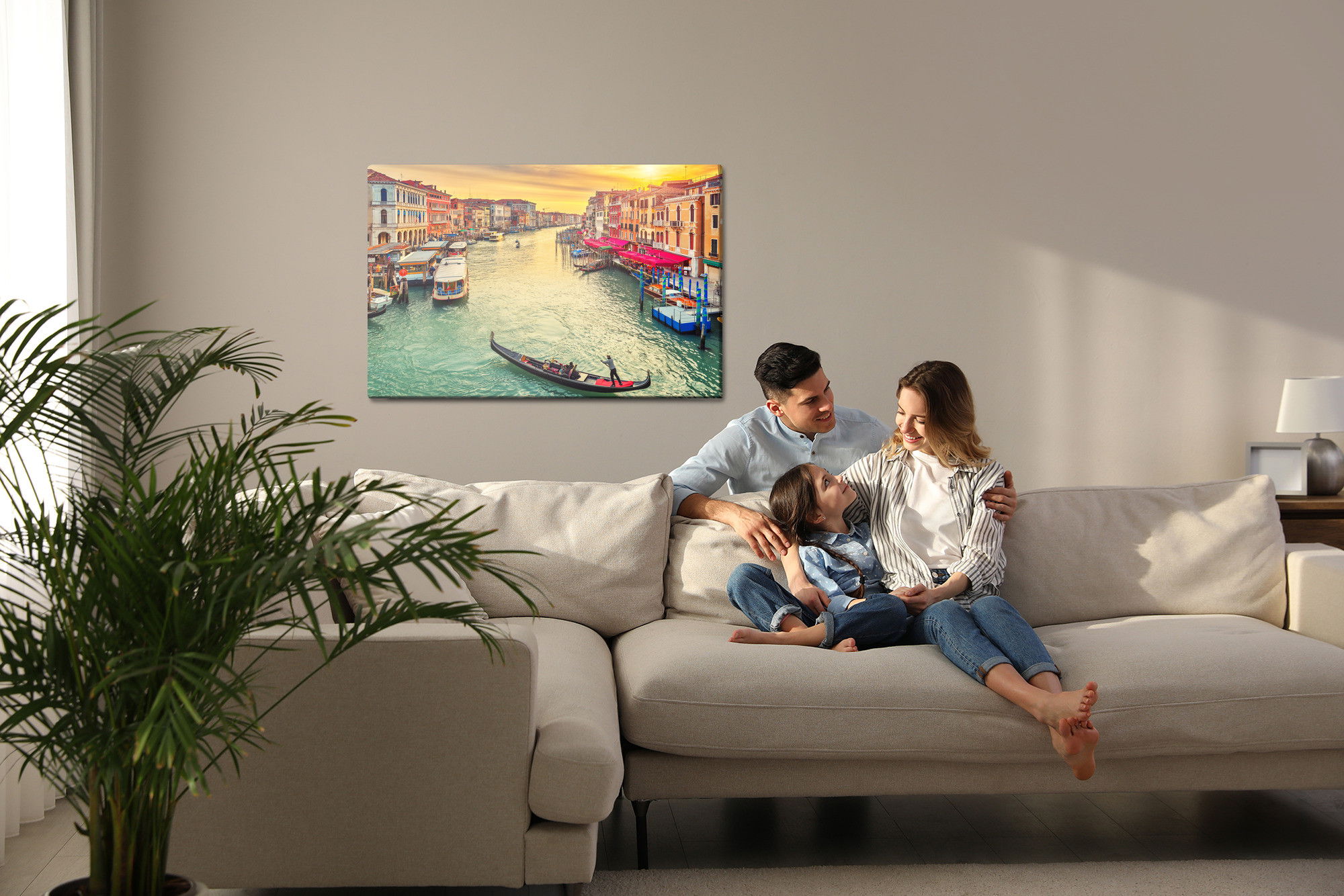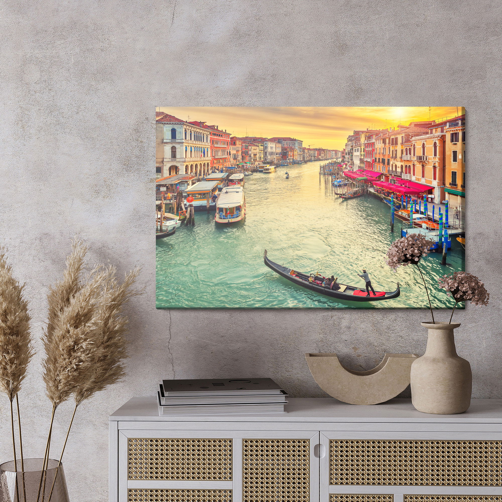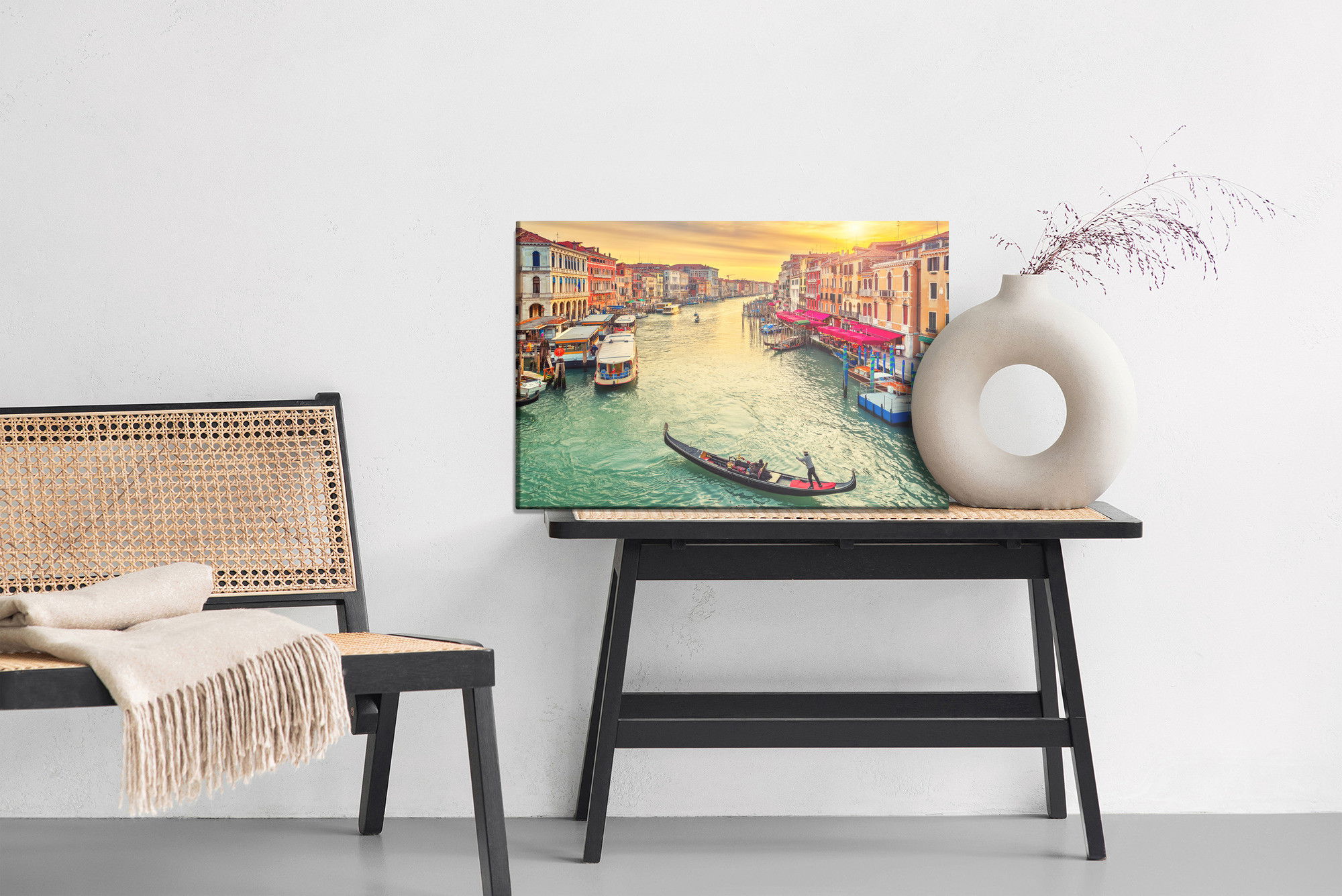 Ljuddämpande tavla – Boats in venice för lugnare rum och mjukare akustik