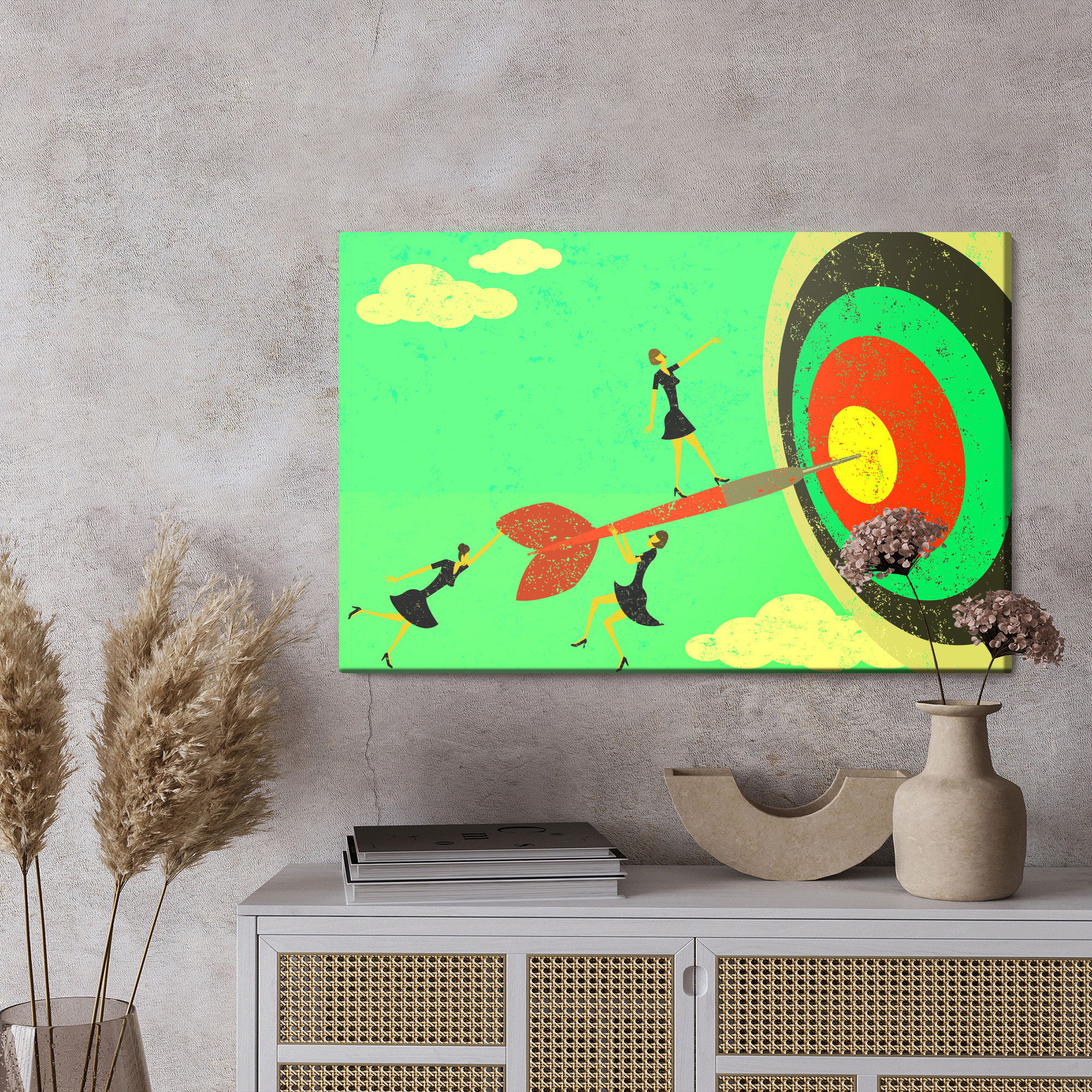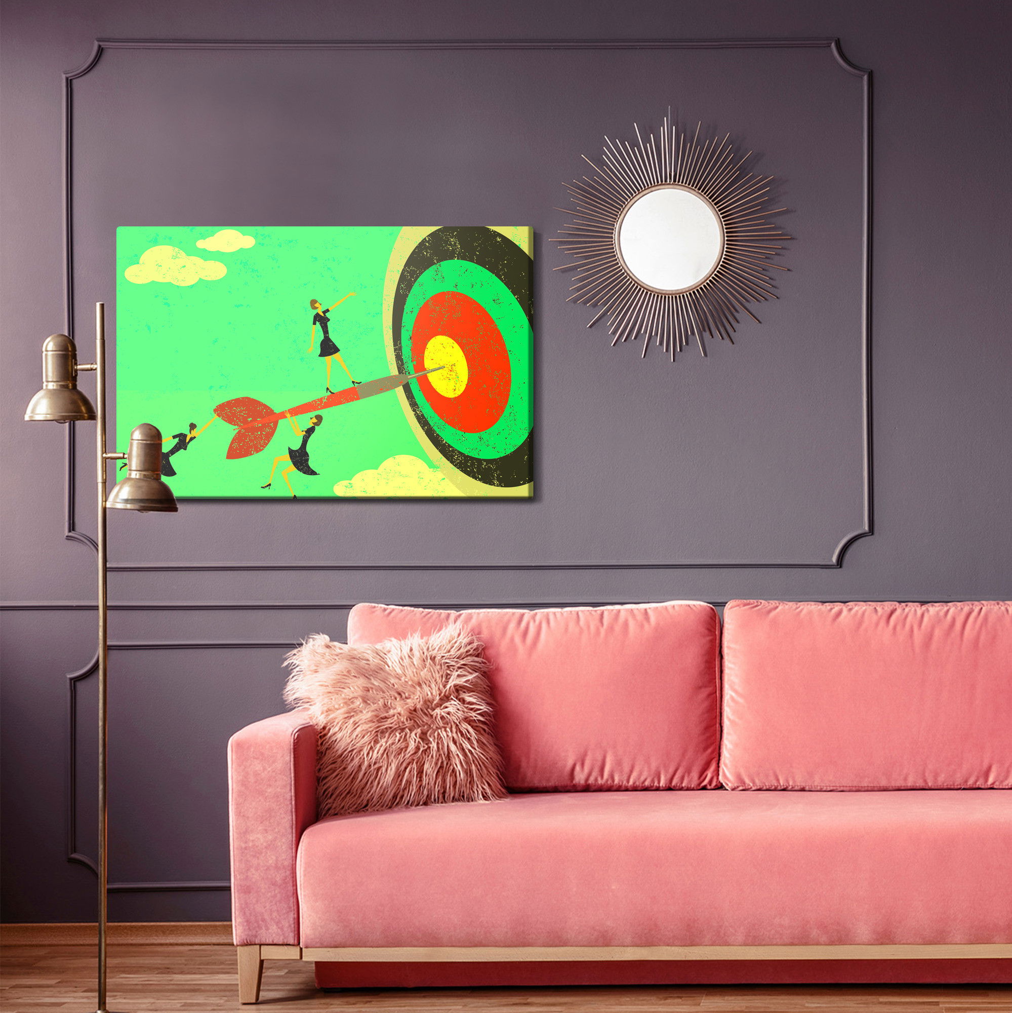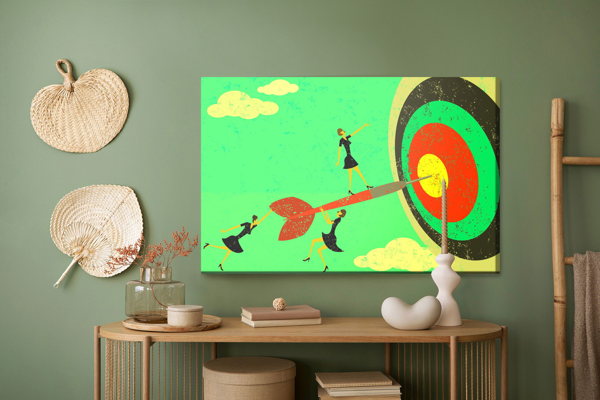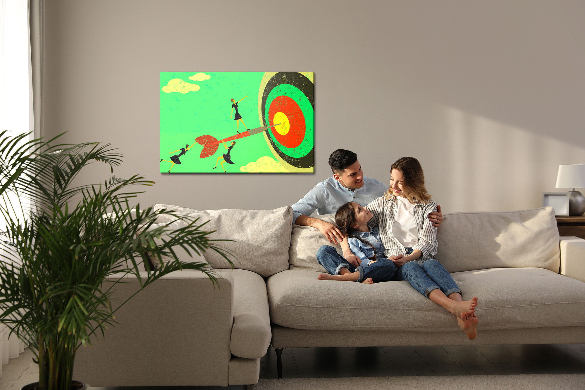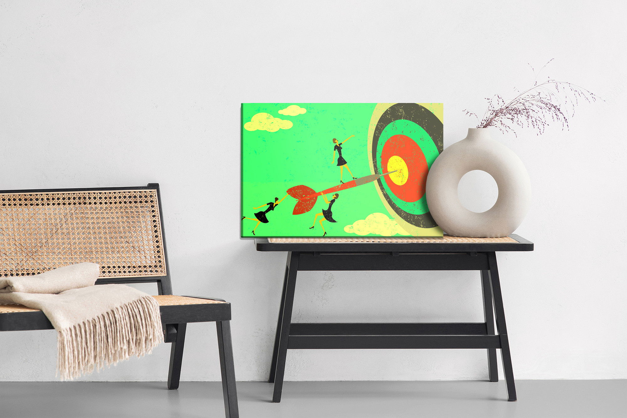Motivet Bull's-eye återges med hög färgprecision och detaljrikedom tack vare HP Latex-teknologi. Trycket sker med vattenbaserade, luktfria och GREENGUARD Gold-certifierade bläck som ger en upplösning på upp till 300 DPI. Färgerna är UV-beständiga och behåller sin styrka även i ljusa rum, vilket gör tavlan lämplig för både hem- och offentliga miljöer.