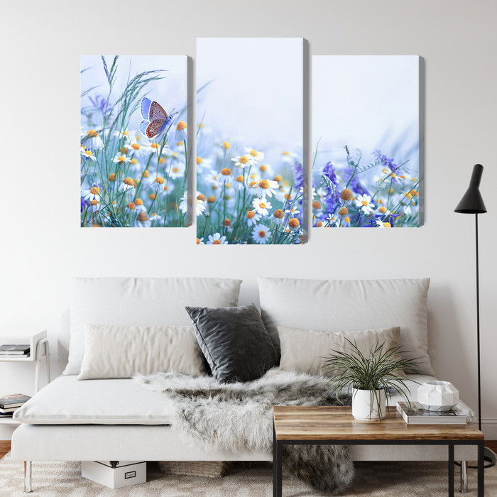 Ljuddämpande tavla – Butterfly and wildflowers för lugnare rum och mjukare akustik