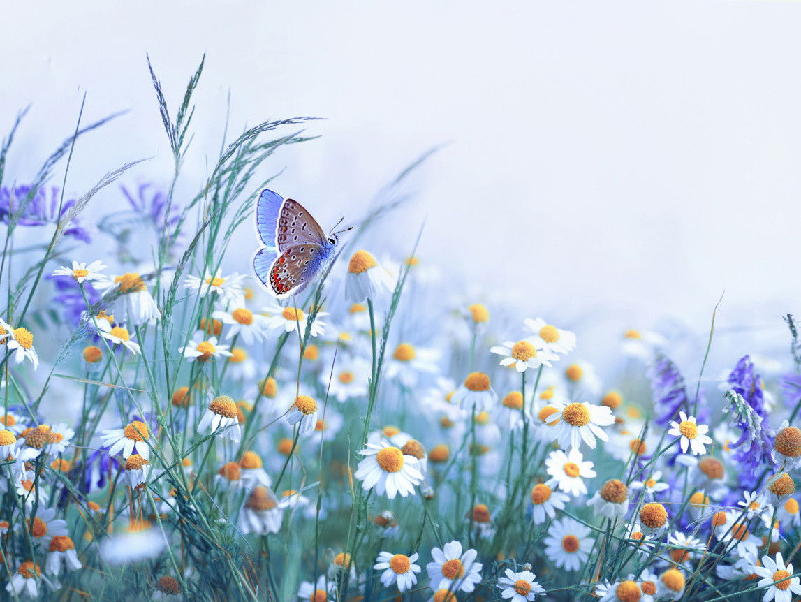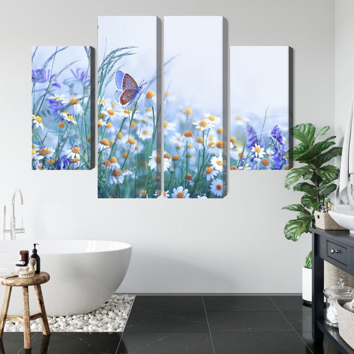Ljuddämpande tavla – Butterfly and wildflowers för lugnare rum och mjukare akustik