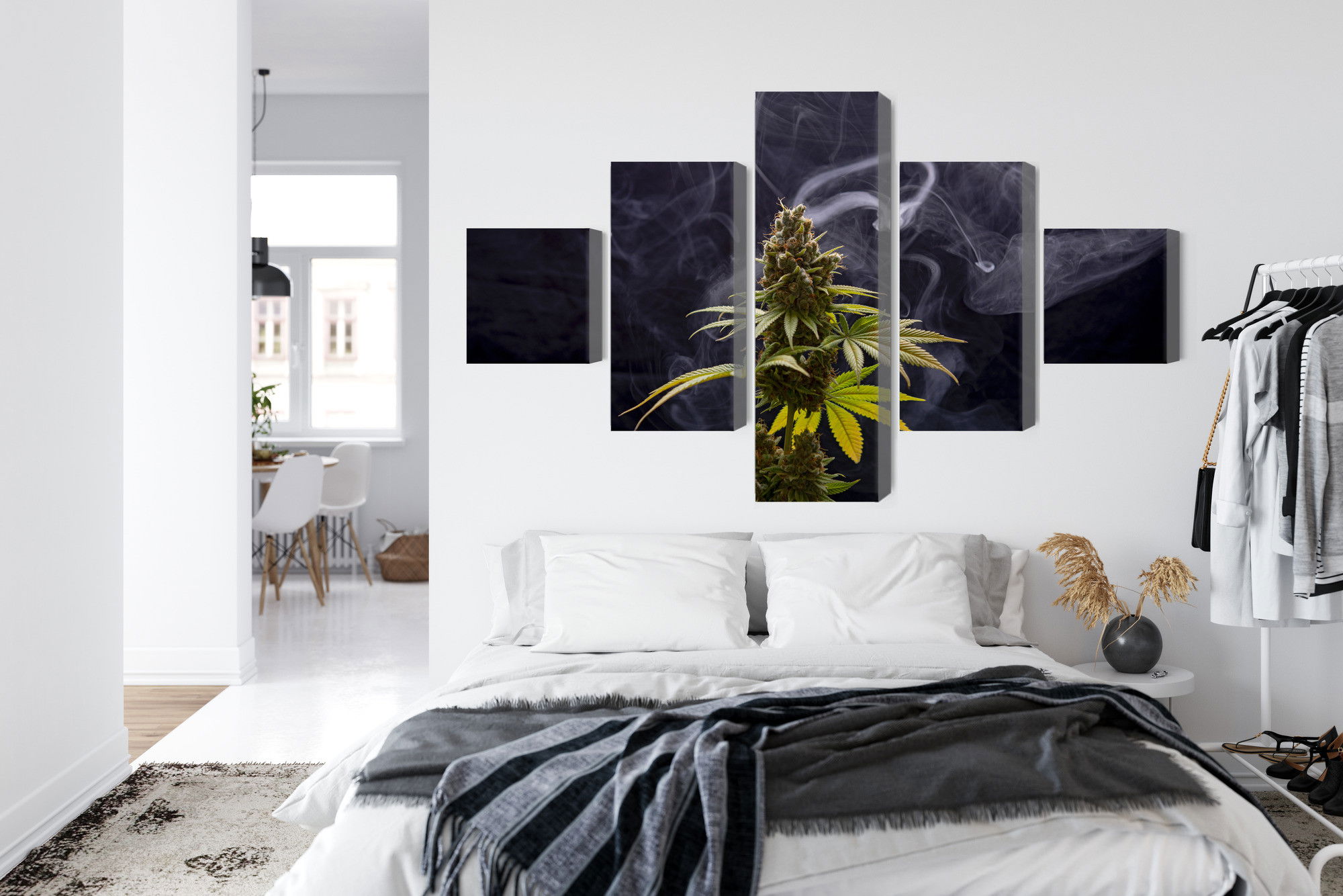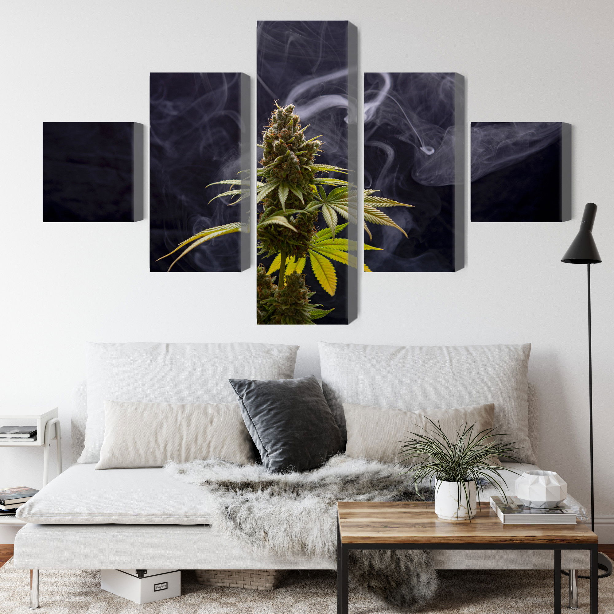 Ljuddämpande tavla – Cannabis plant on a smoky för lugnare rum och mjukare akustik