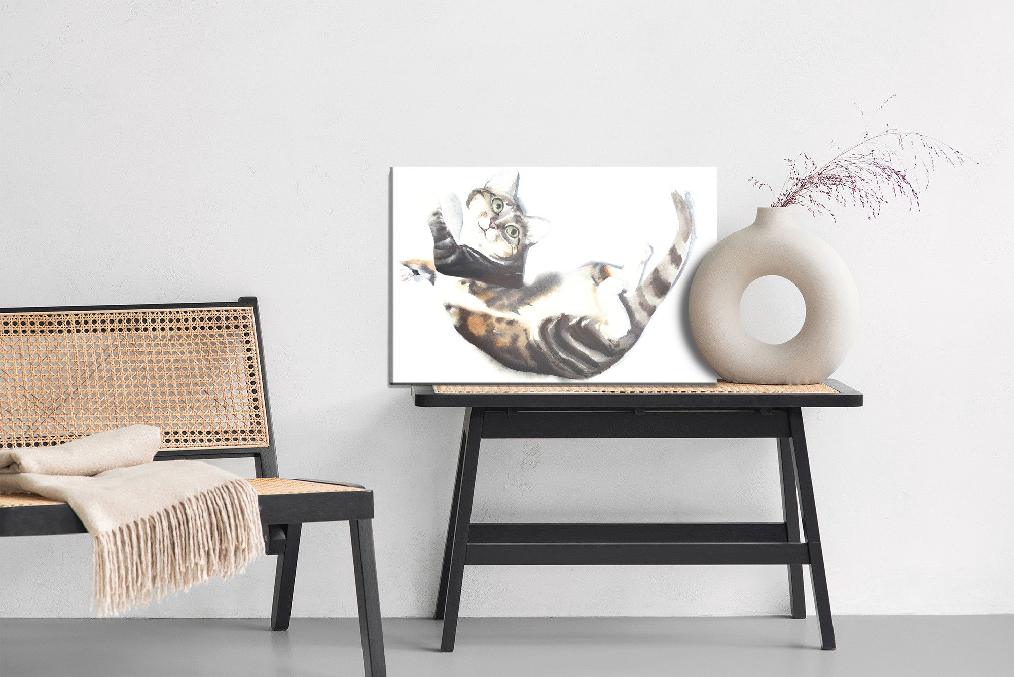 Ljuddämpande tavla – Cat painted with watercolor för lugnare rum och mjukare akustik