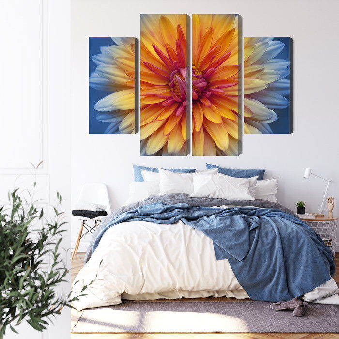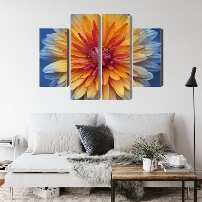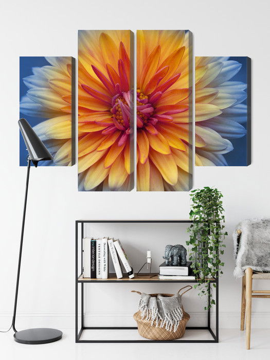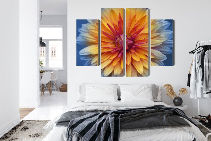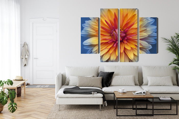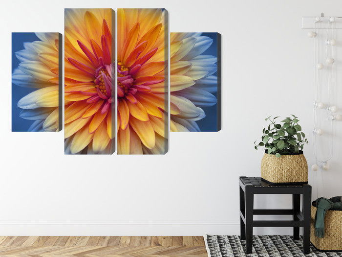 Varje tavla monteras på en massiv fururam. Format upp till 70×50 cm har en ram på 15 mm, medan format från 90×60 cm och uppåt har en ram på 20 mm. Den exakta dukspänningen gör att tavlan håller sin form över tid. Motivet Chrysanthemum flower close trycks runt hela ramen vilket ger ett stilrent galleriuttryck där tavlan är lika vacker från sidan som framifrån. Kombinationen av rak dukspänning, rena linjer och korrekt tryck ger en professionell finish.