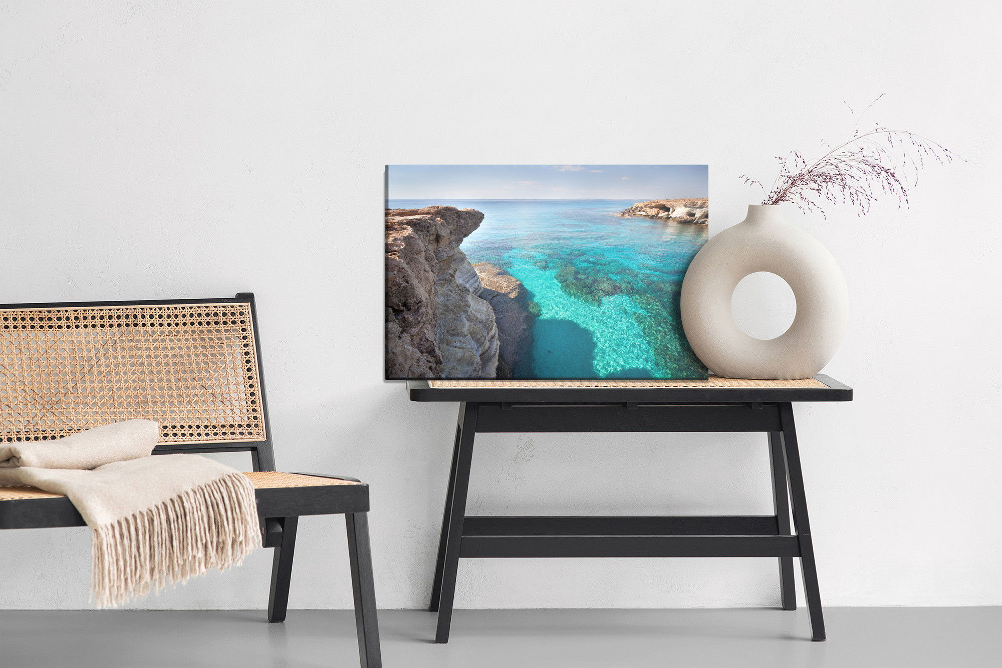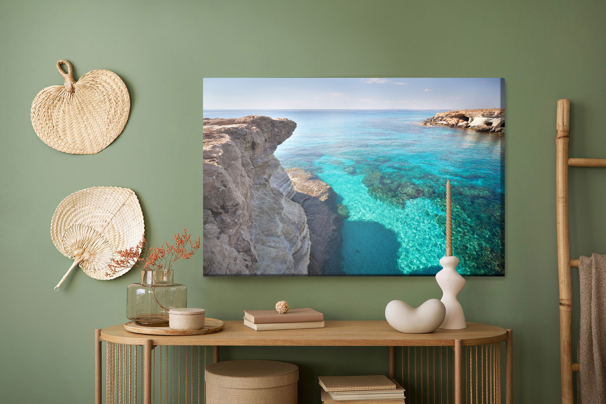 Ljuddämpande tavla – Cliffs with clear water för lugnare rum och mjukare akustik