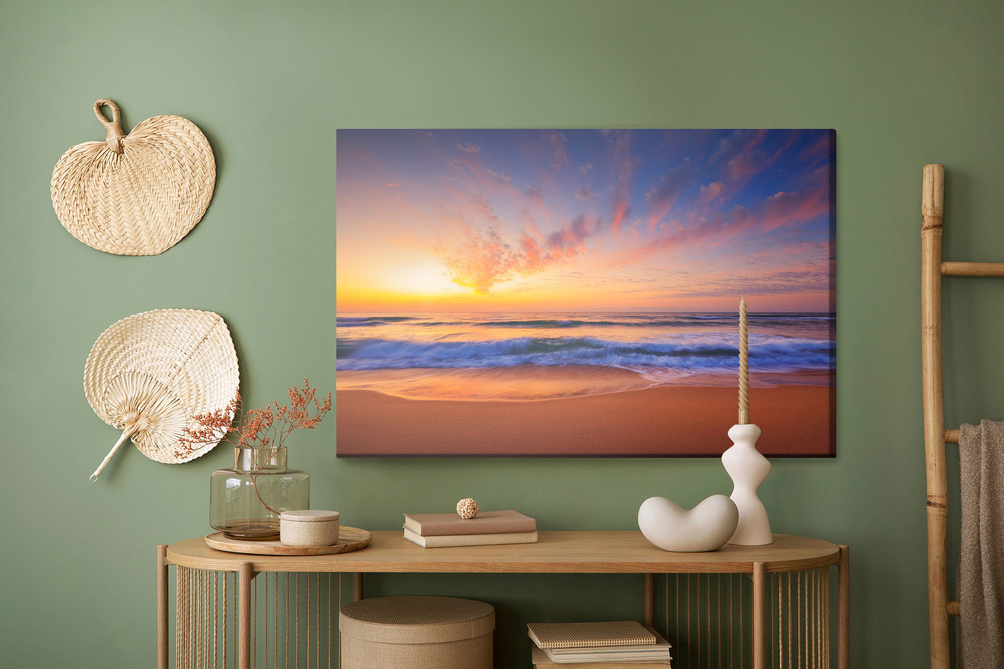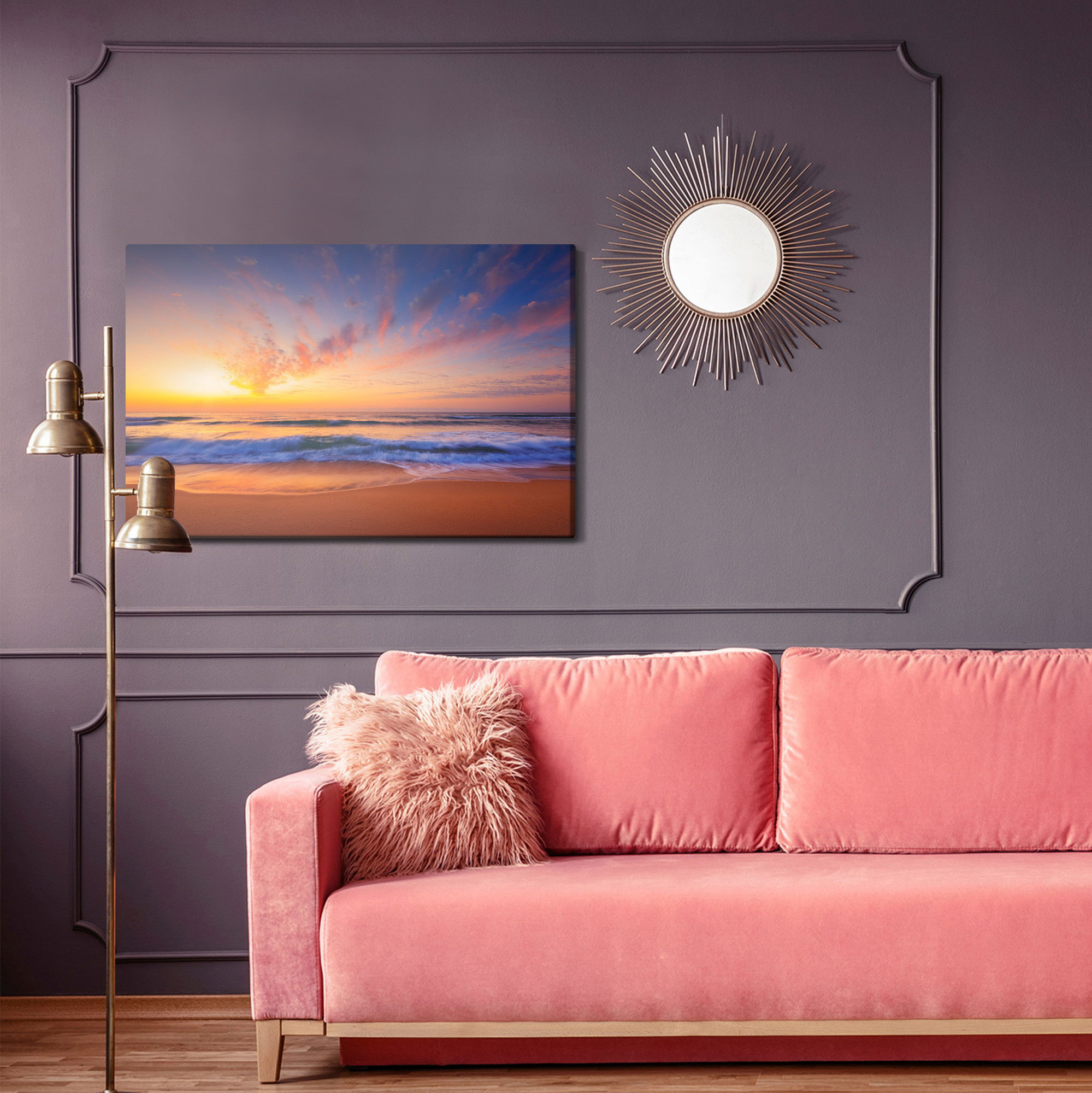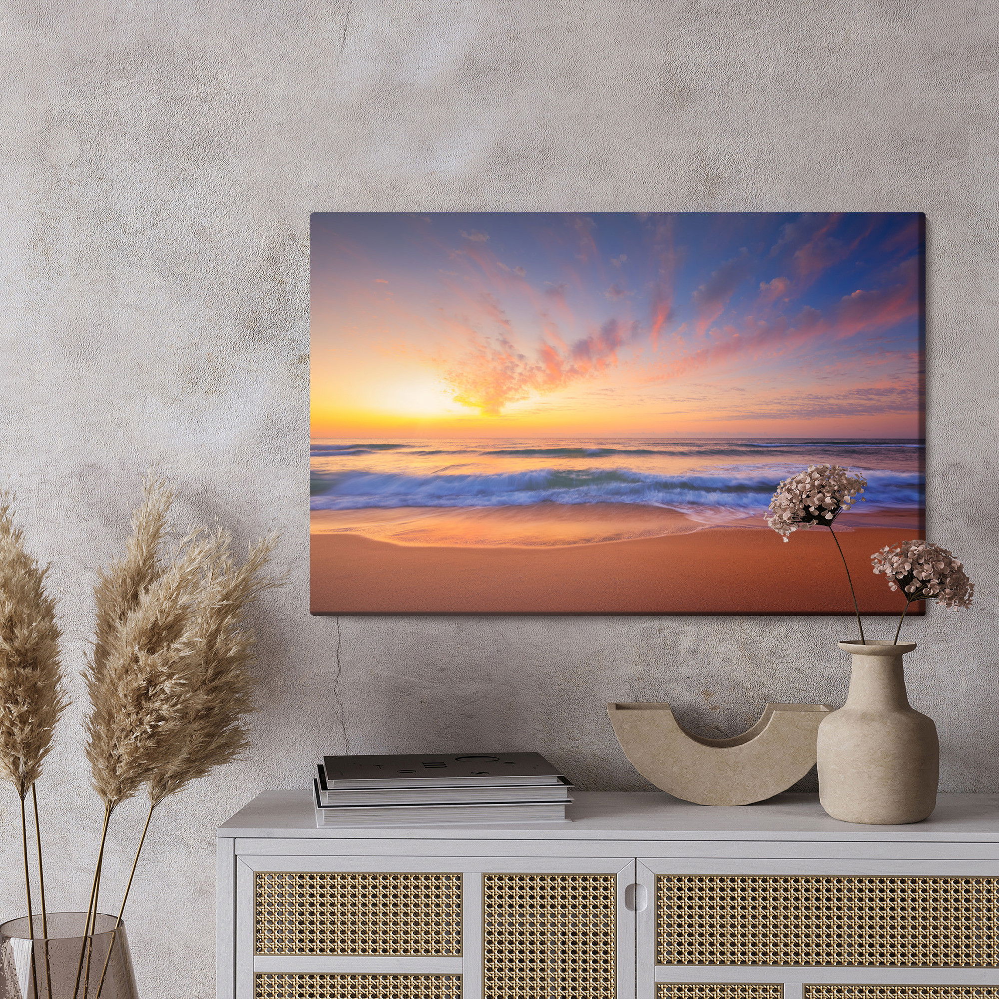 Placera tavlan där du upplever mycket eko eller hög ljudnivå, till exempel i öppna planlösningar, hemmakontor eller sociala ytor. Motiv i denna kategori gör sig särskilt bra i rum där du vill skapa en genomtänkt och sammanhängande känsla. Motiv med hav, vatten och horisonter ger rummet en lugn, djup känsla där mjuka färgskiftningar och ljusreflektioner förstärker atmosfären.