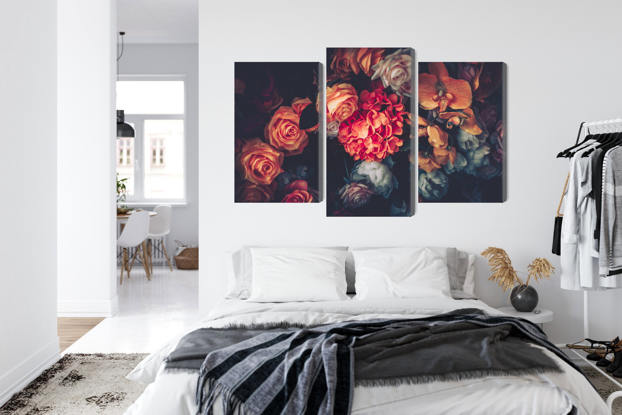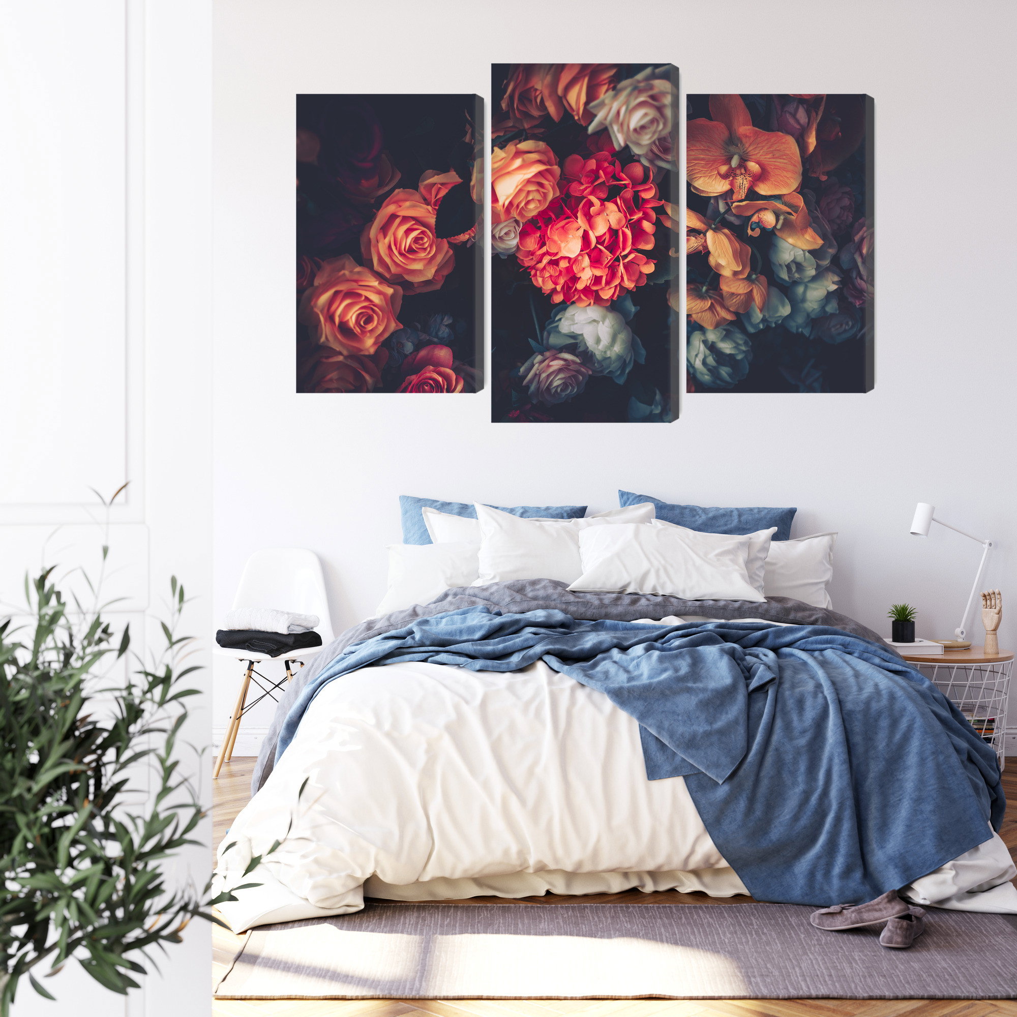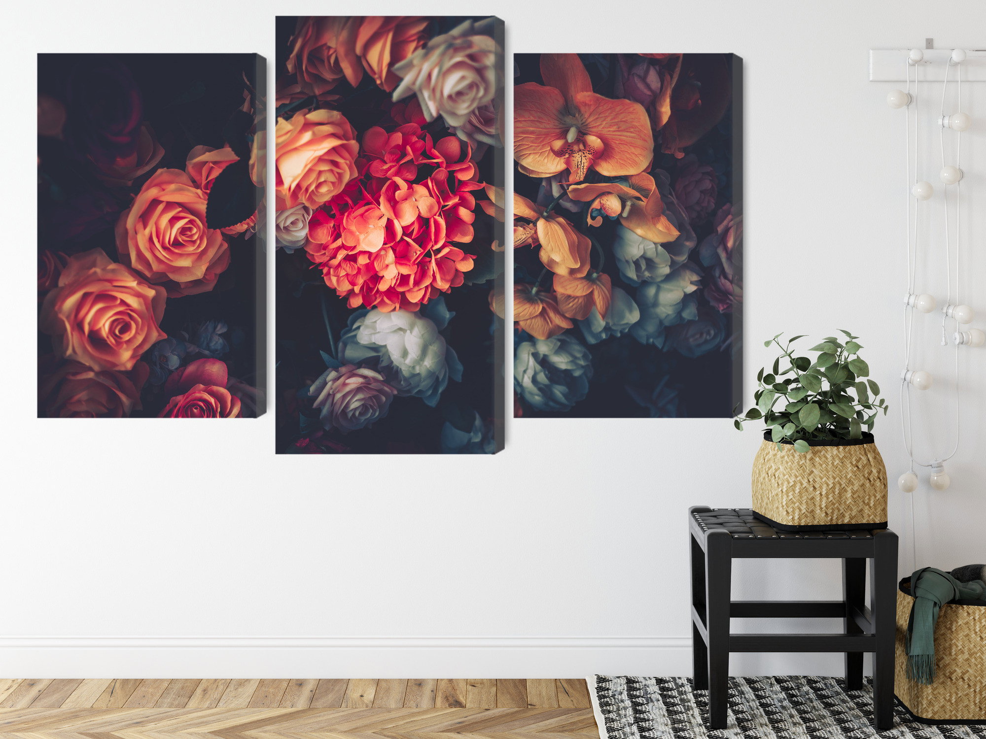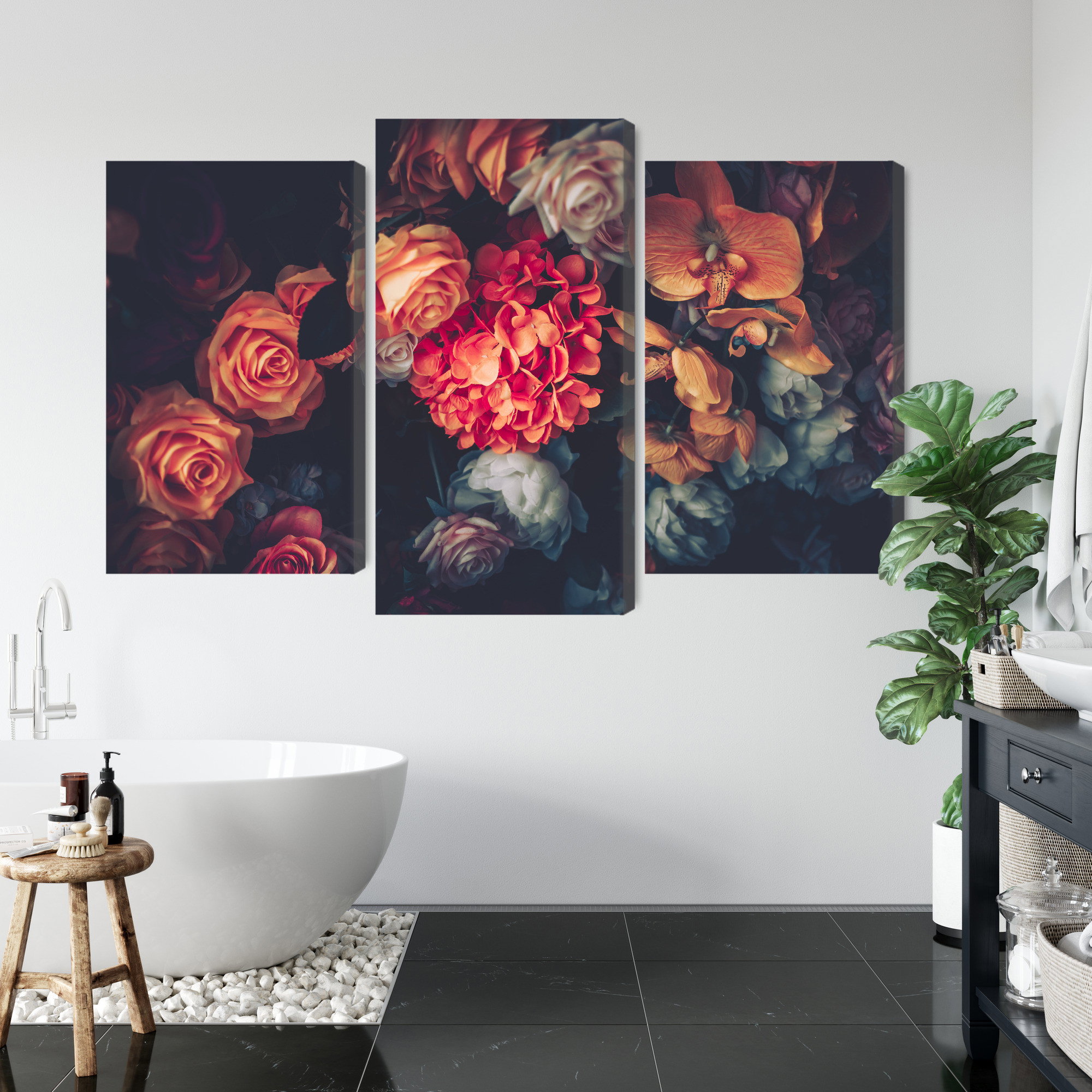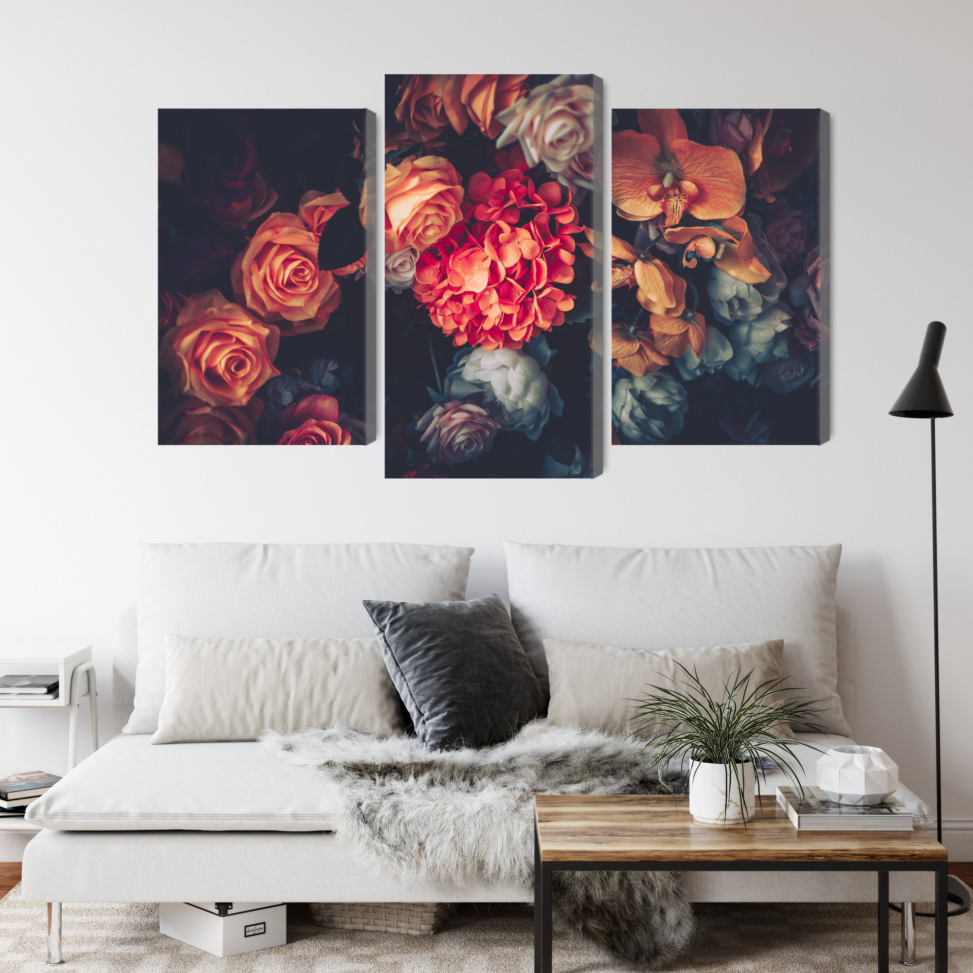 Varje tavla monteras på en massiv fururam. Format upp till 70×50 cm har en ram på 15 mm, medan format från 90×60 cm och uppåt har en ram på 20 mm. Den exakta dukspänningen gör att tavlan håller sin form över tid. Motivet Colorful flowers for vintage trycks runt hela ramen vilket ger ett stilrent galleriuttryck där tavlan är lika vacker från sidan som framifrån. Kombinationen av rak dukspänning, rena linjer och korrekt tryck ger en professionell finish.