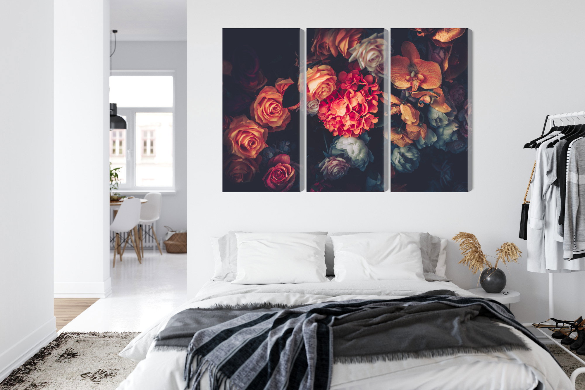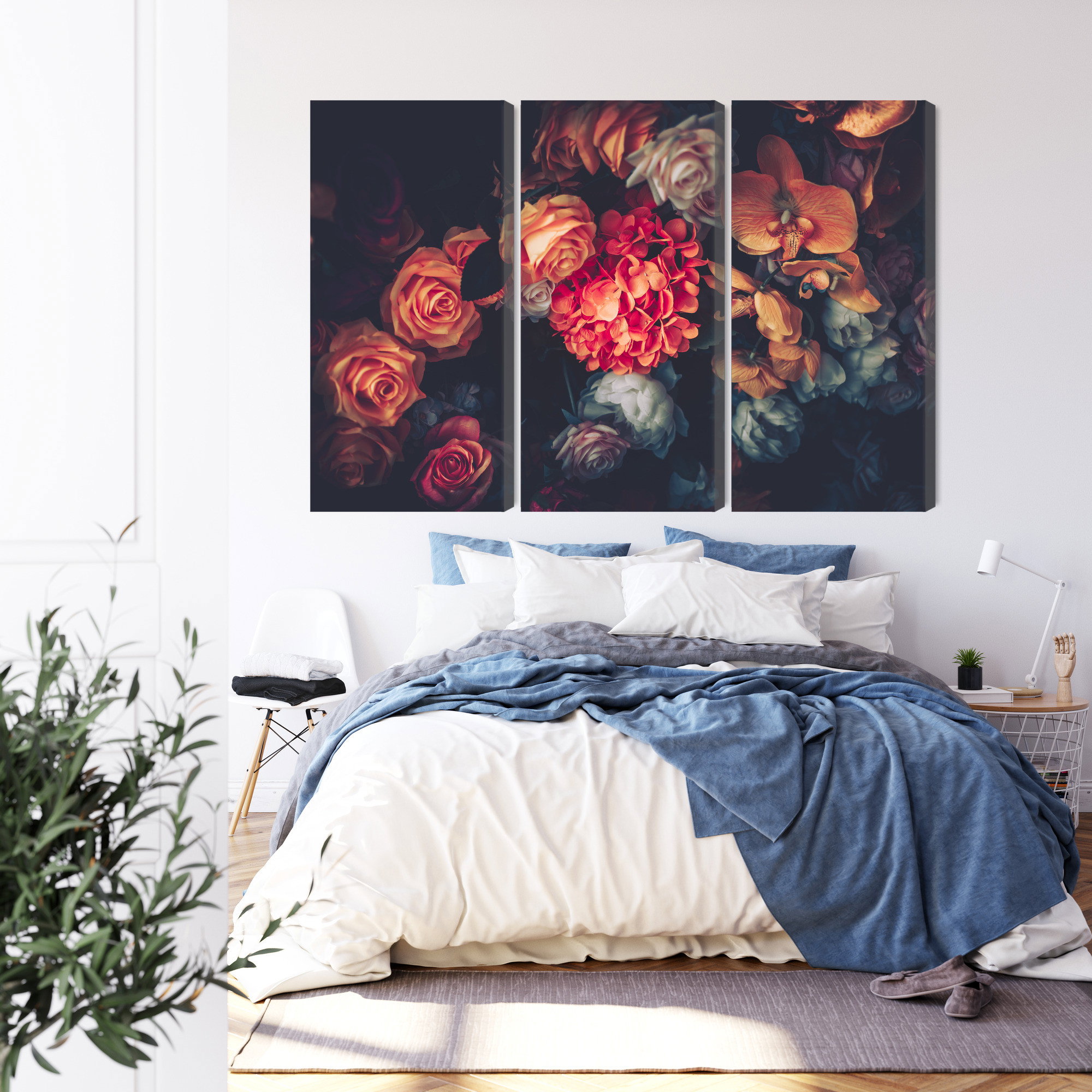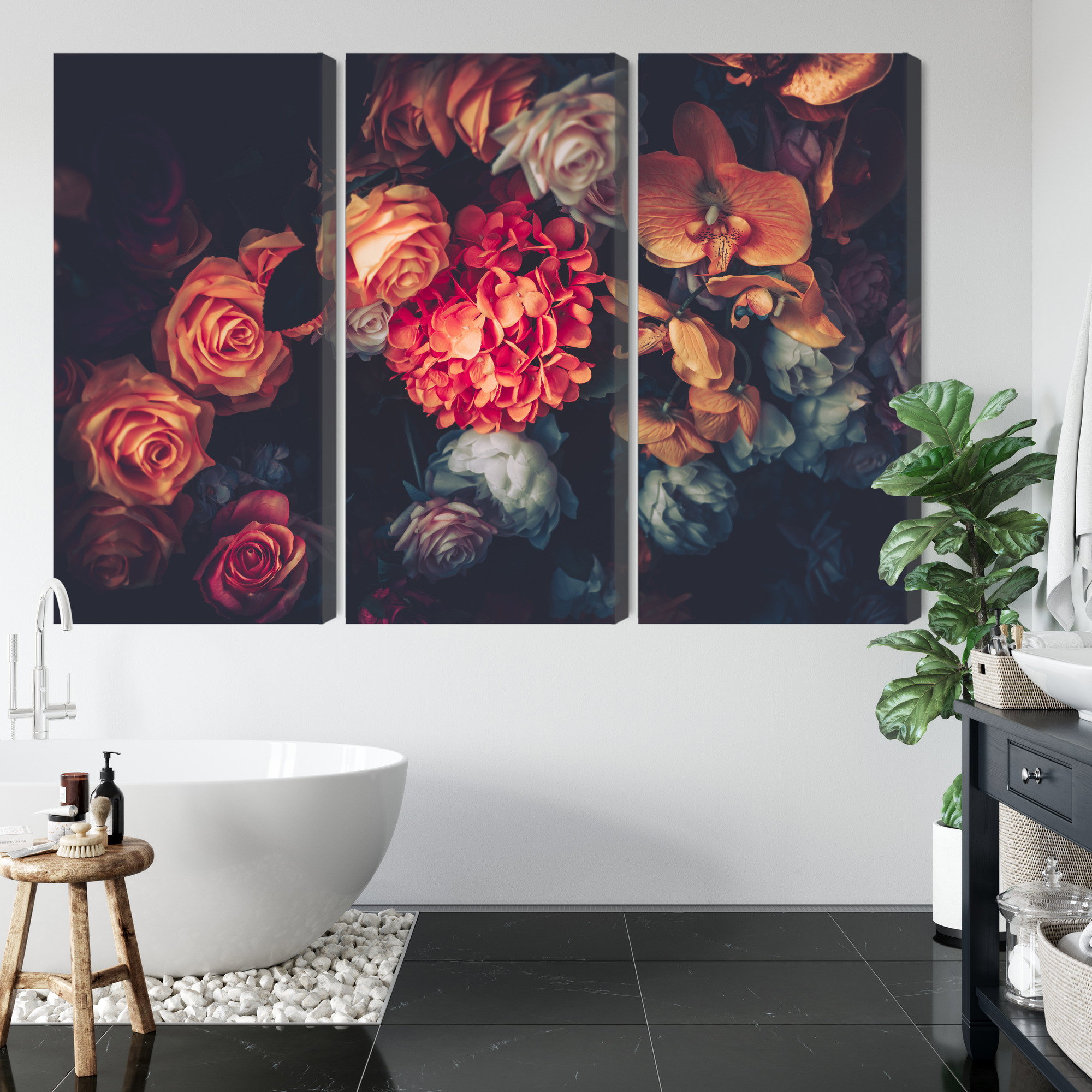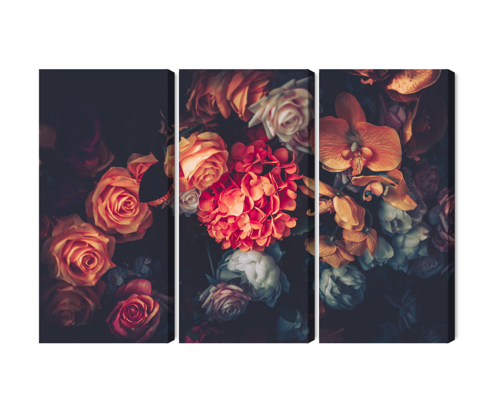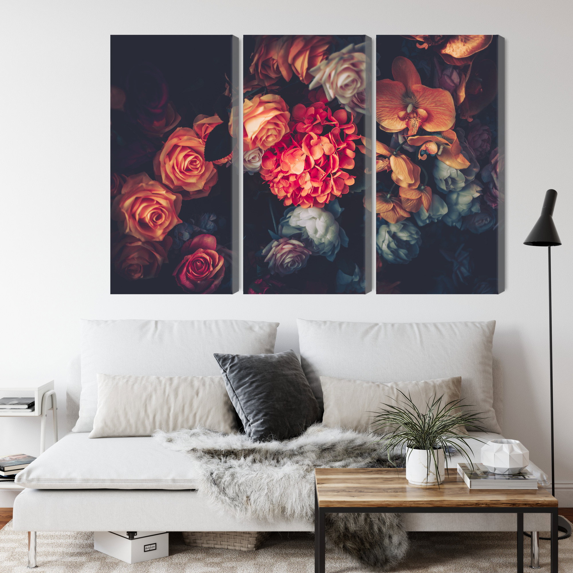 Varje tavla monteras på en massiv fururam. Format upp till 70×50 cm har en ram på 15 mm, medan format från 90×60 cm och uppåt har en ram på 20 mm. Den exakta dukspänningen gör att tavlan håller sin form över tid. Motivet Colorful flowers for vintage trycks runt hela ramen vilket ger ett stilrent galleriuttryck där tavlan är lika vacker från sidan som framifrån. Kombinationen av rak dukspänning, rena linjer och korrekt tryck ger en professionell finish.