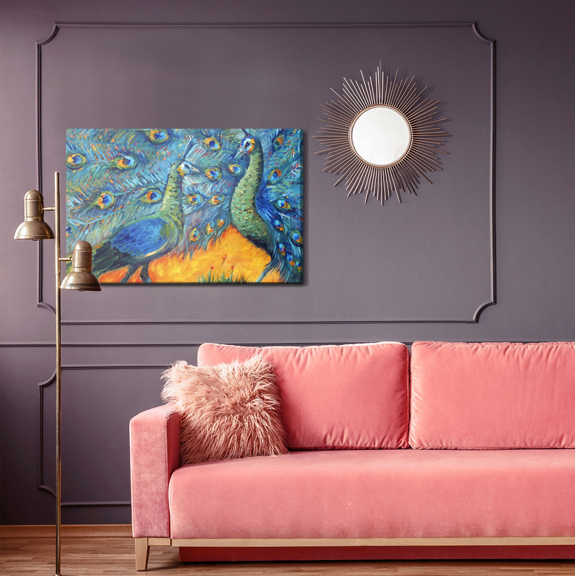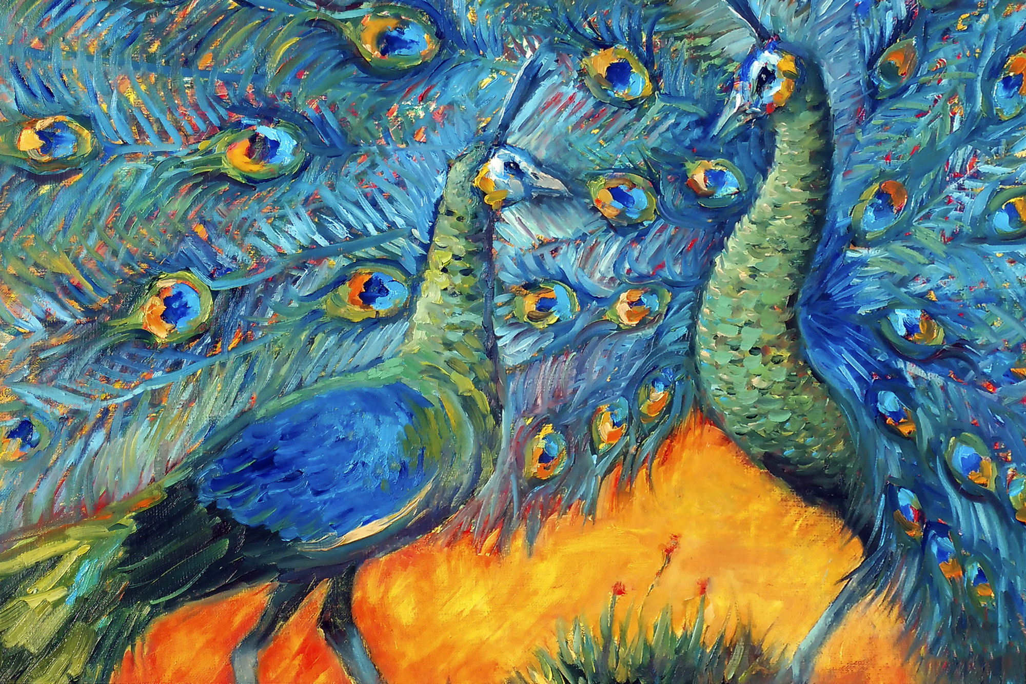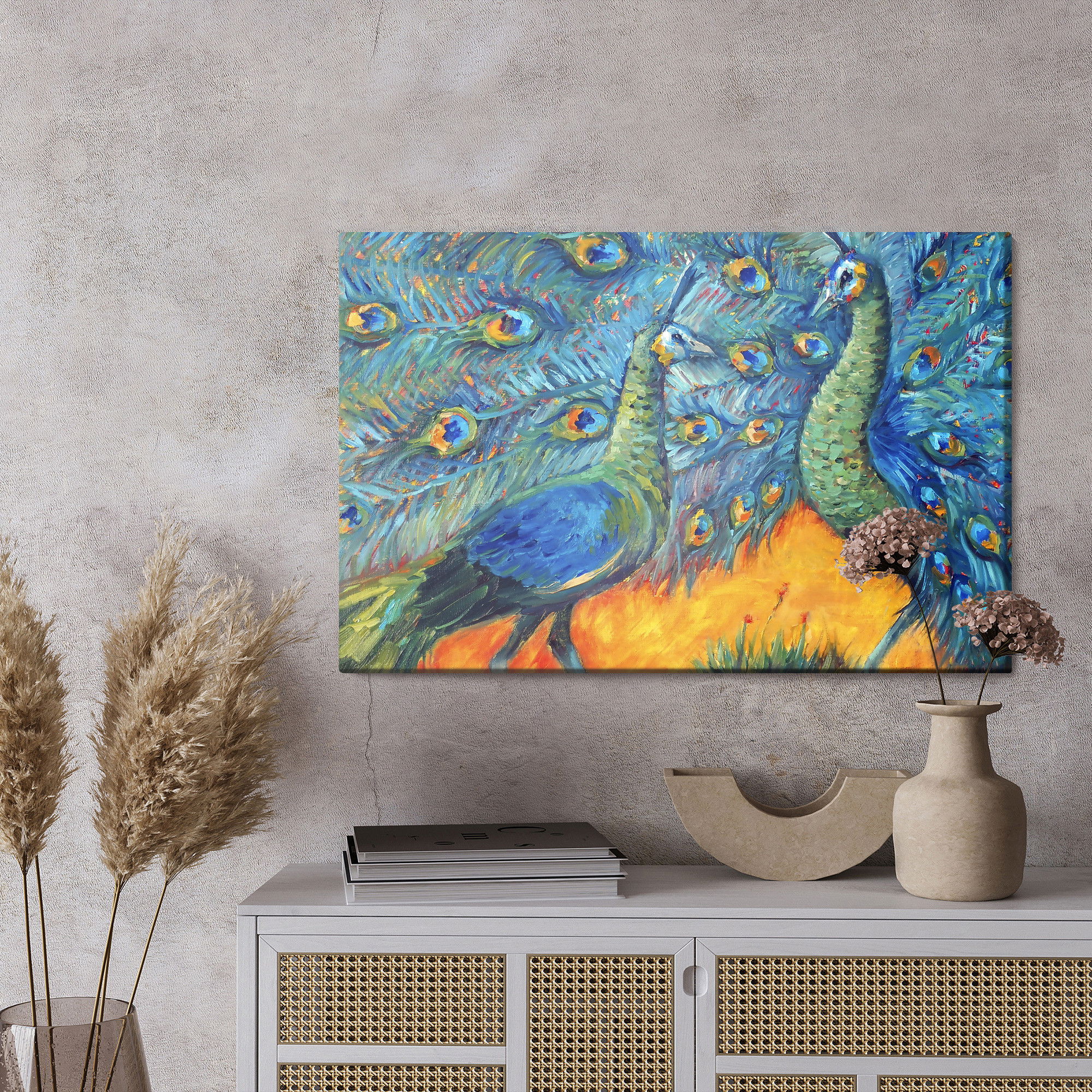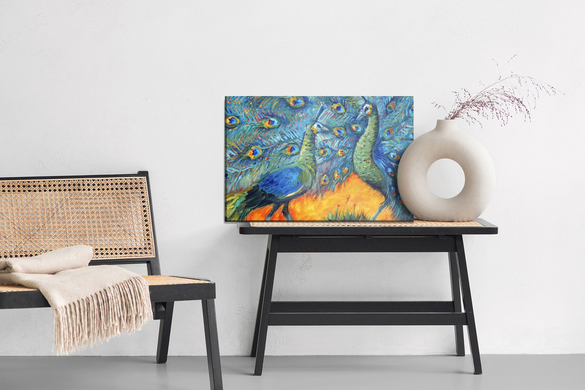 Ljuddämpande tavla – Colorful peacocks för lugnare rum och mjukare akustik