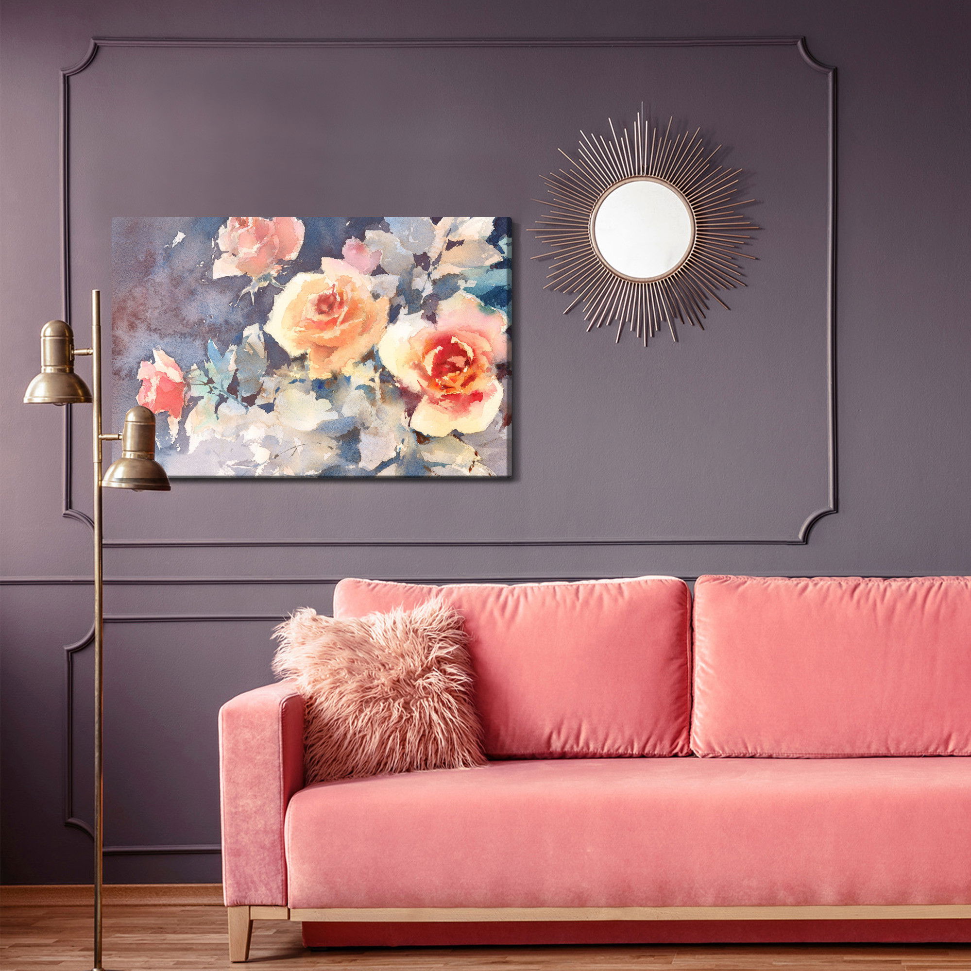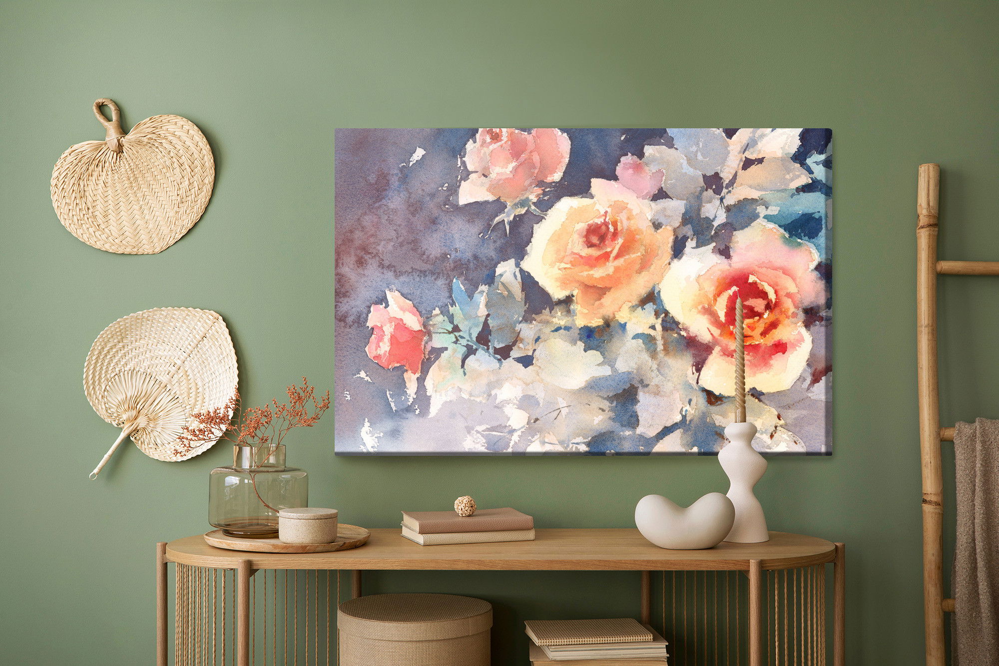 Ljuddämpande tavla – Colorful roses like painted för lugnare rum och mjukare akustik