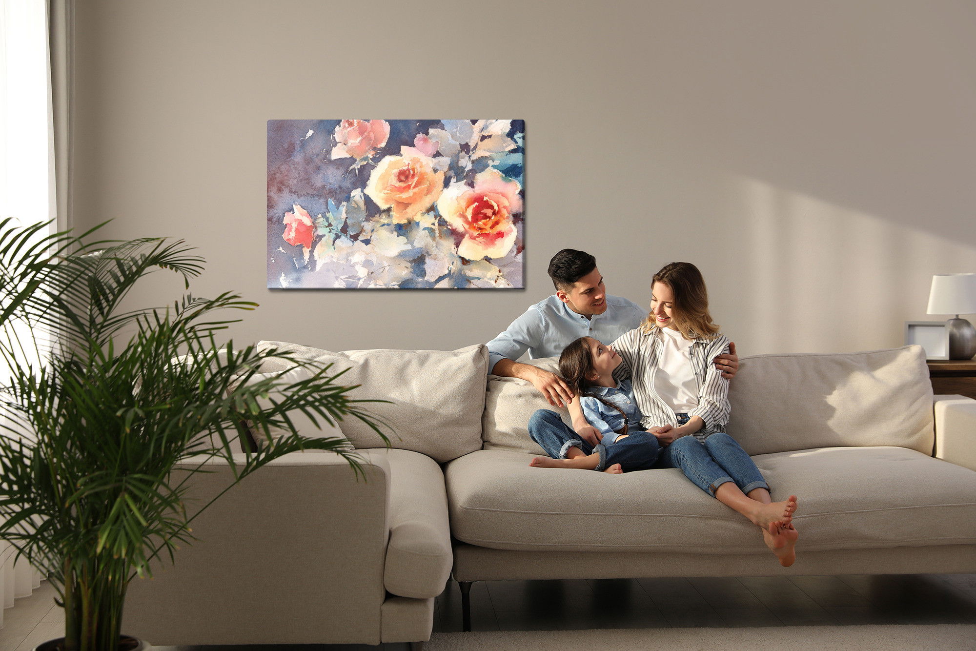 Motivet Colorful roses like painted återges med hög färgprecision och detaljrikedom tack vare HP Latex-teknologi. Trycket sker med vattenbaserade, luktfria och GREENGUARD Gold-certifierade bläck som ger en upplösning på upp till 300 DPI. Färgerna är UV-beständiga och behåller sin styrka även i ljusa rum, vilket gör tavlan lämplig för både hem- och offentliga miljöer.