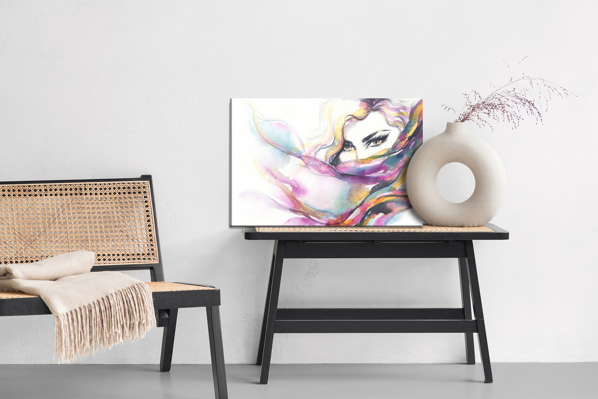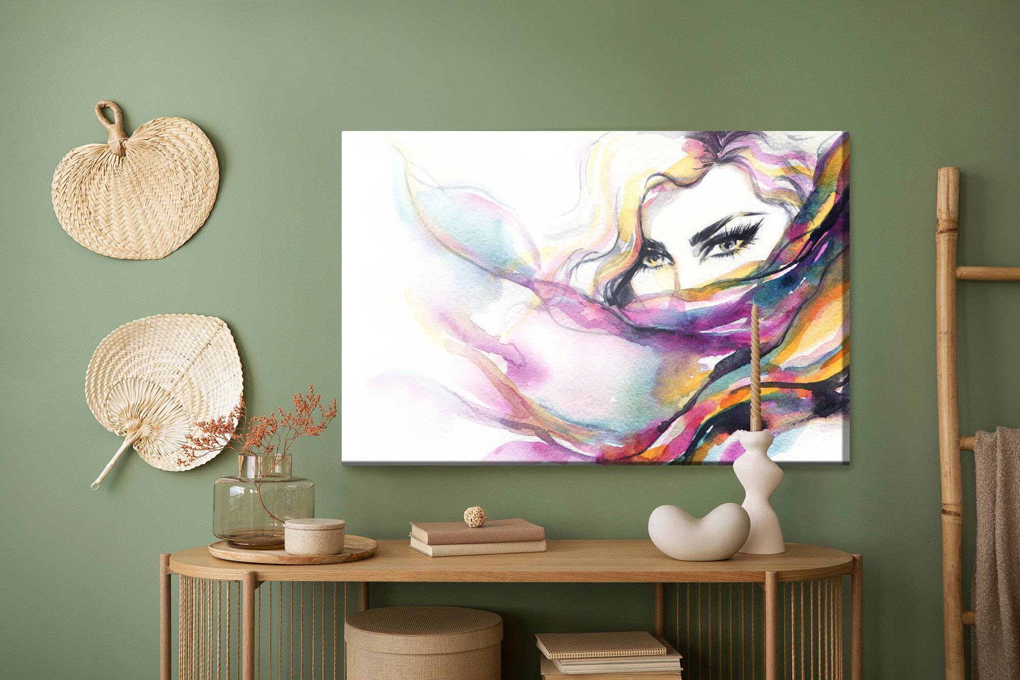 Ljuddämpande tavla – Colorful watercolor portrait för lugnare rum och mjukare akustik