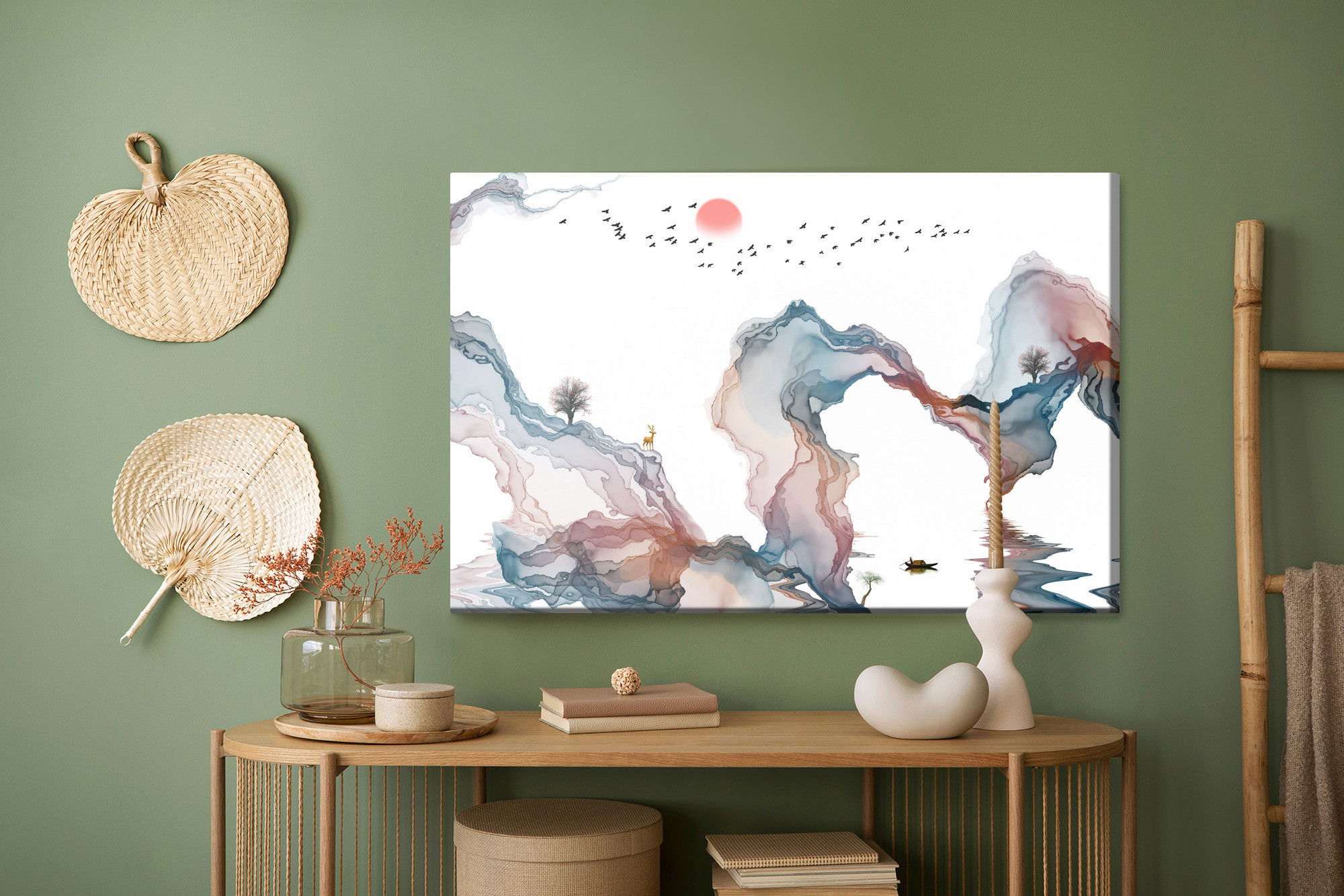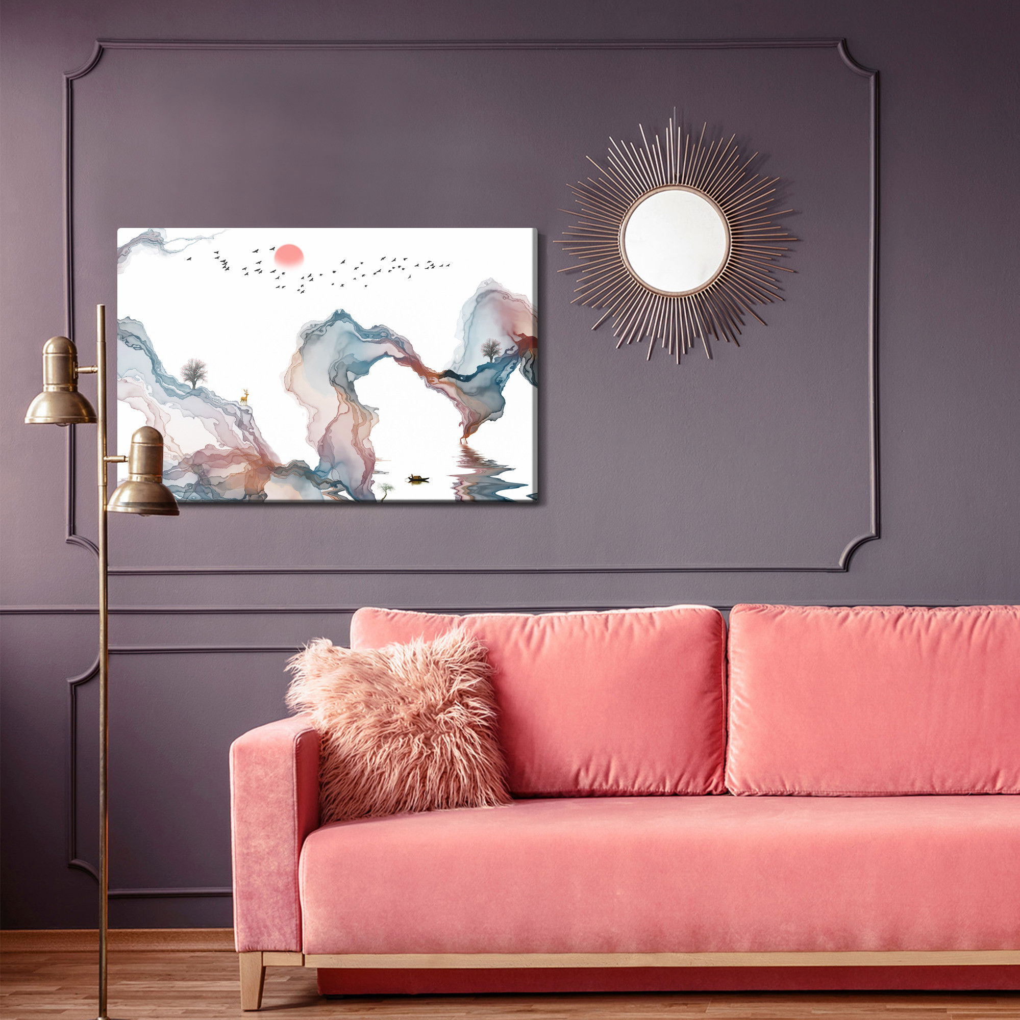 Den akustiskt verksamma konstruktionen hjälper till att minska hårda ekon och skapa en mjukare helhetskänsla i rummet. Den balanserade absorptionen gör att ljudet upplevs mjukare och att rummets akustik förbättras i såväl vardagsrum och kontor som i sovrum och offentliga miljöer. Samtidigt förstärker den högkvalitativa trycktekniken motivets ljus, färger och detaljer, vilket ger en harmonisk känsla i rummet.
