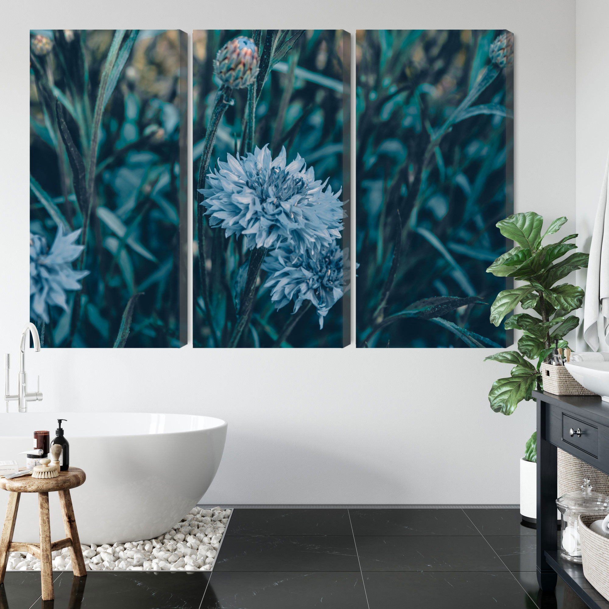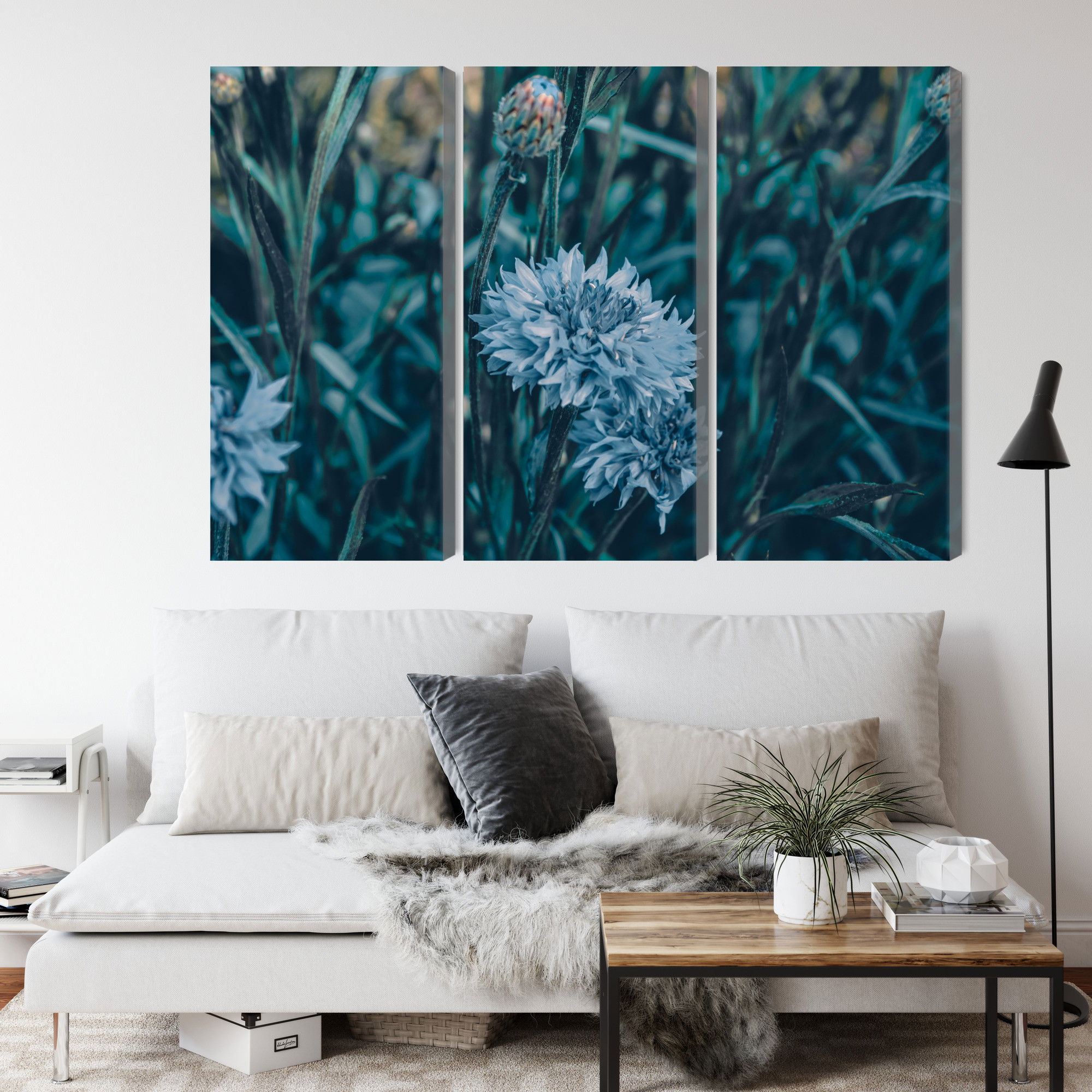 Varje tavla monteras på en massiv fururam. Format upp till 70×50 cm har en ram på 15 mm, medan format från 90×60 cm och uppåt har en ram på 20 mm. Den exakta dukspänningen gör att tavlan håller sin form över tid. Motivet Cornflowers in the meadow 3d trycks runt hela ramen vilket ger ett stilrent galleriuttryck där tavlan är lika vacker från sidan som framifrån. Kombinationen av rak dukspänning, rena linjer och korrekt tryck ger en professionell finish.