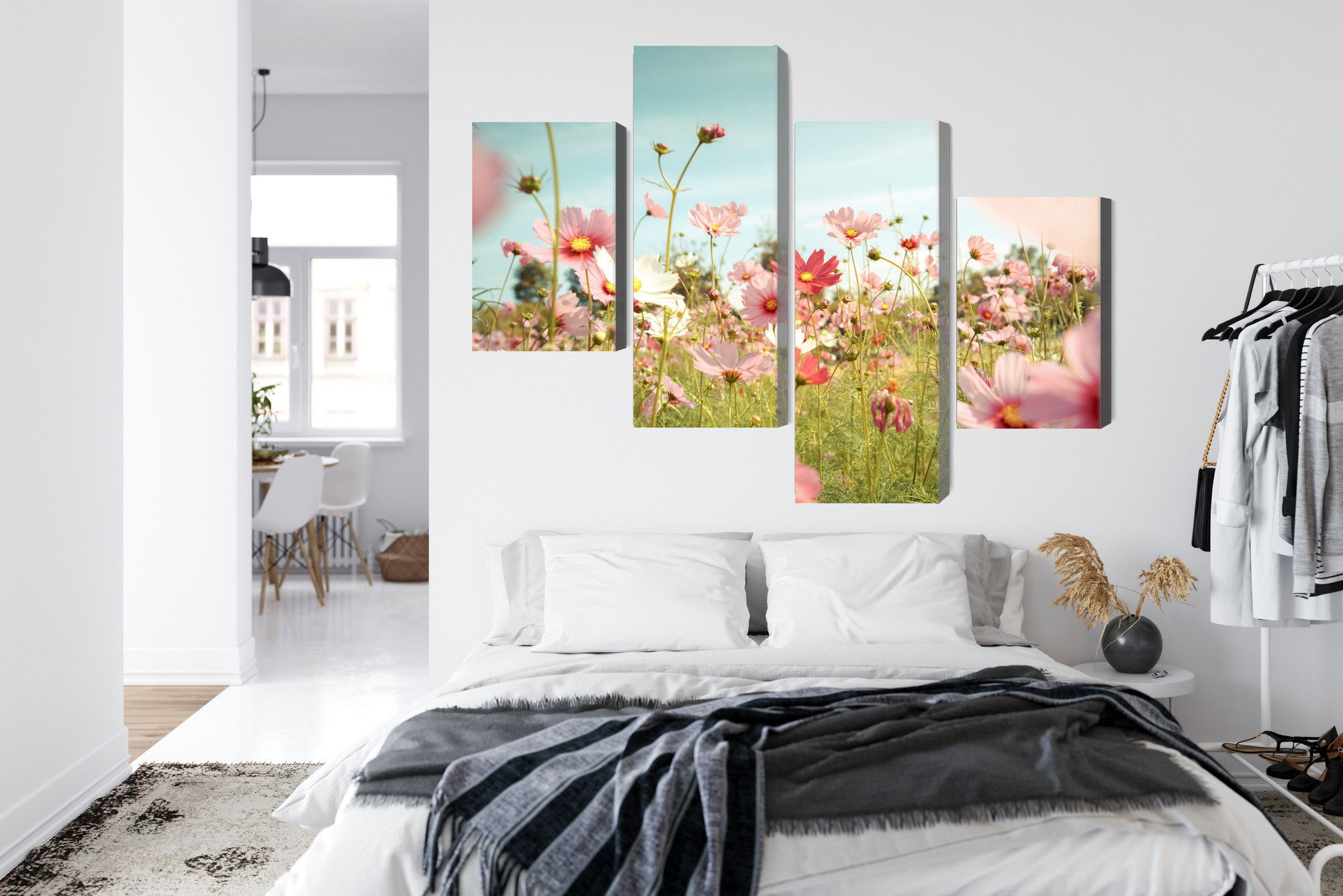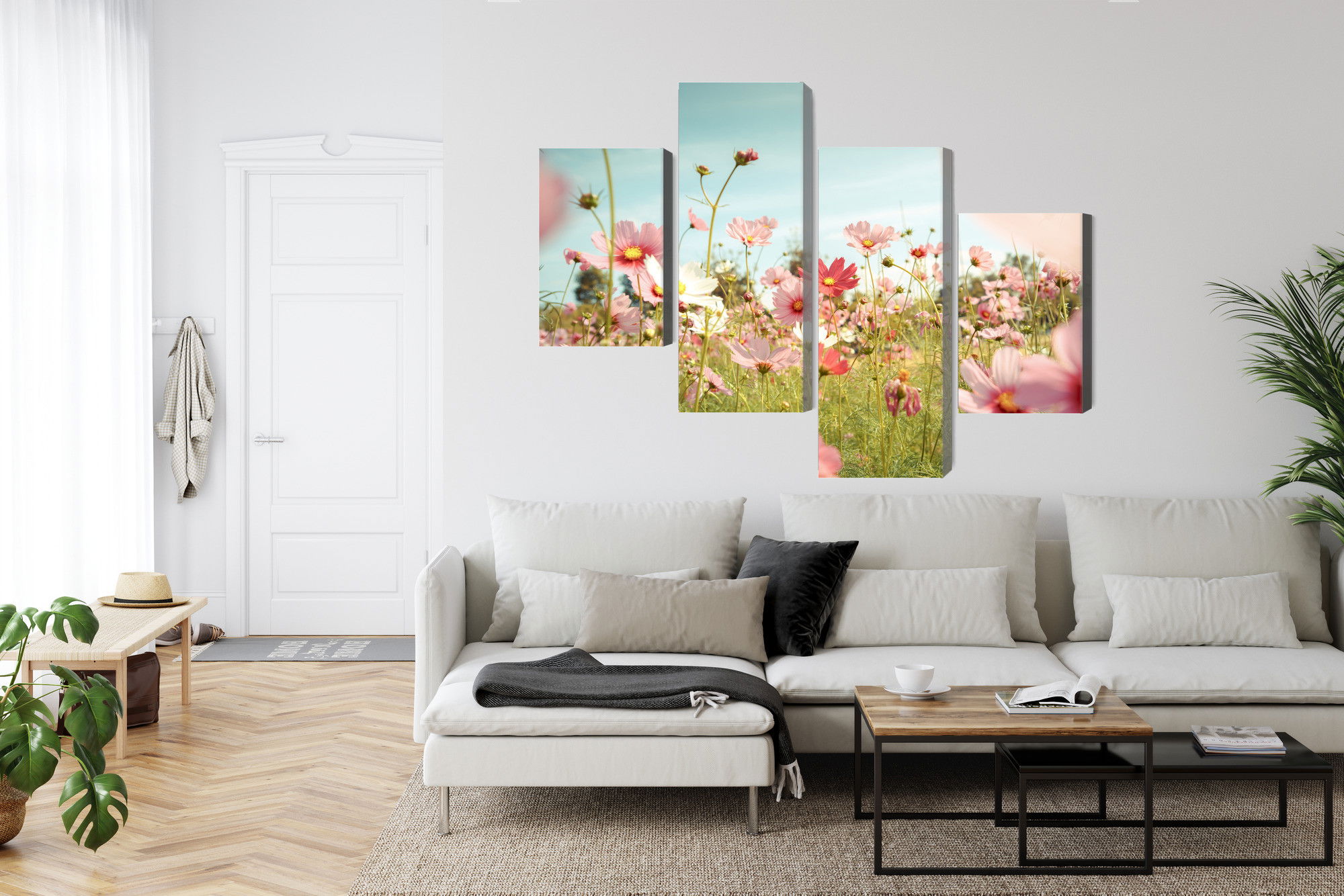Varje tavla monteras på en massiv fururam. Format upp till 70×50 cm har en ram på 15 mm, medan format från 90×60 cm och uppåt har en ram på 20 mm. Den exakta dukspänningen gör att tavlan håller sin form över tid. Motivet Cosmos flowers in the garden trycks runt hela ramen vilket ger ett stilrent galleriuttryck där tavlan är lika vacker från sidan som framifrån. Kombinationen av rak dukspänning, rena linjer och korrekt tryck ger en professionell finish.