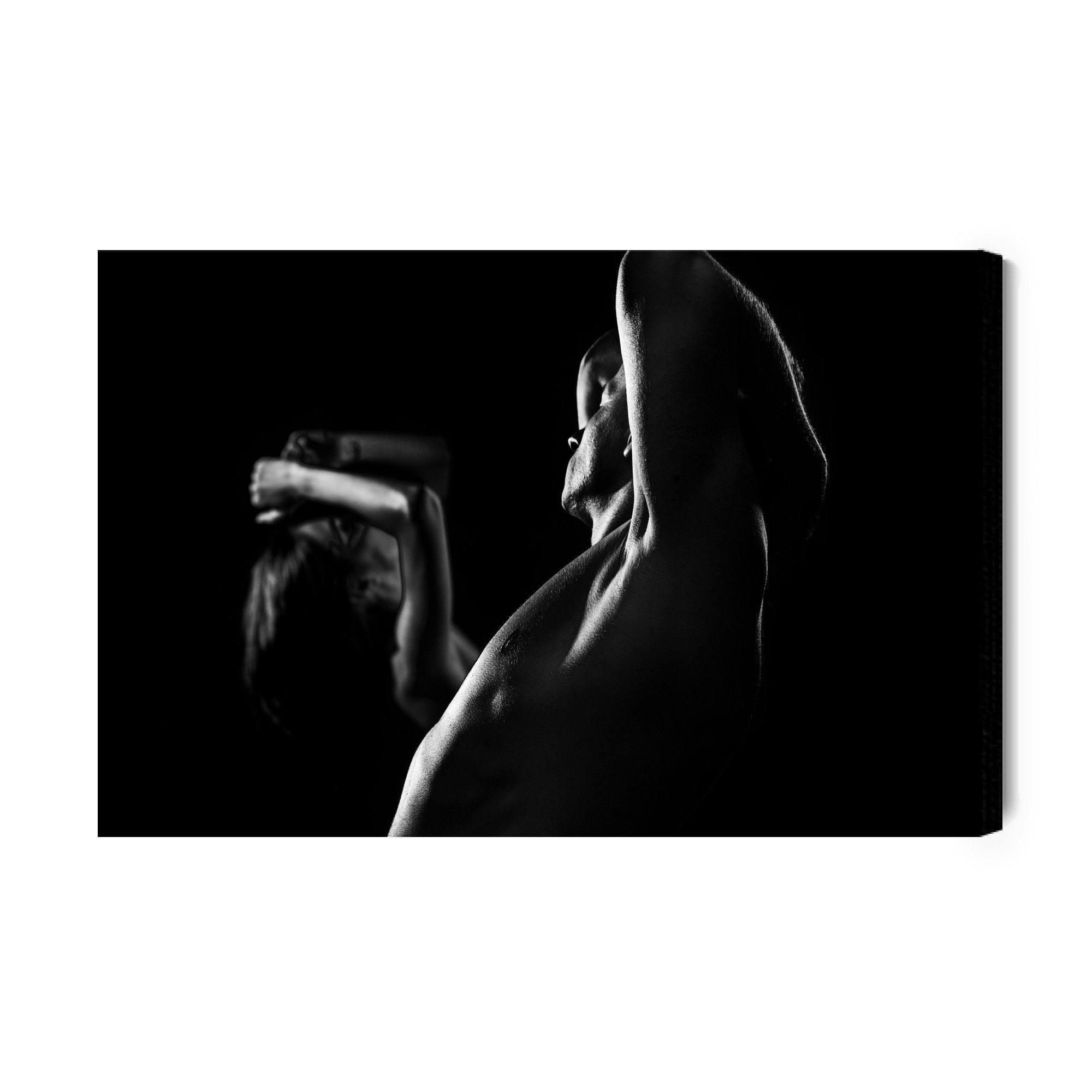 Motivet Couple working out återges med hög färgprecision och detaljrikedom tack vare HP Latex-teknologi. Trycket sker med vattenbaserade, luktfria och GREENGUARD Gold-certifierade bläck som ger en upplösning på upp till 300 DPI. Färgerna är UV-beständiga och behåller sin styrka även i ljusa rum, vilket gör tavlan lämplig för både hem- och offentliga miljöer.