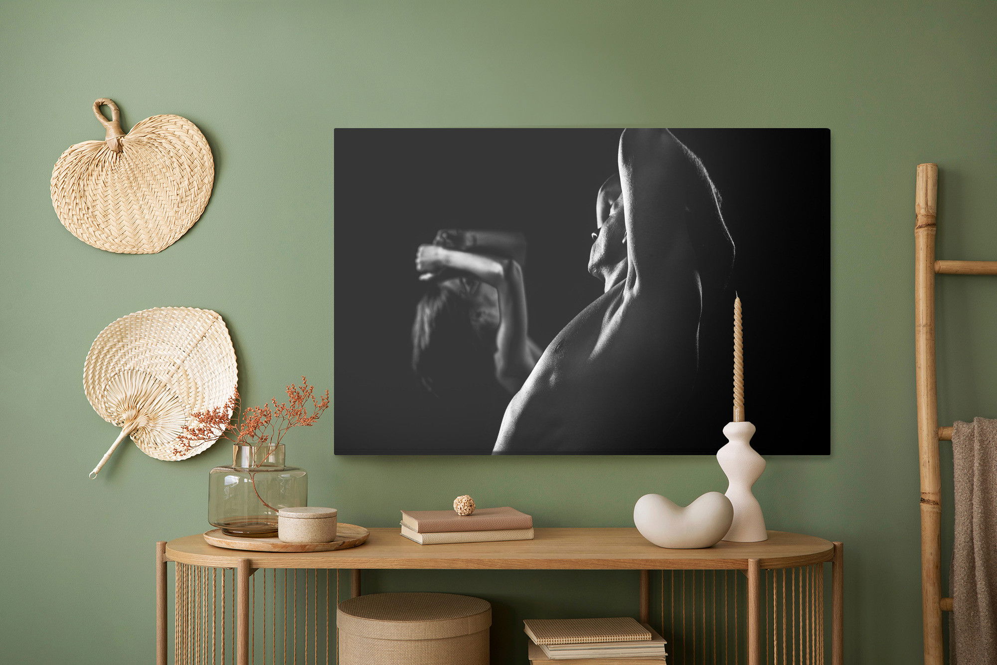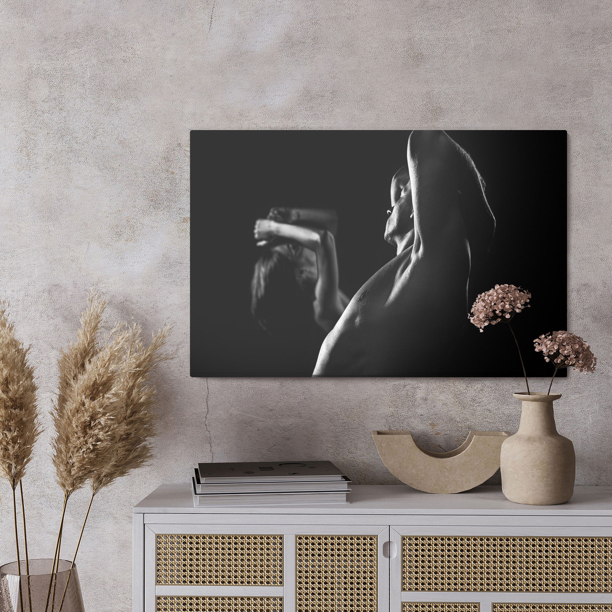 Varje tavla monteras på en massiv fururam. Format upp till 70×50 cm har en ram på 15 mm, medan format från 90×60 cm och uppåt har en ram på 20 mm. Den exakta dukspänningen gör att tavlan håller sin form över tid. Motivet trycks runt hela ramen vilket ger ett stilrent galleriuttryck där tavlan är lika vacker från sidan som framifrån. Kombinationen av rak dukspänning, rena linjer och korrekt tryck ger en professionell finish.