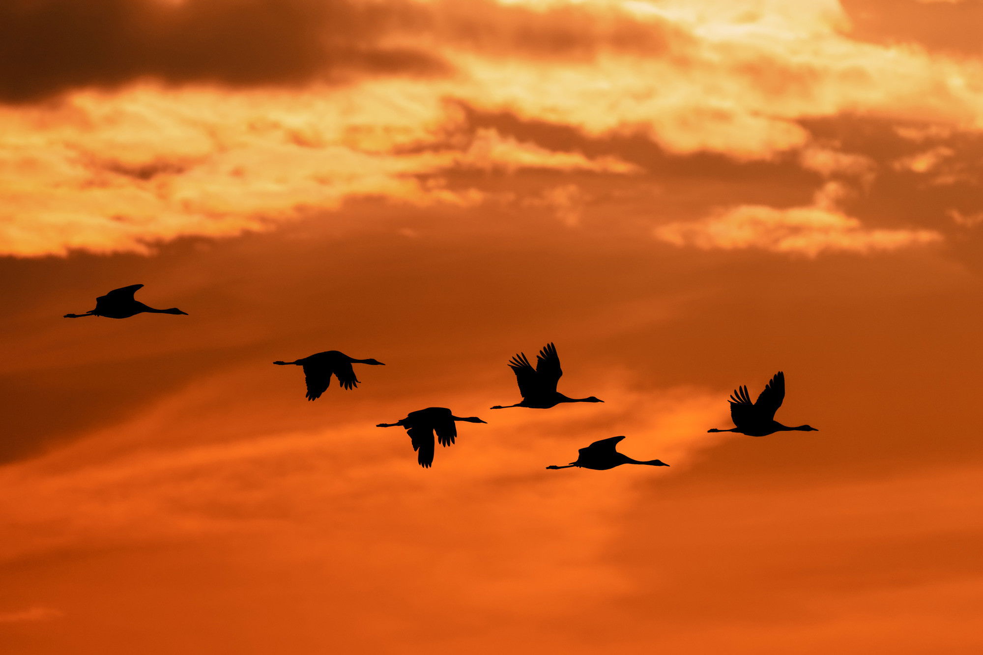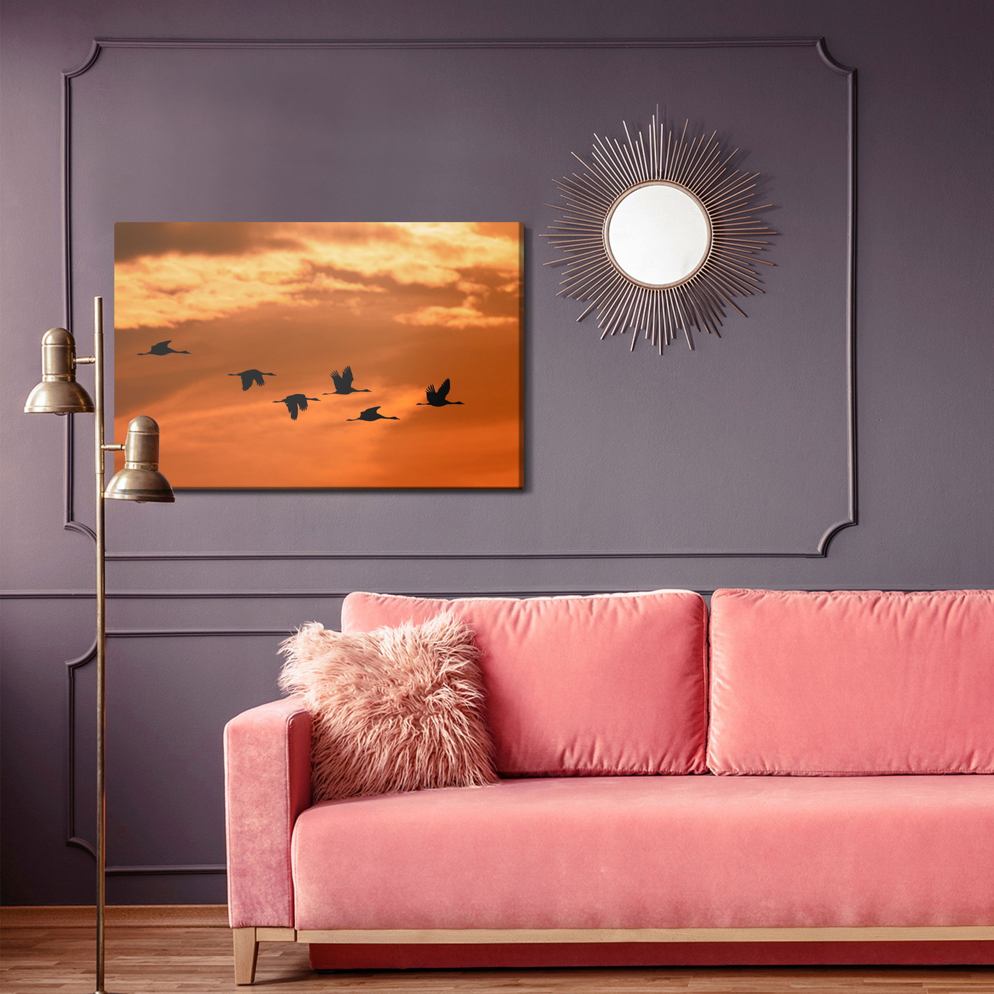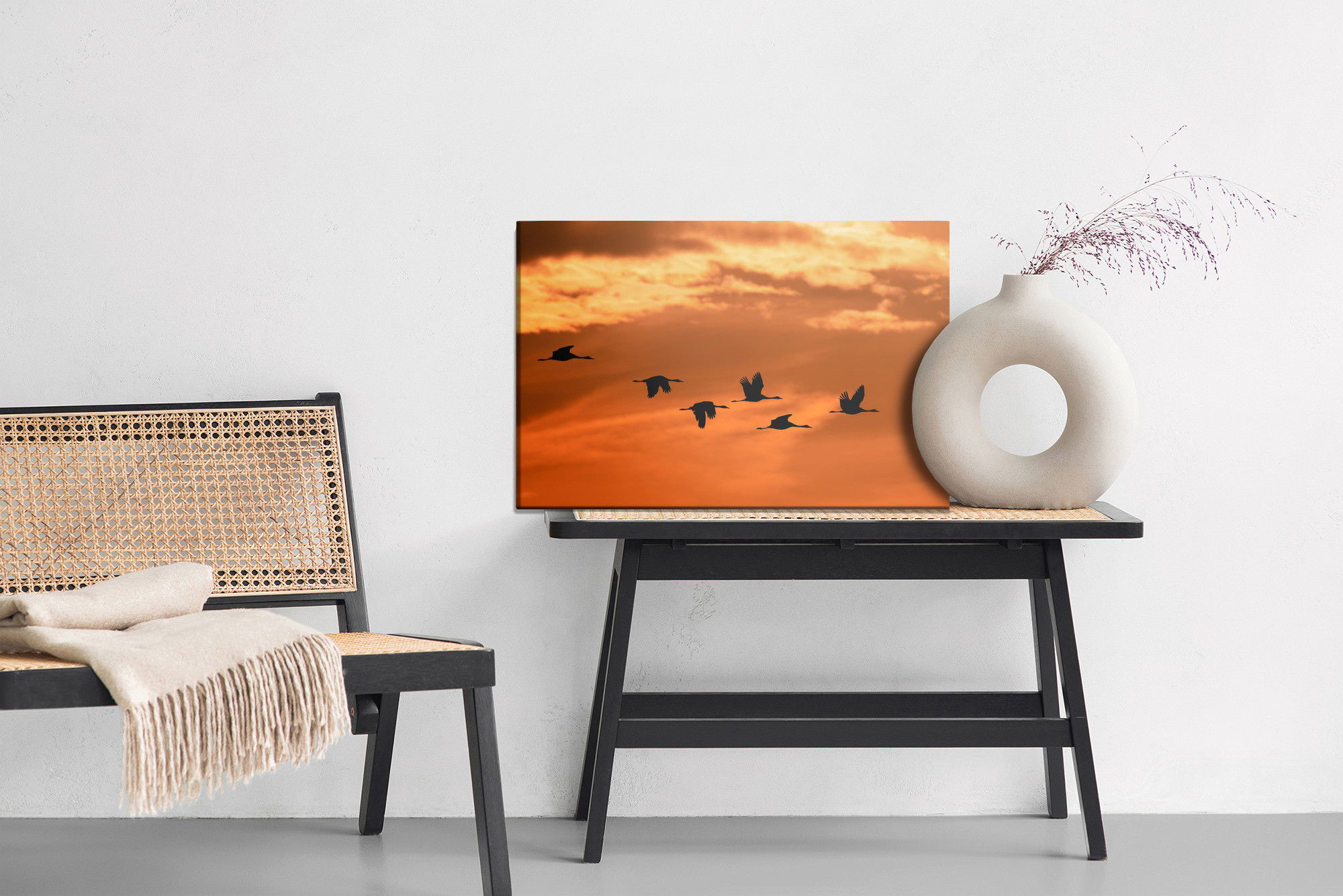 Ljuddämpande tavla – Cranes at dawn för lugnare rum och mjukare akustik