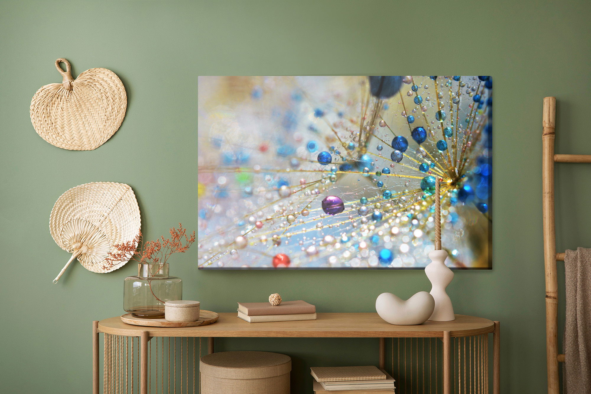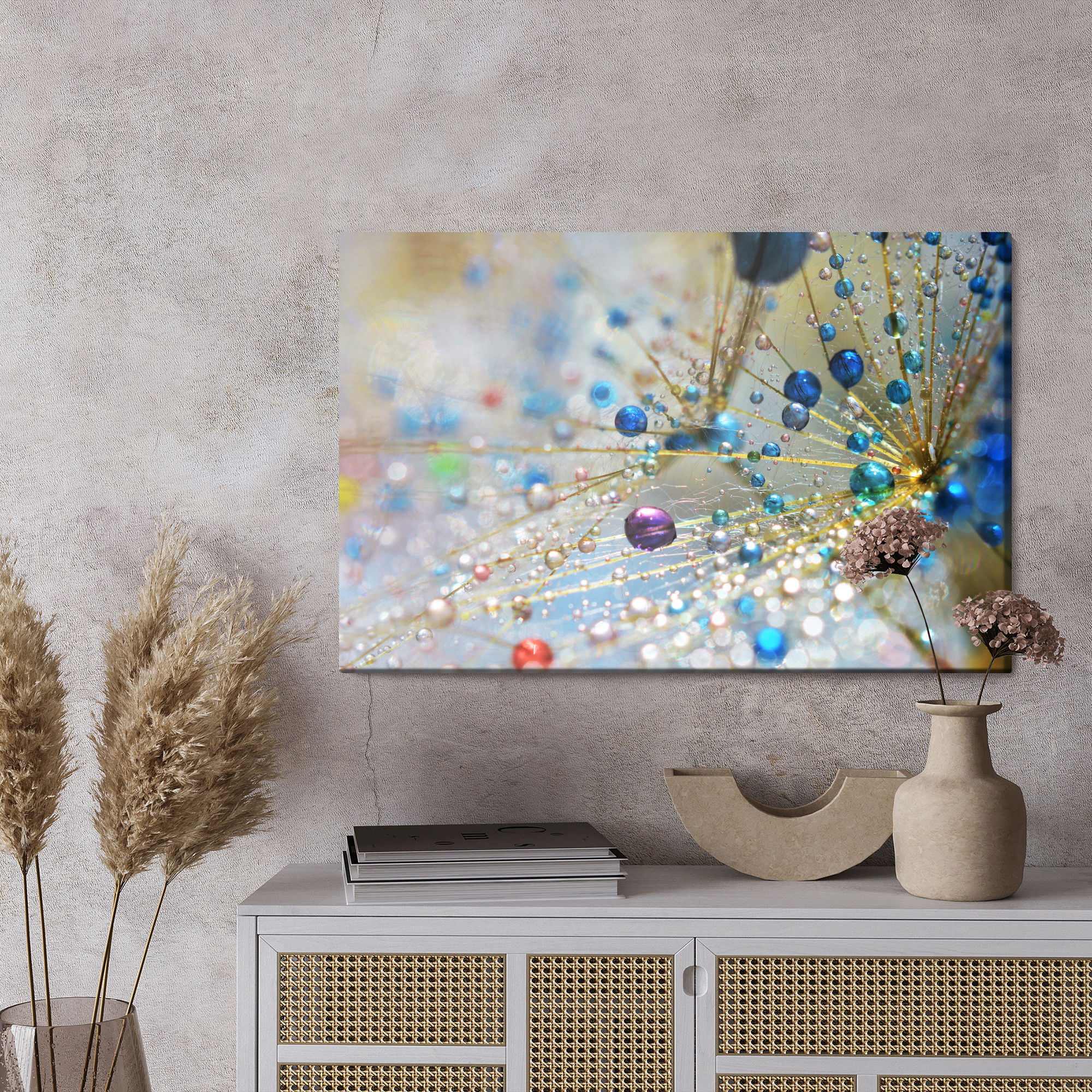 Ljuddämpande tavla – Dandelion, colorful drops för lugnare rum och mjukare akustik
