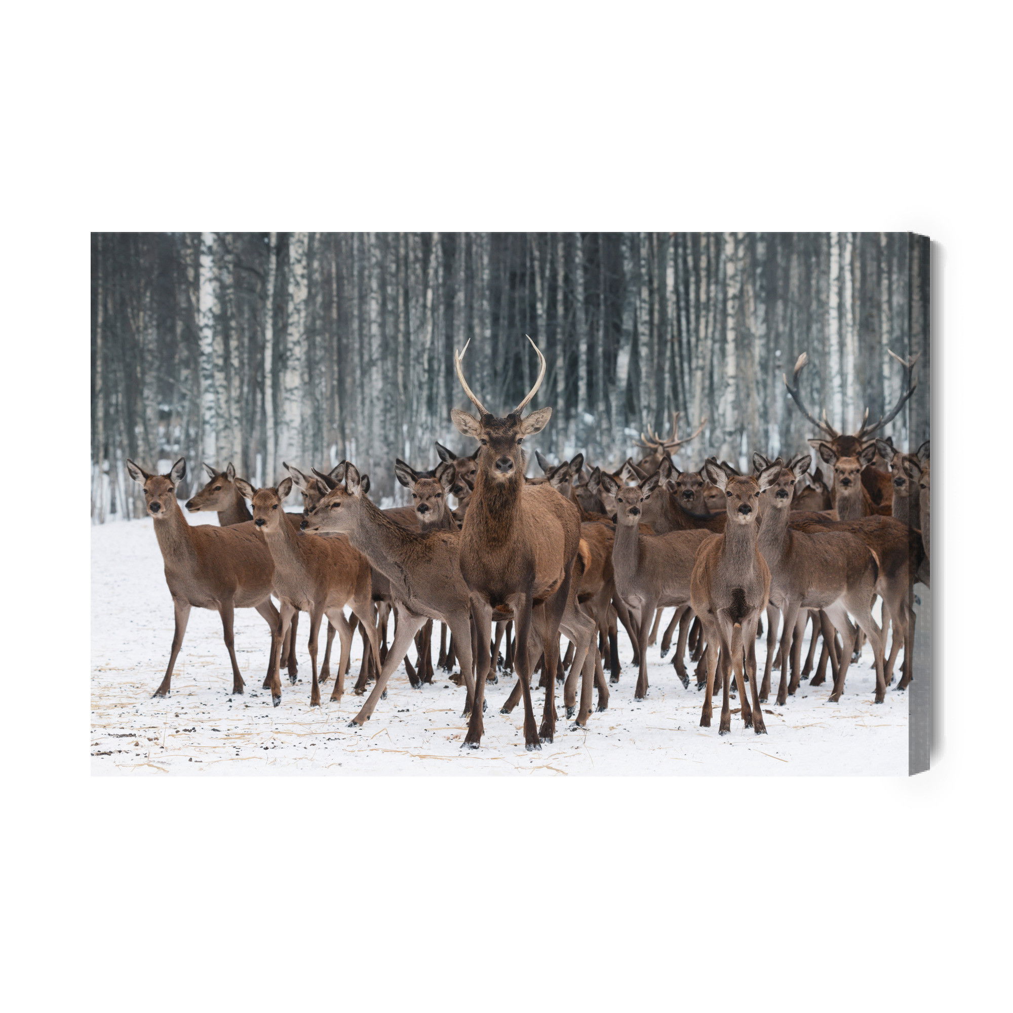Motivet Deer among the hinds återges med hög färgprecision och detaljrikedom tack vare HP Latex-teknologi. Trycket sker med vattenbaserade, luktfria och GREENGUARD Gold-certifierade bläck som ger en upplösning på upp till 300 DPI. Färgerna är UV-beständiga och behåller sin styrka även i ljusa rum, vilket gör tavlan lämplig för både hem- och offentliga miljöer.