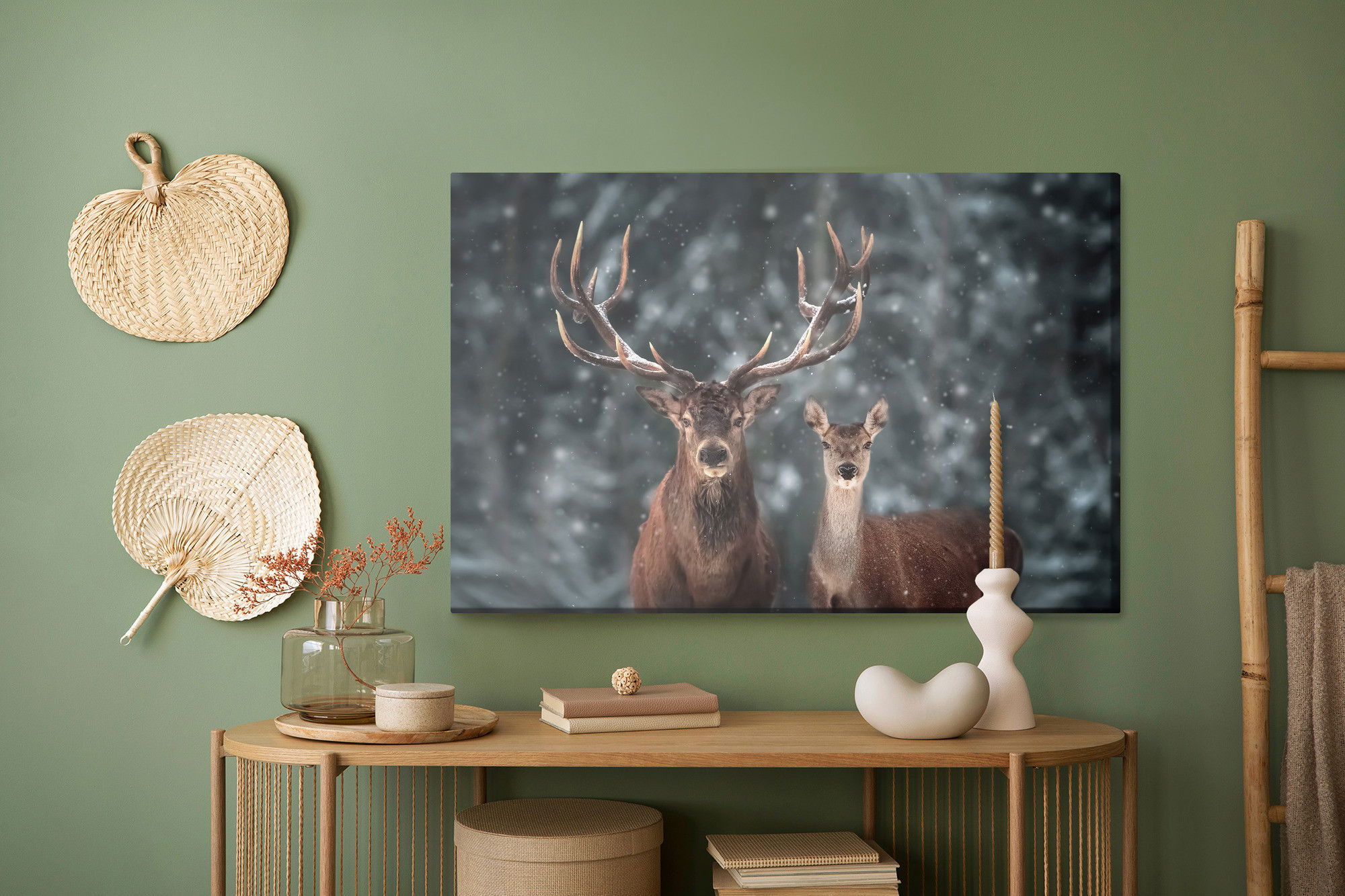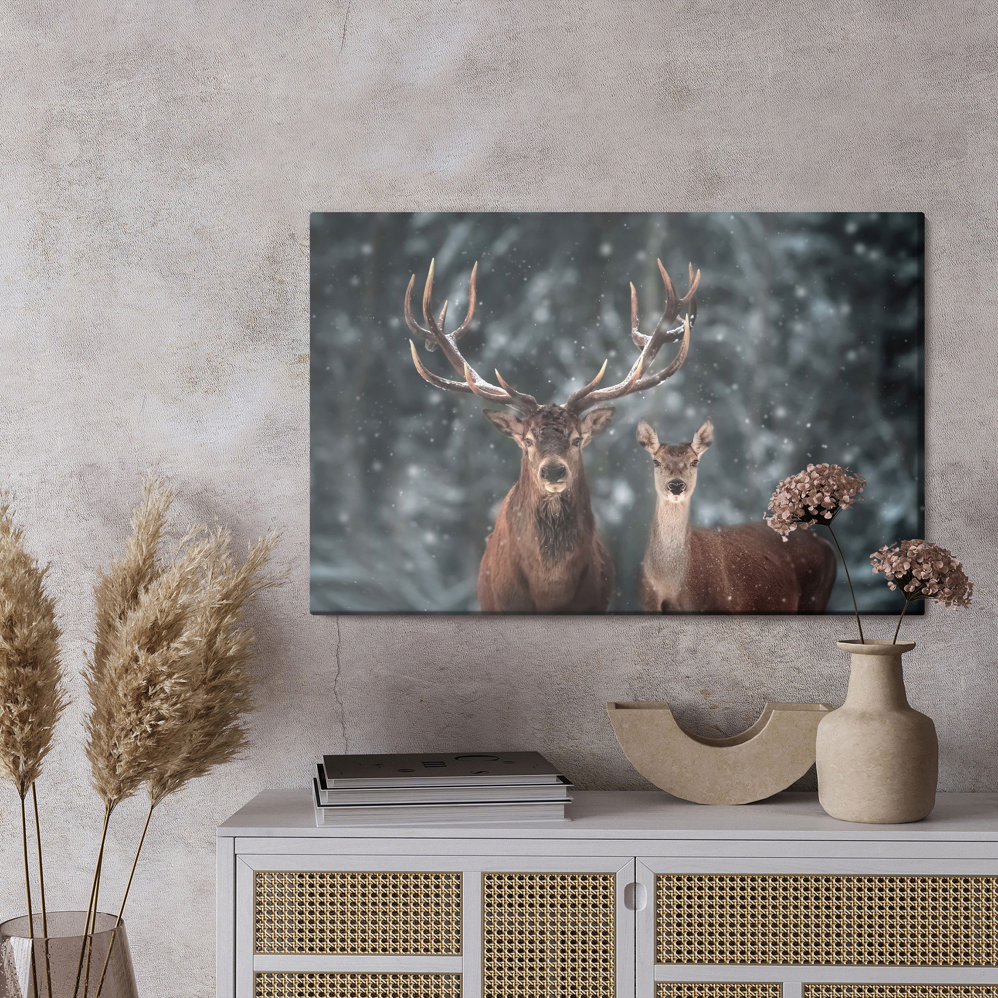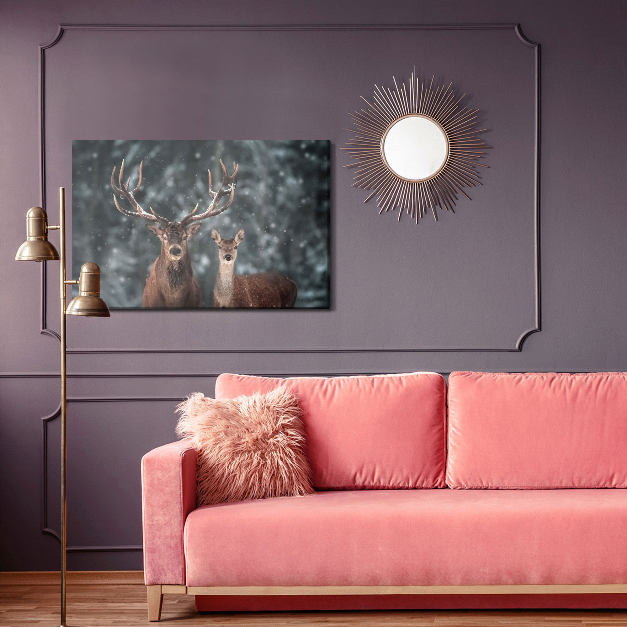Ljuddämpande tavla – Deer and deer in winter för lugnare rum och mjukare akustik