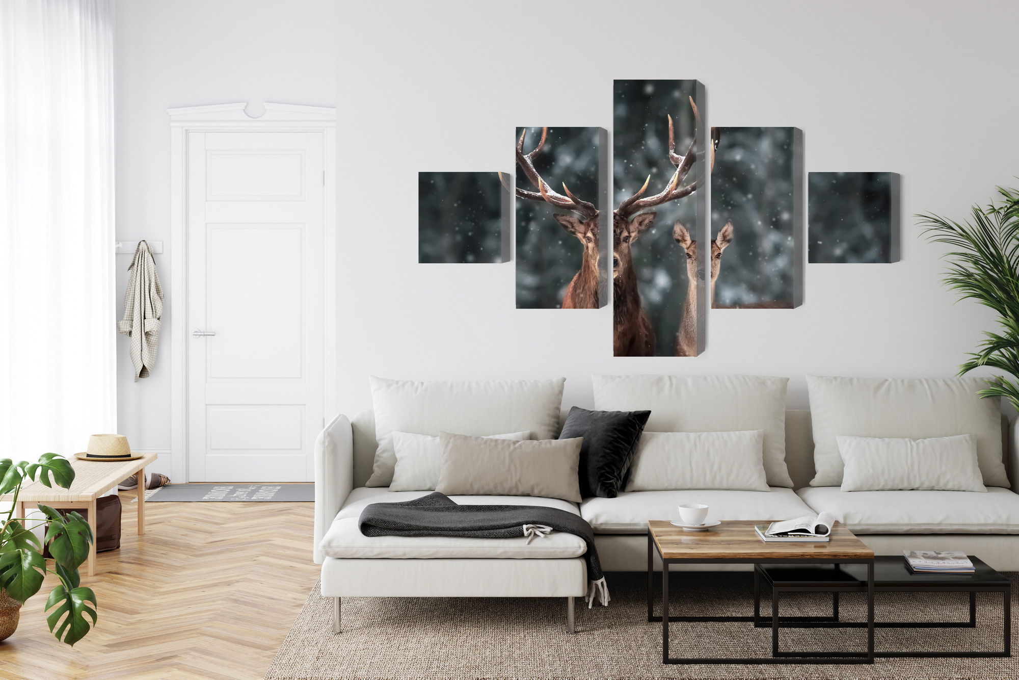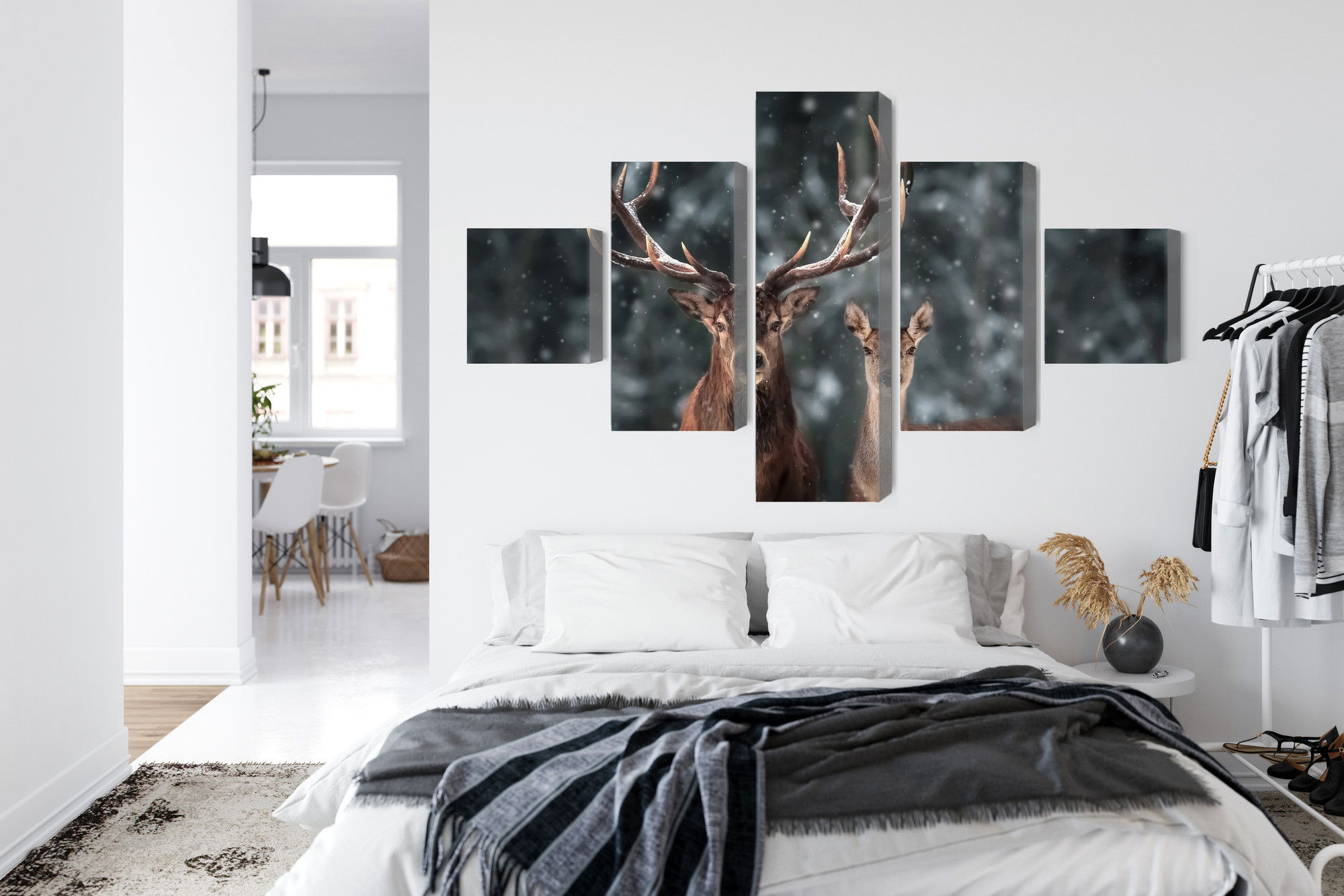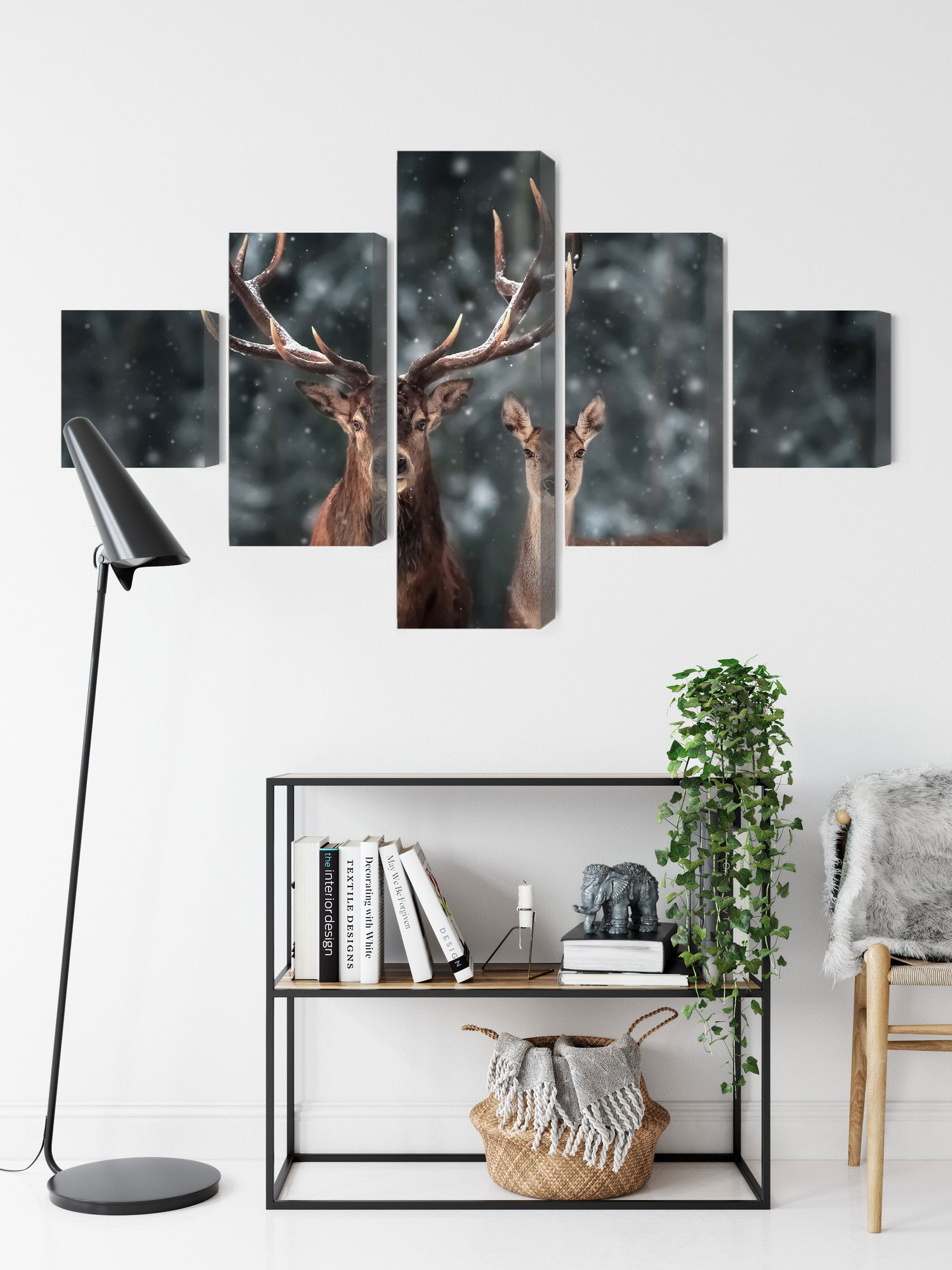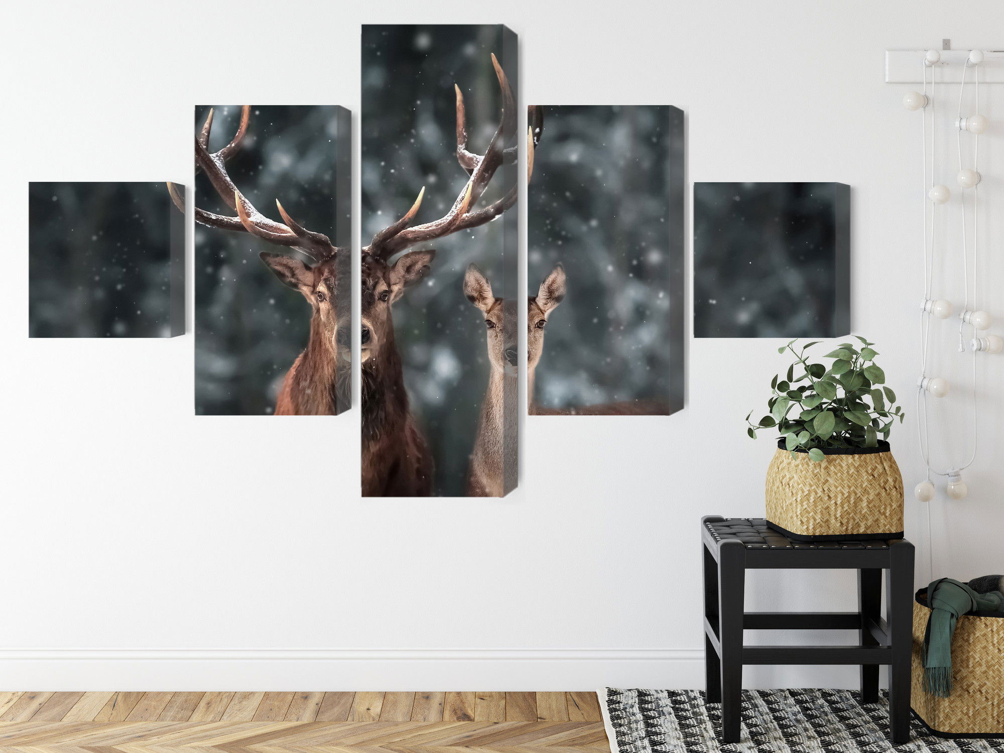 Ljuddämpande tavla – Deer and doe in the 3d forest för lugnare rum och mjukare akustik