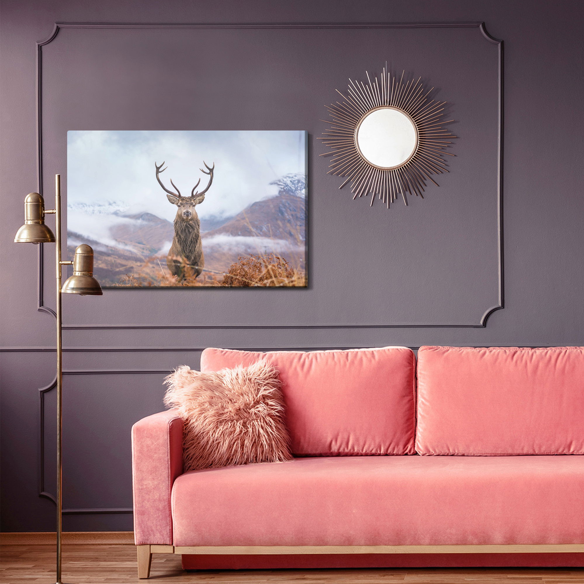 Motivet Deer and winter mountains återges med hög färgprecision och detaljrikedom tack vare HP Latex-teknologi. Trycket sker med vattenbaserade, luktfria och GREENGUARD Gold-certifierade bläck som ger en upplösning på upp till 300 DPI. Färgerna är UV-beständiga och behåller sin styrka även i ljusa rum, vilket gör tavlan lämplig för både hem- och offentliga miljöer.