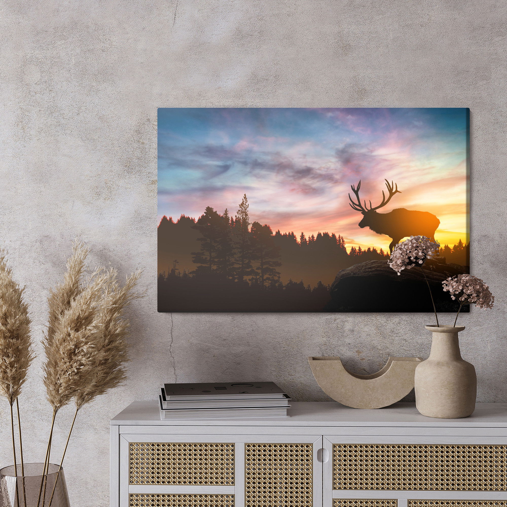 Ljuddämpande tavla – Deer at sunset för lugnare rum och mjukare akustik
