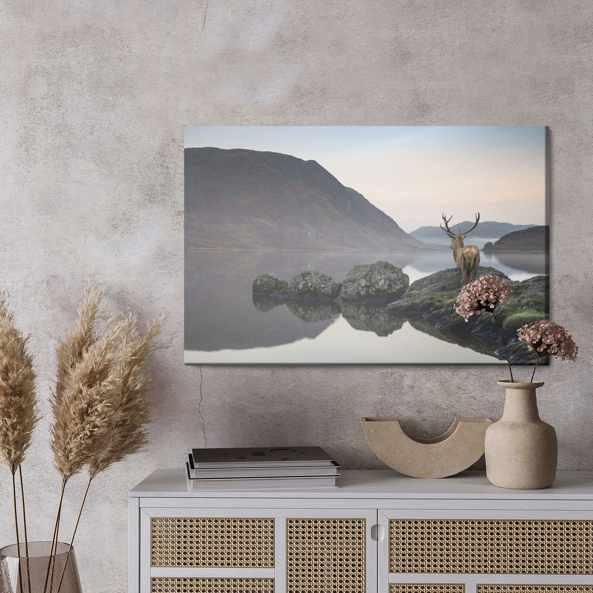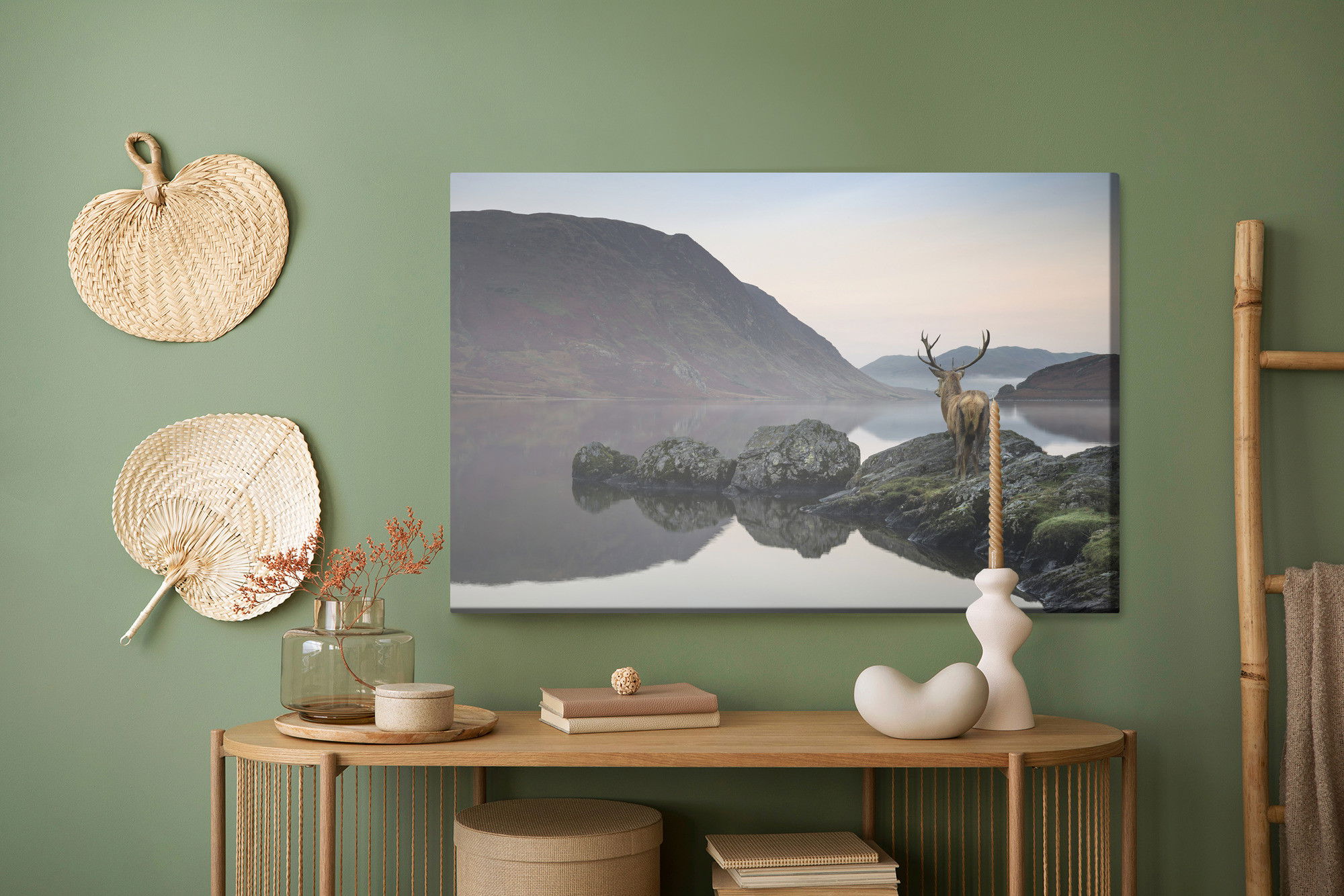Ljuddämpande tavla – Deer by the lake för lugnare rum och mjukare akustik