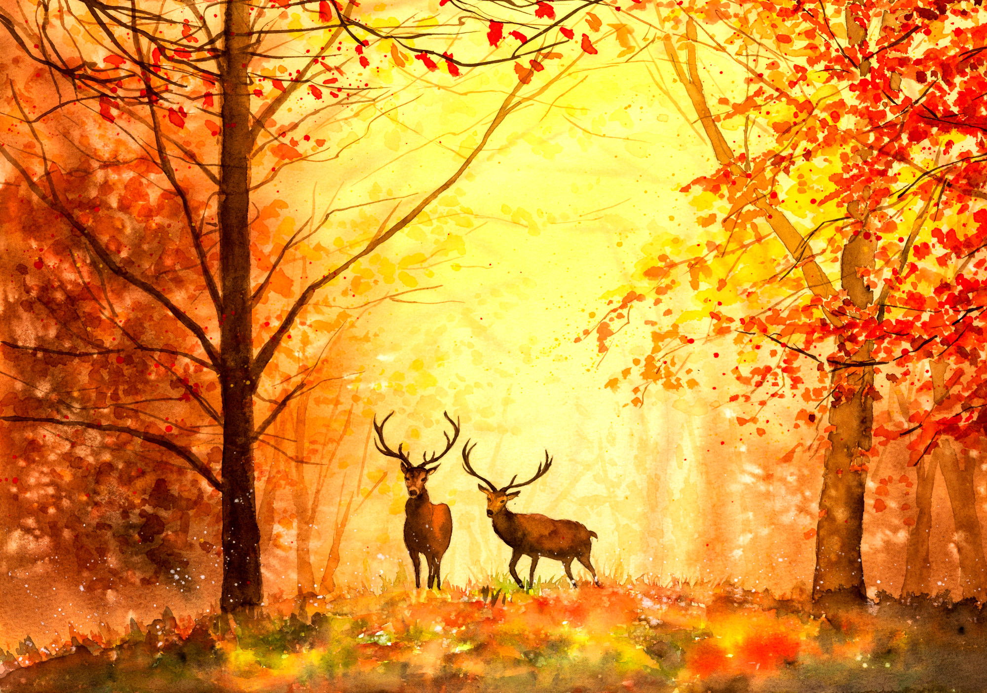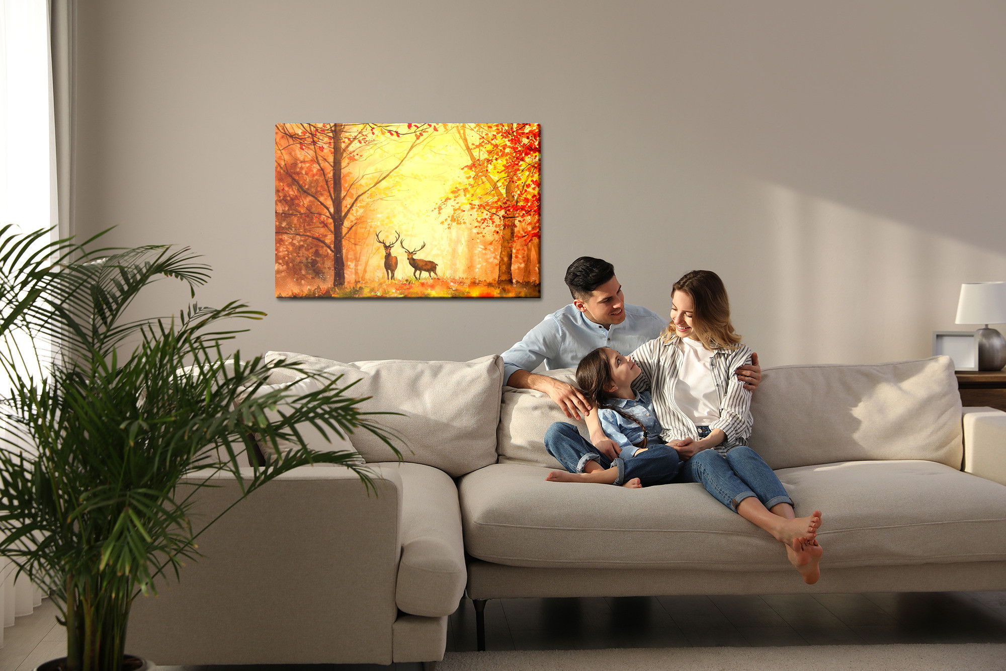 Ljuddämpande tavla – Deer in the autumn forest för lugnare rum och mjukare akustik