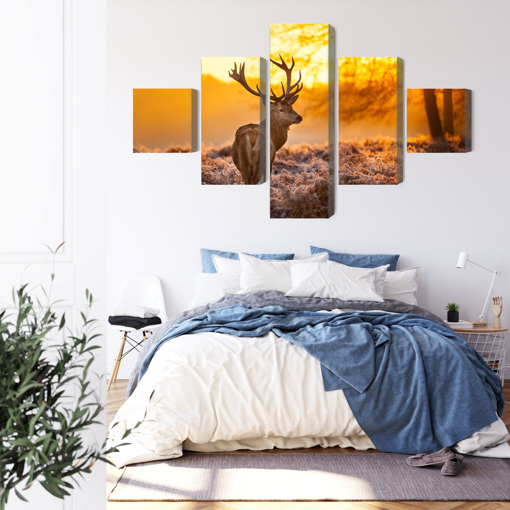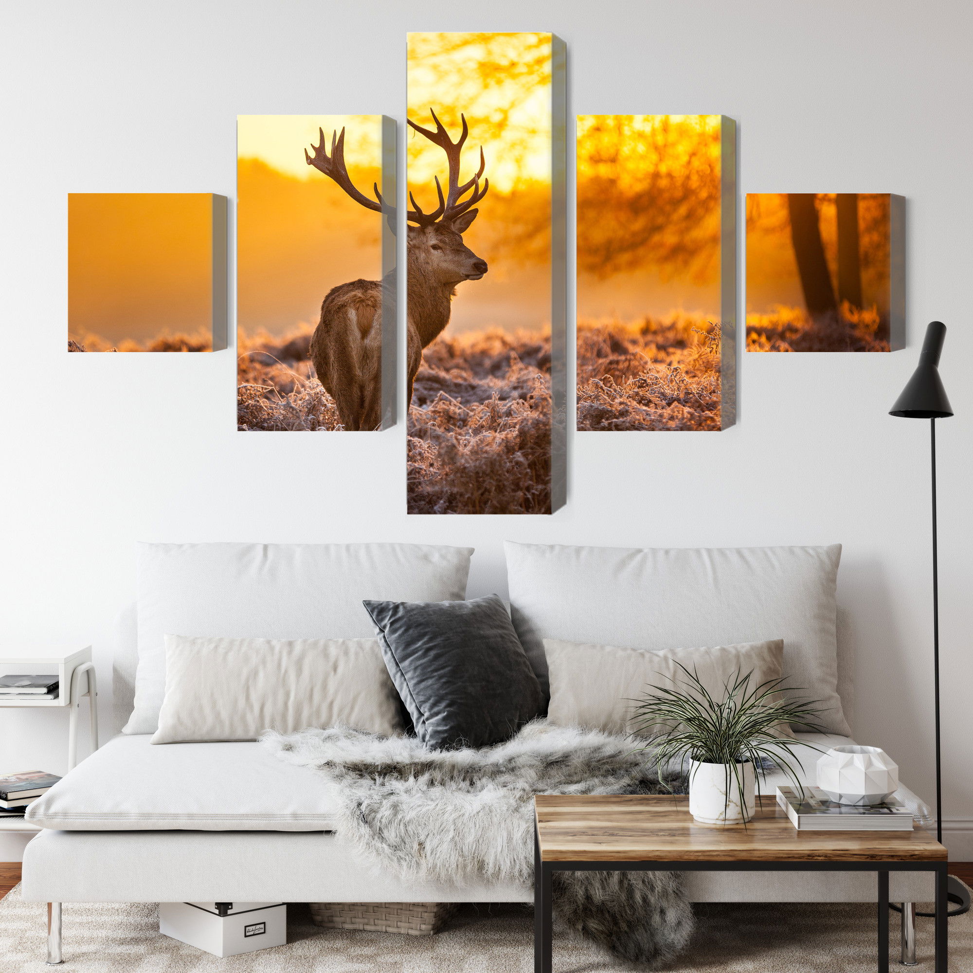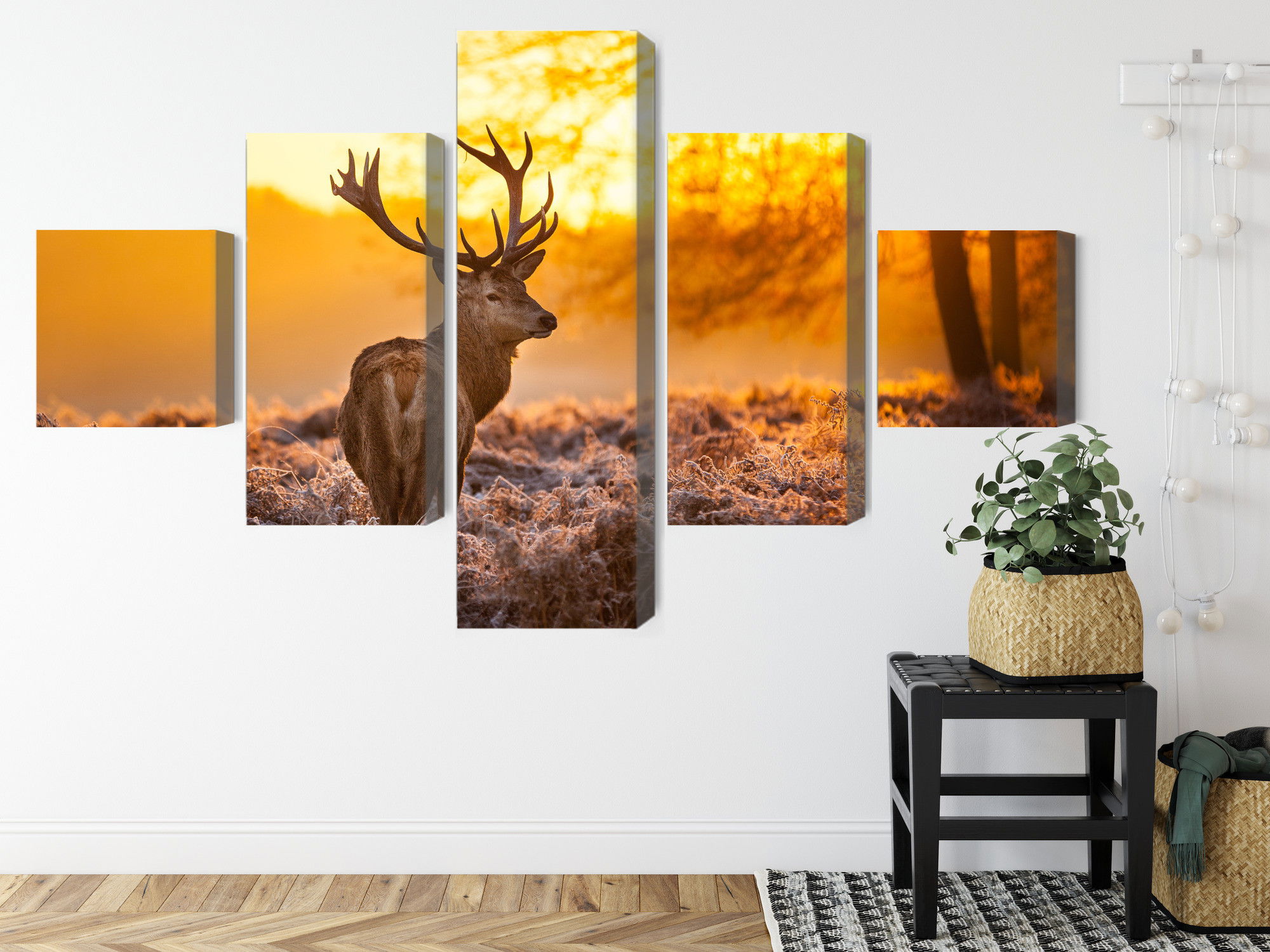 Ljuddämpande tavla – Deer in the forest at sunset för lugnare rum och mjukare akustik