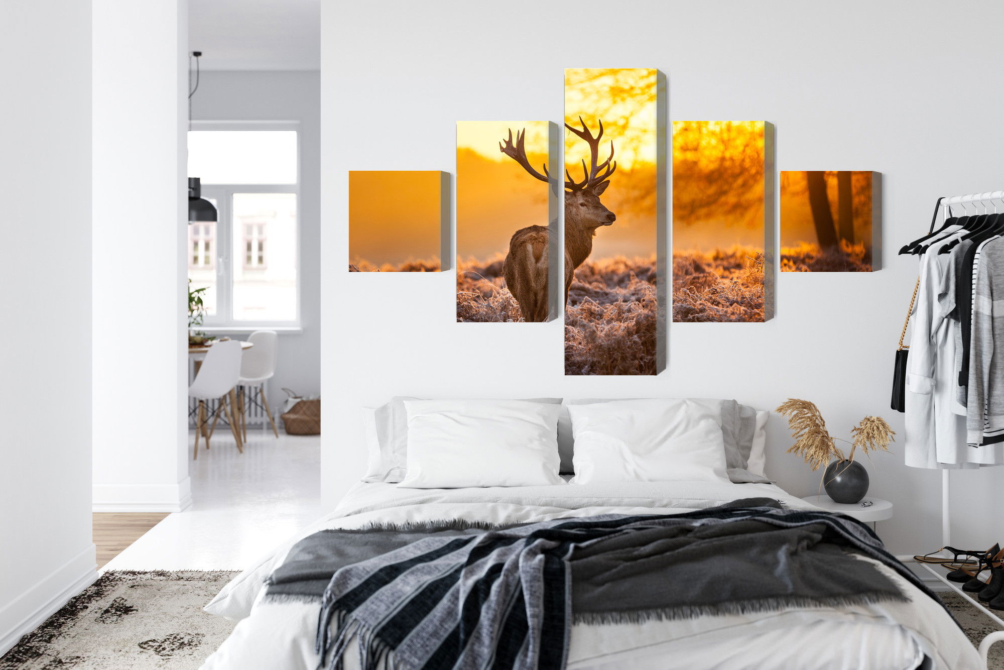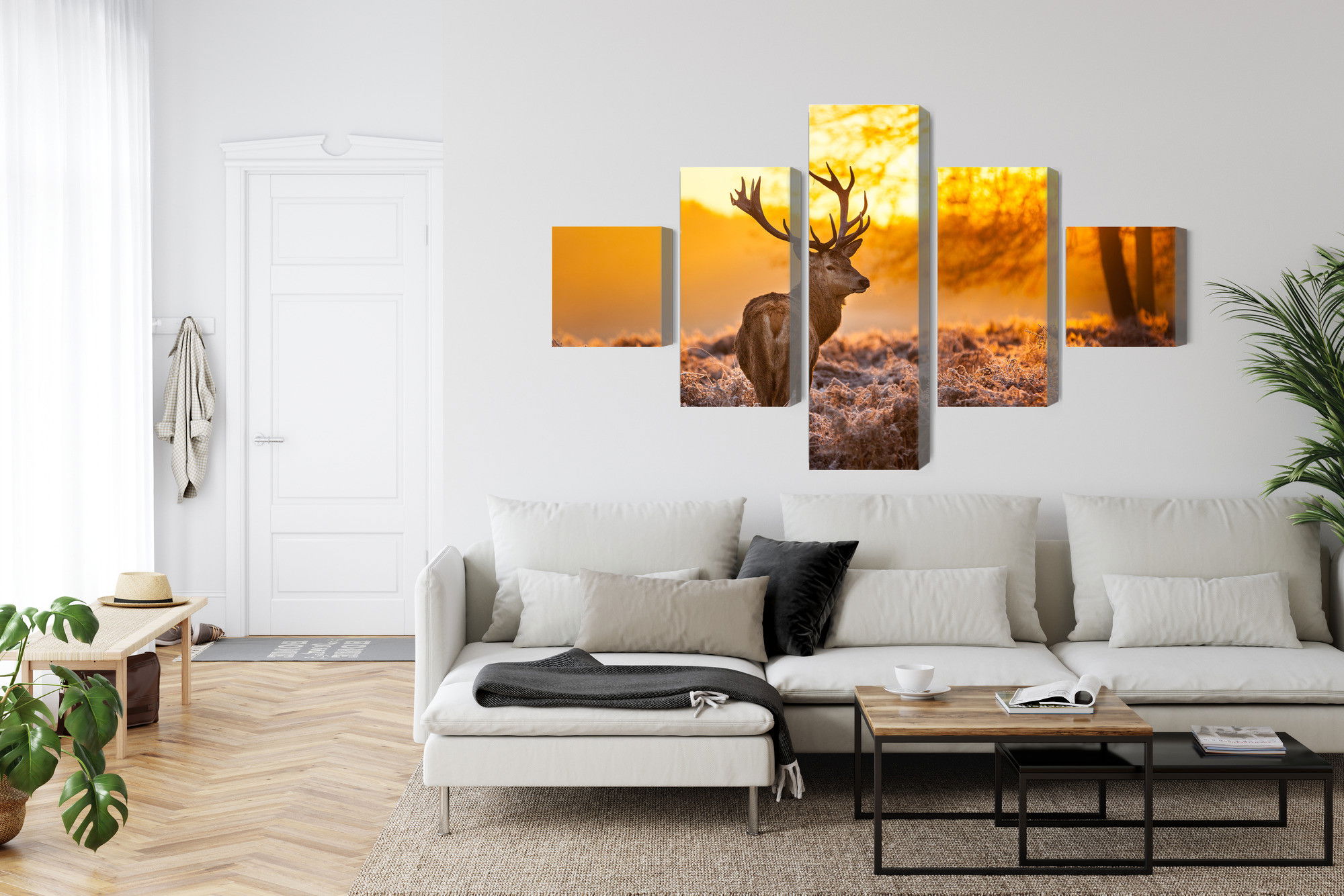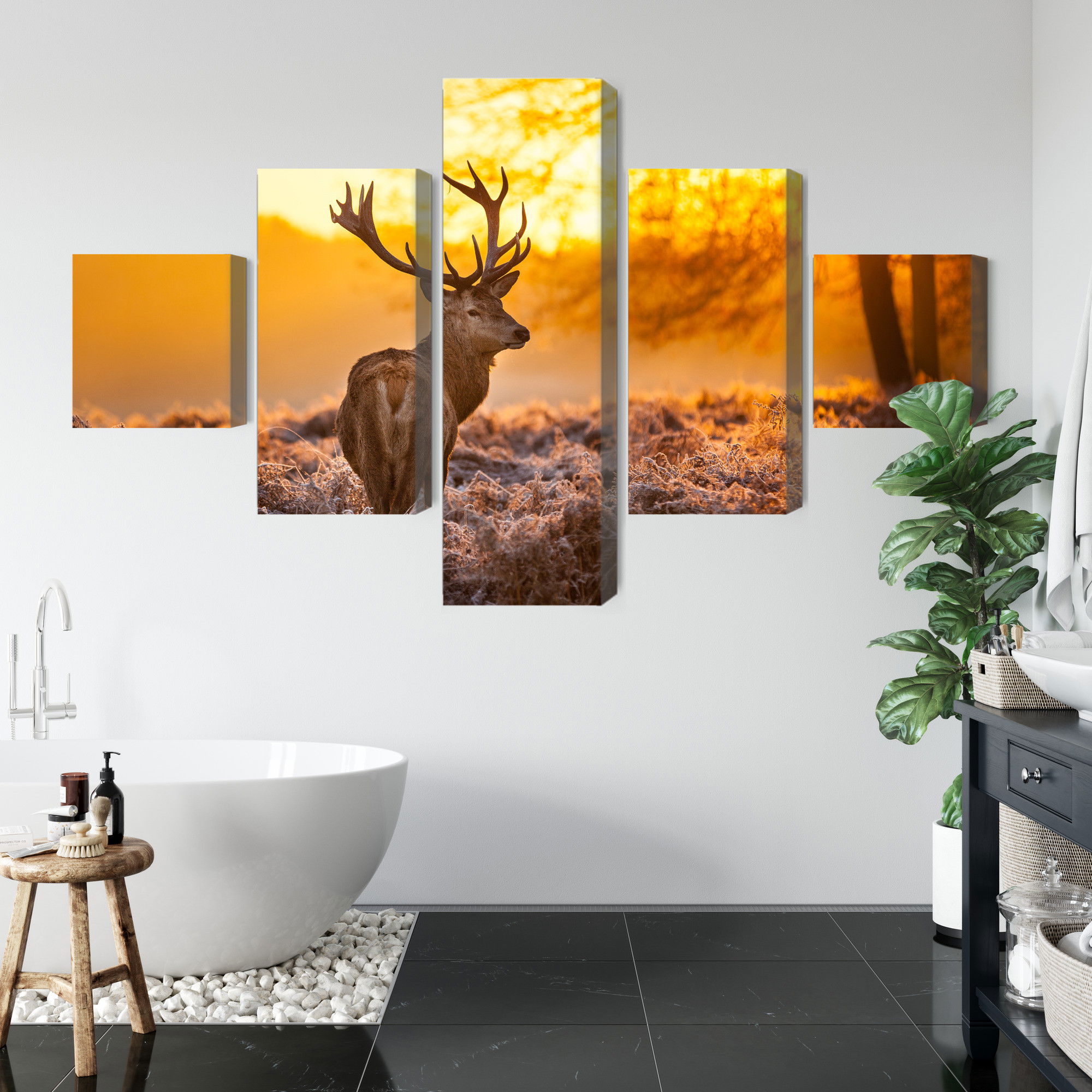 Ljuddämpande tavla – Deer in the forest at sunset för lugnare rum och mjukare akustik