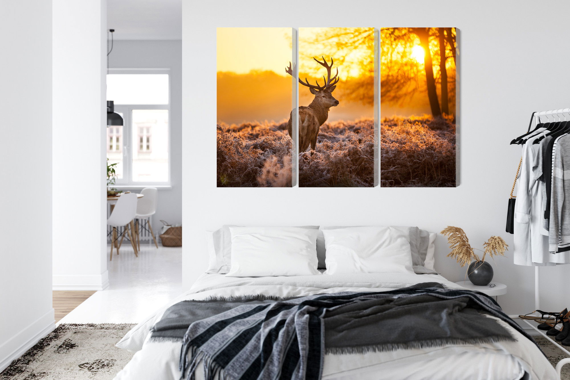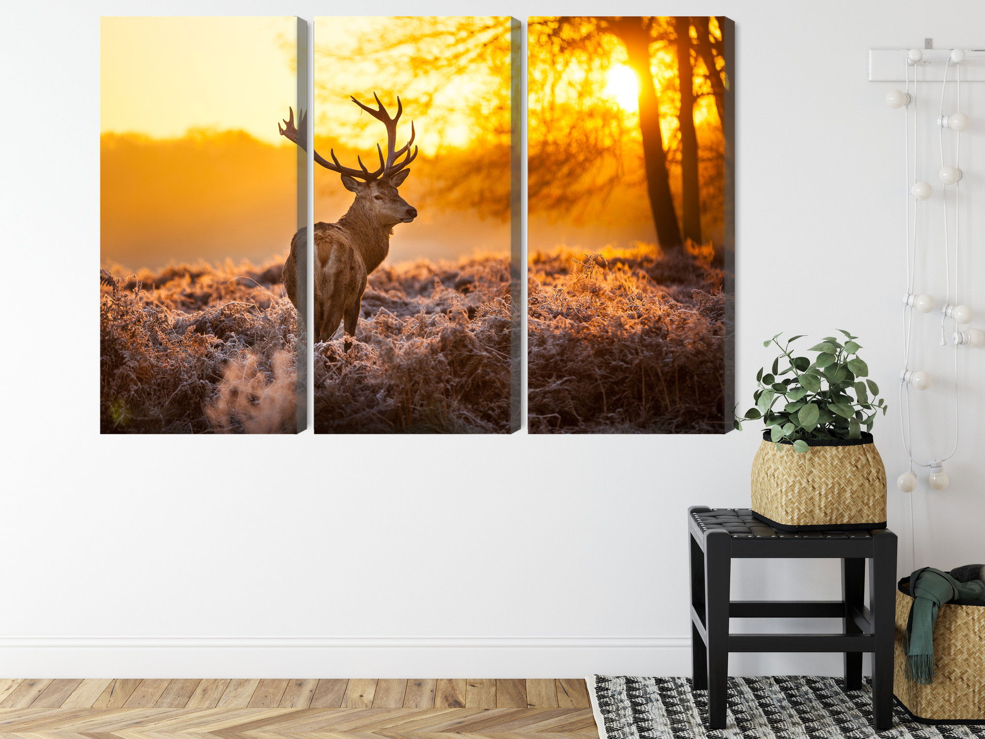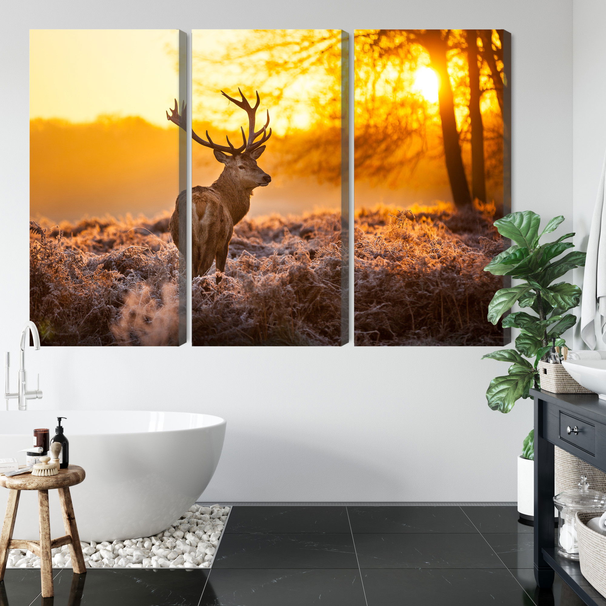 Ljuddämpande tavla – Deer in the forest at sunset för lugnare rum och mjukare akustik