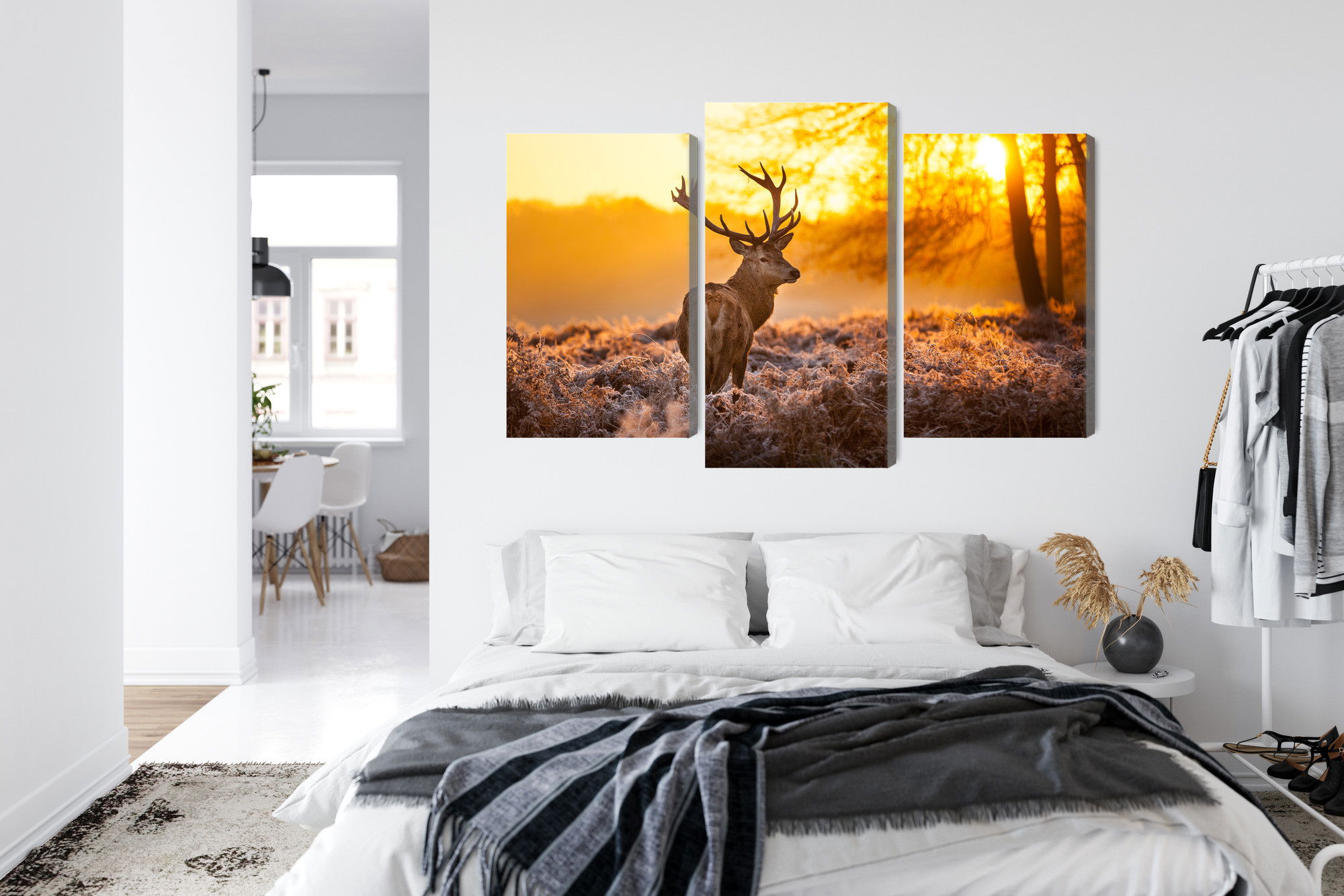 Ljuddämpande tavla – Deer in the forest at sunset för lugnare rum och mjukare akustik